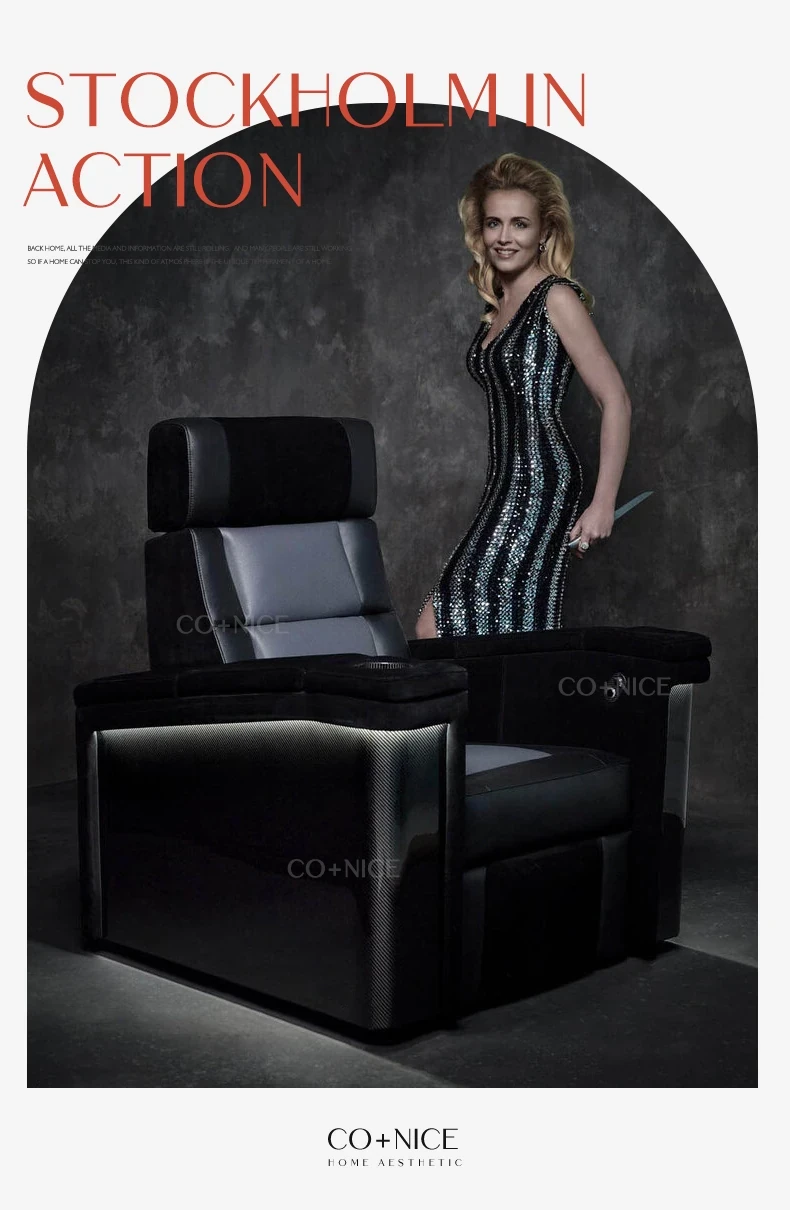 CO+NICEイタリア製本革電動ソファー - ヴィラや家庭シアターに最適な多人数用ソファ「ストックホルム」で、贅沢なひとときをお楽しみください!