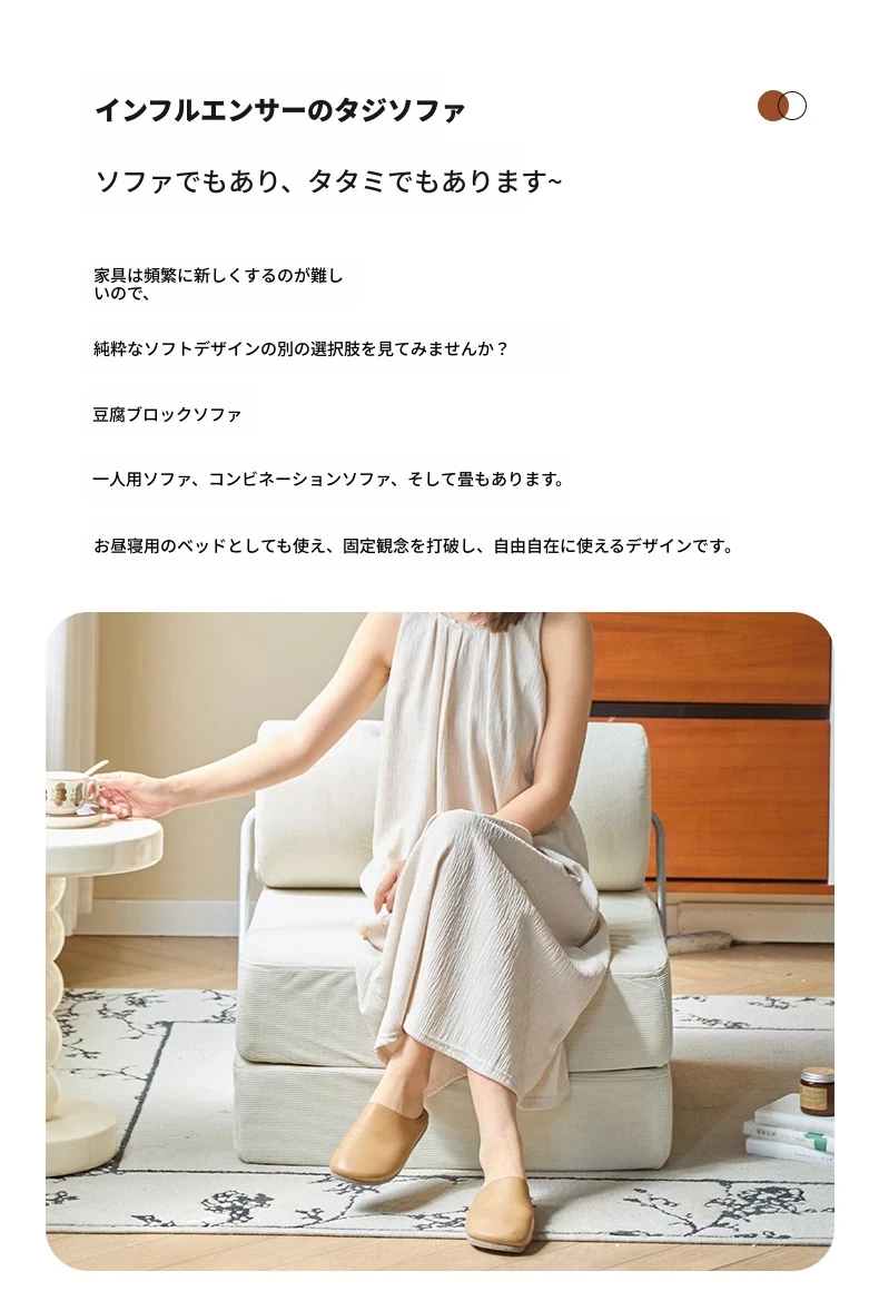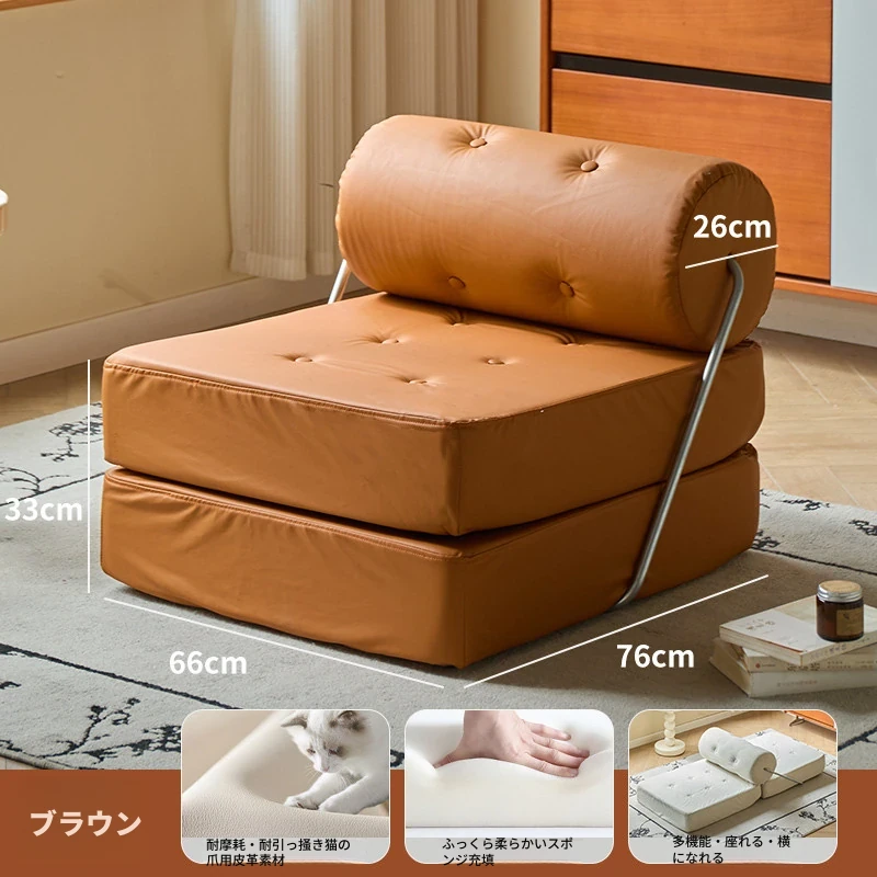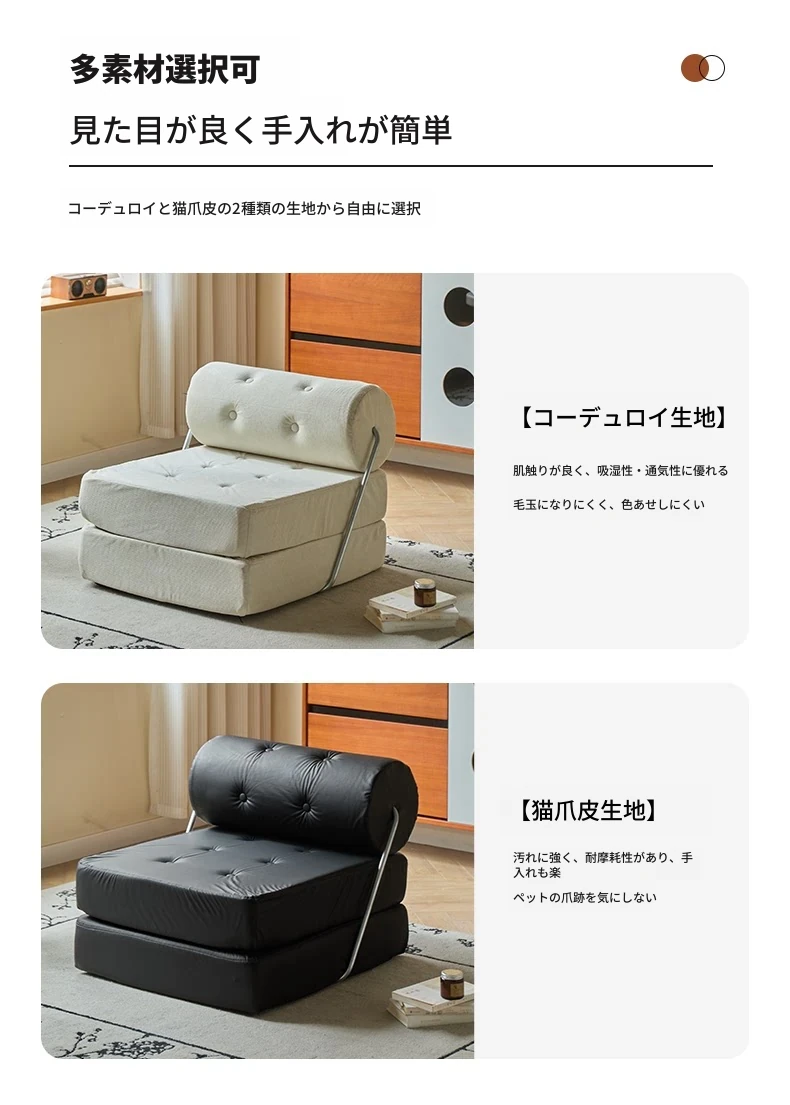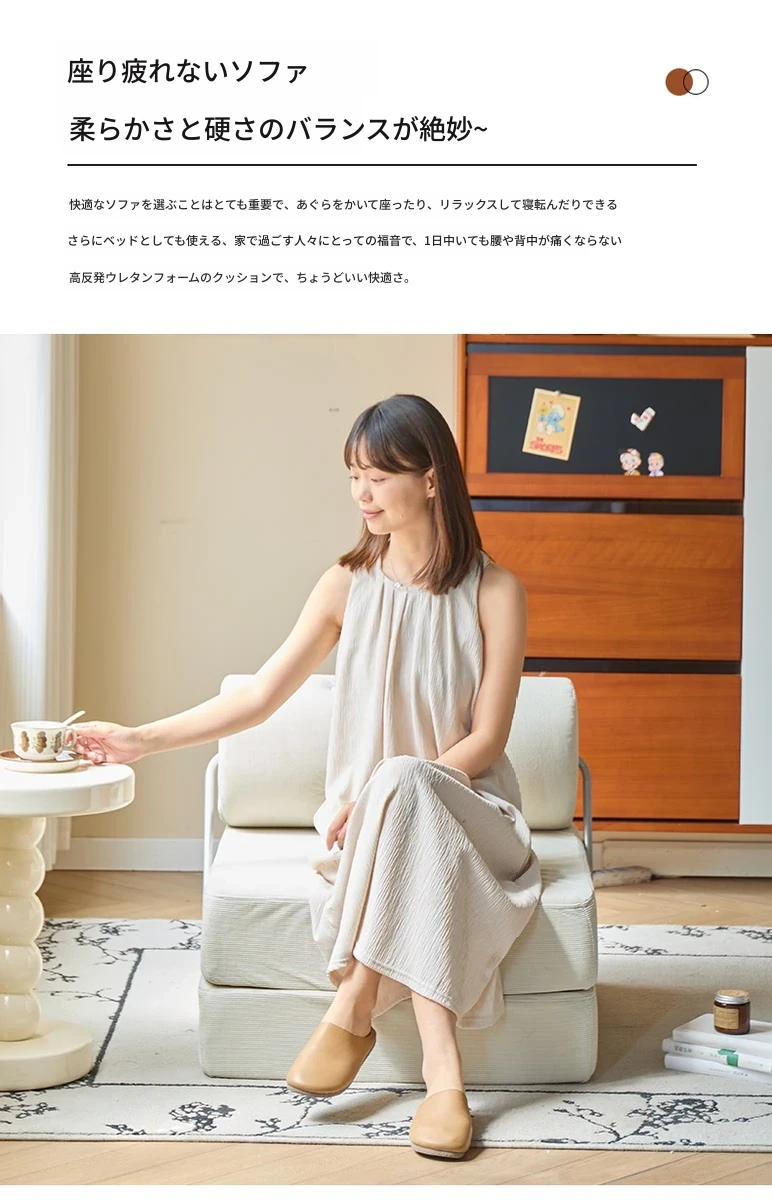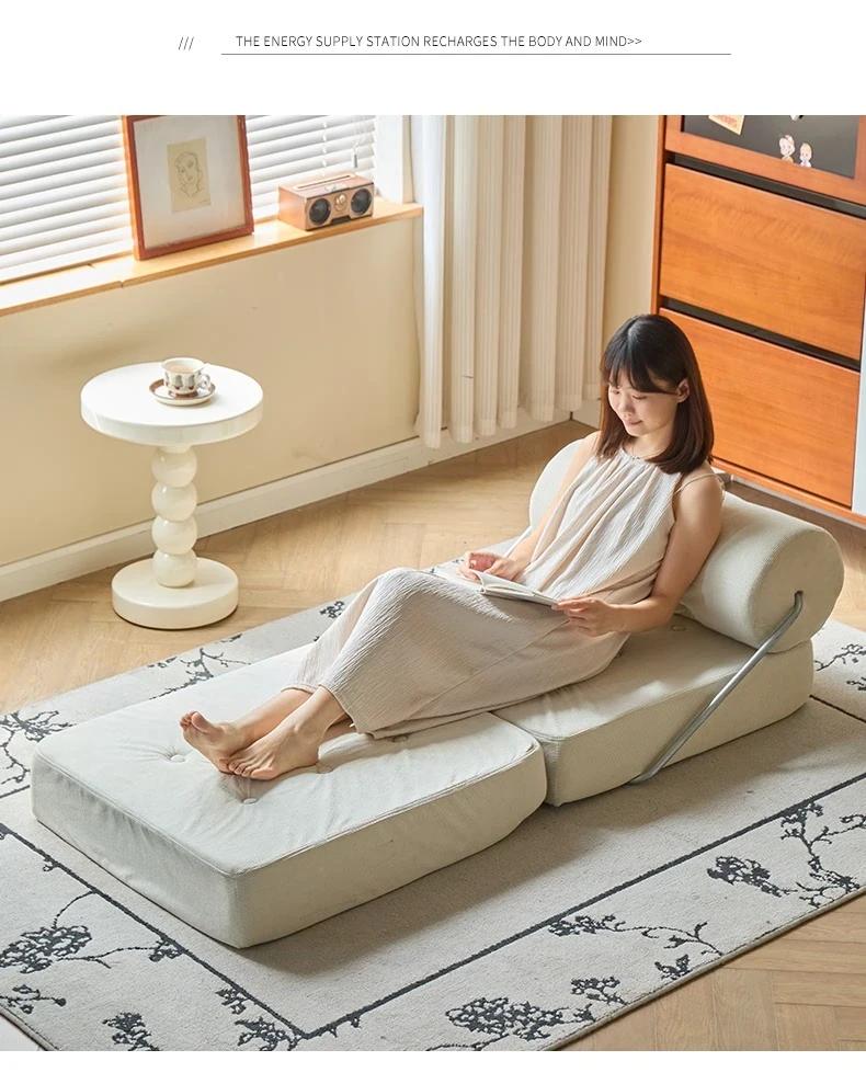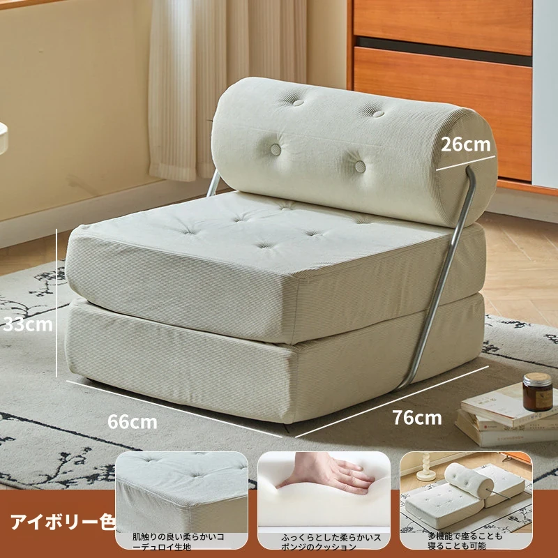 一人用折りたたみソファベッド|コンパクトなリビングに最適!タジ豆腐ブロックデザインのラグジュアリーなくつろぎ空間を実現。クリーミーな風合いで、どんなインテリアにもマッチ!