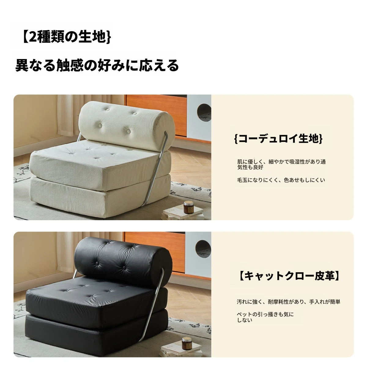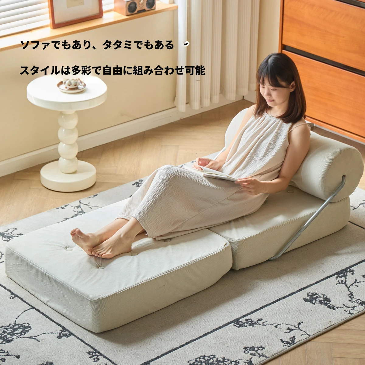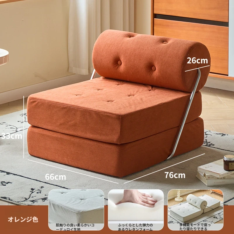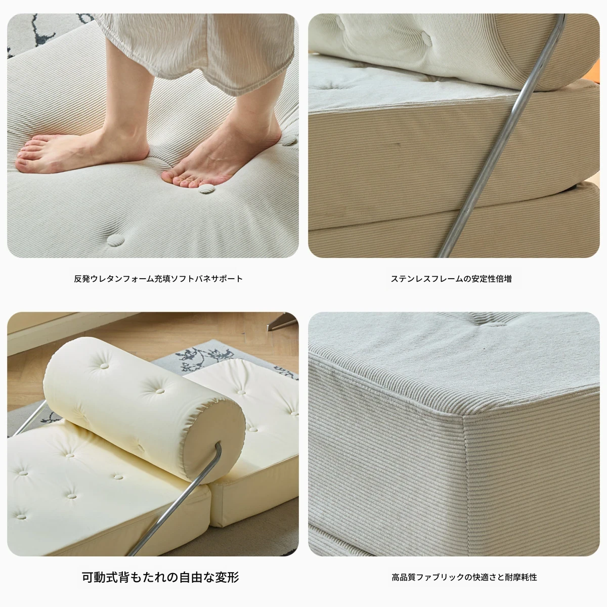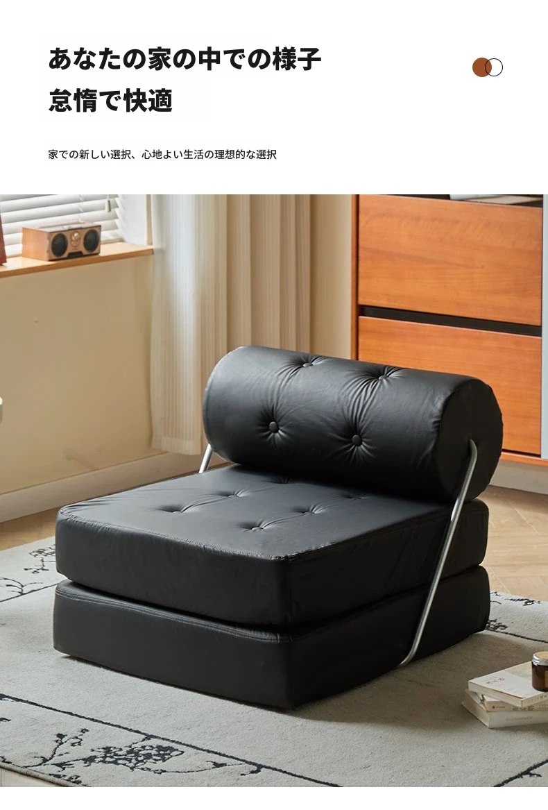 一人用折りたたみソファベッド|コンパクトなリビングに最適!タジ豆腐ブロックデザインのラグジュアリーなくつろぎ空間を実現。クリーミーな風合いで、どんなインテリアにもマッチ!
