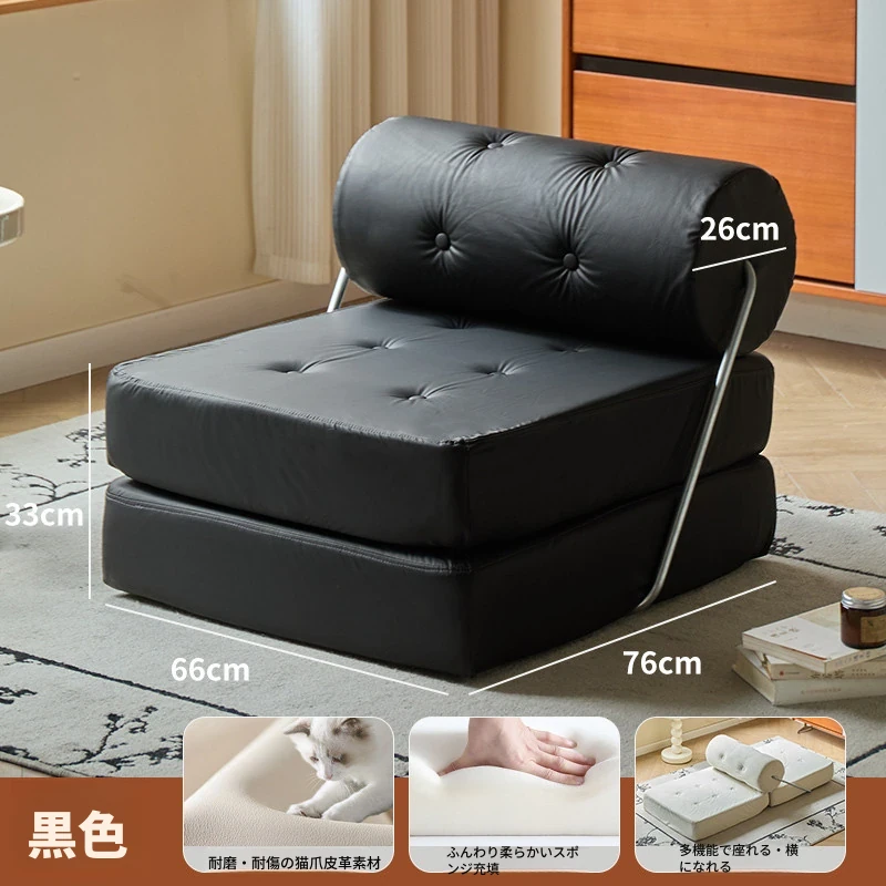 黒色-猫の爪皮折りたたみ座椅子