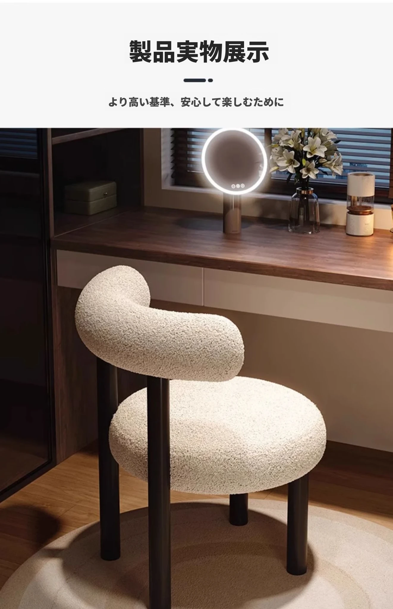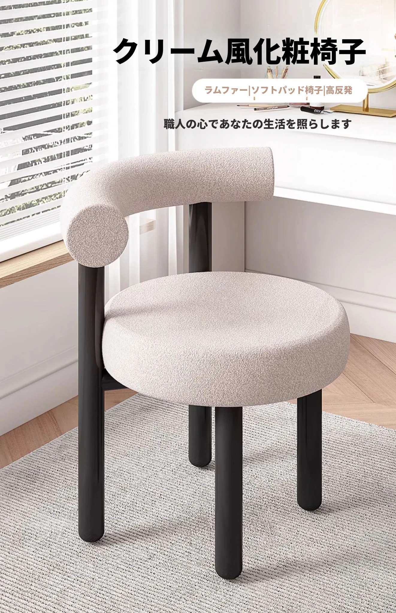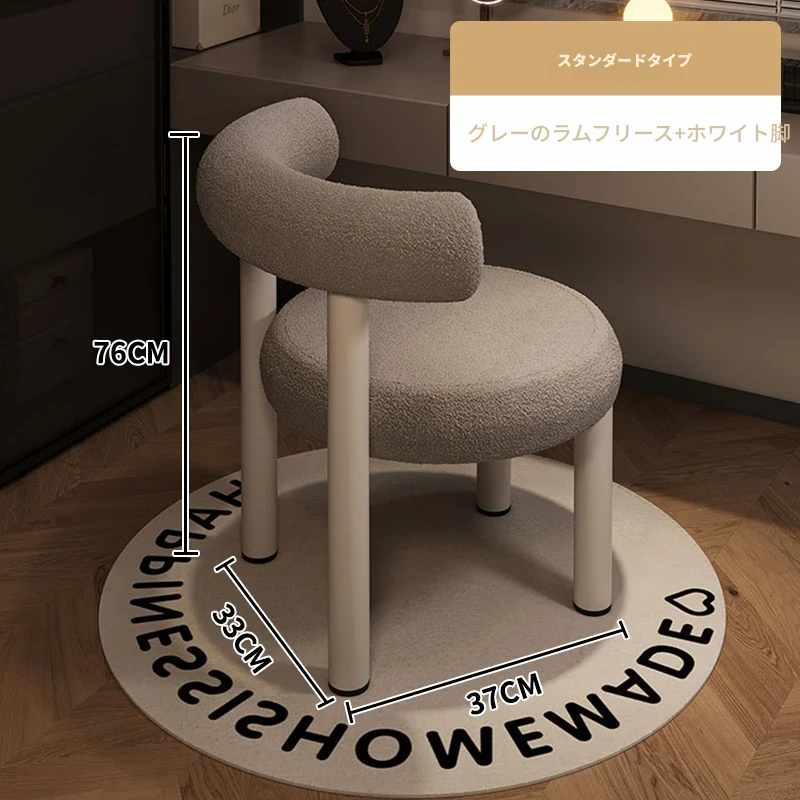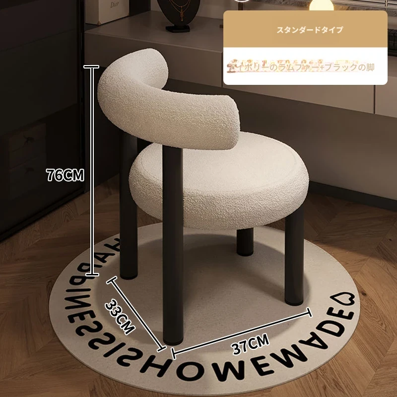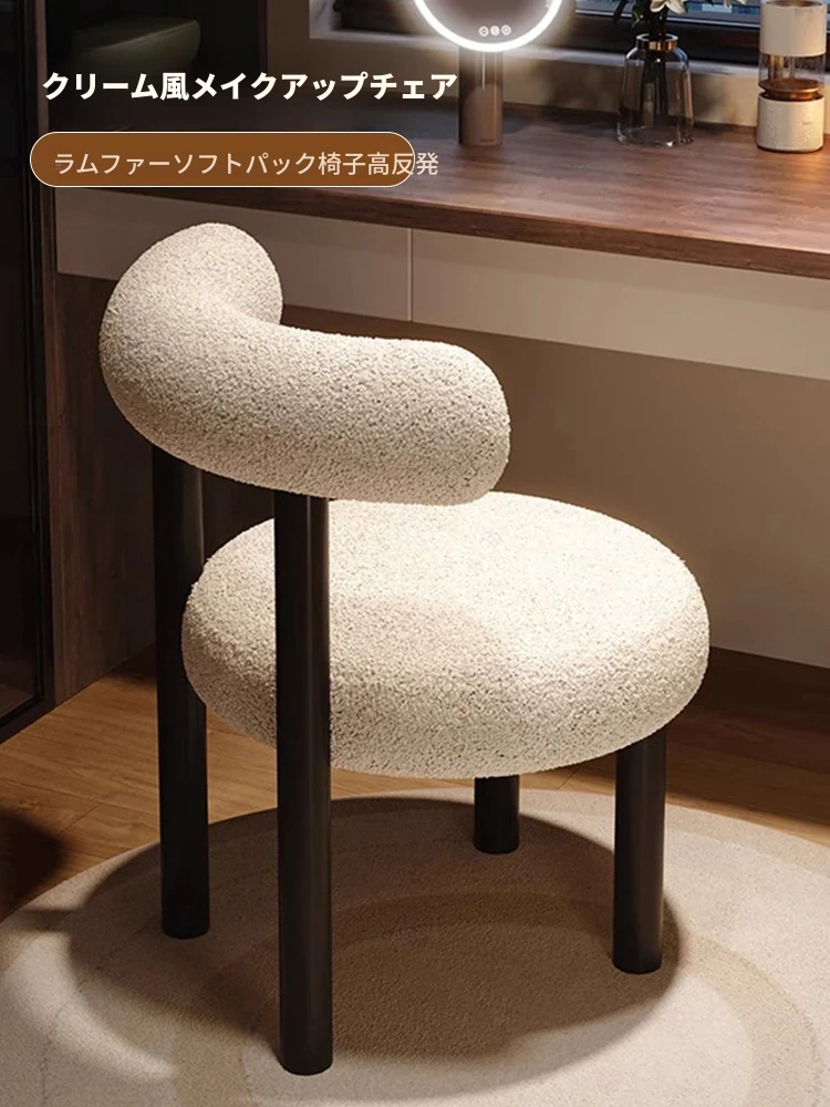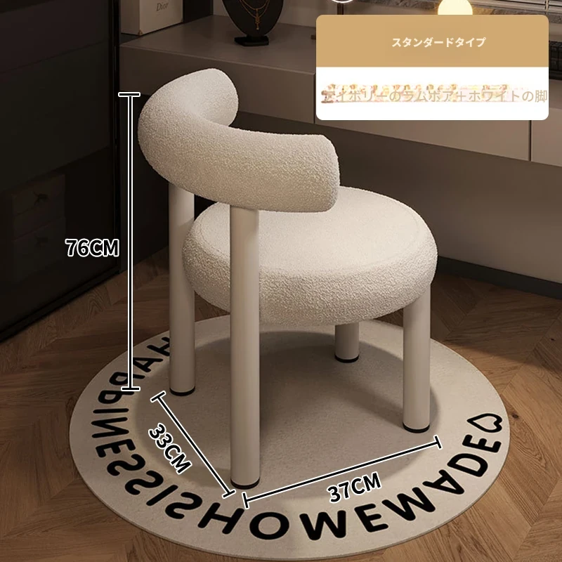 女性に最適な居心地抜群のフレンチスタイル化粧椅子!長時間座っても疲れない、人気のラムファー素材で作られた化粧台用の背もたれ付きスツール。あなたの寝室を華やかに演出します!