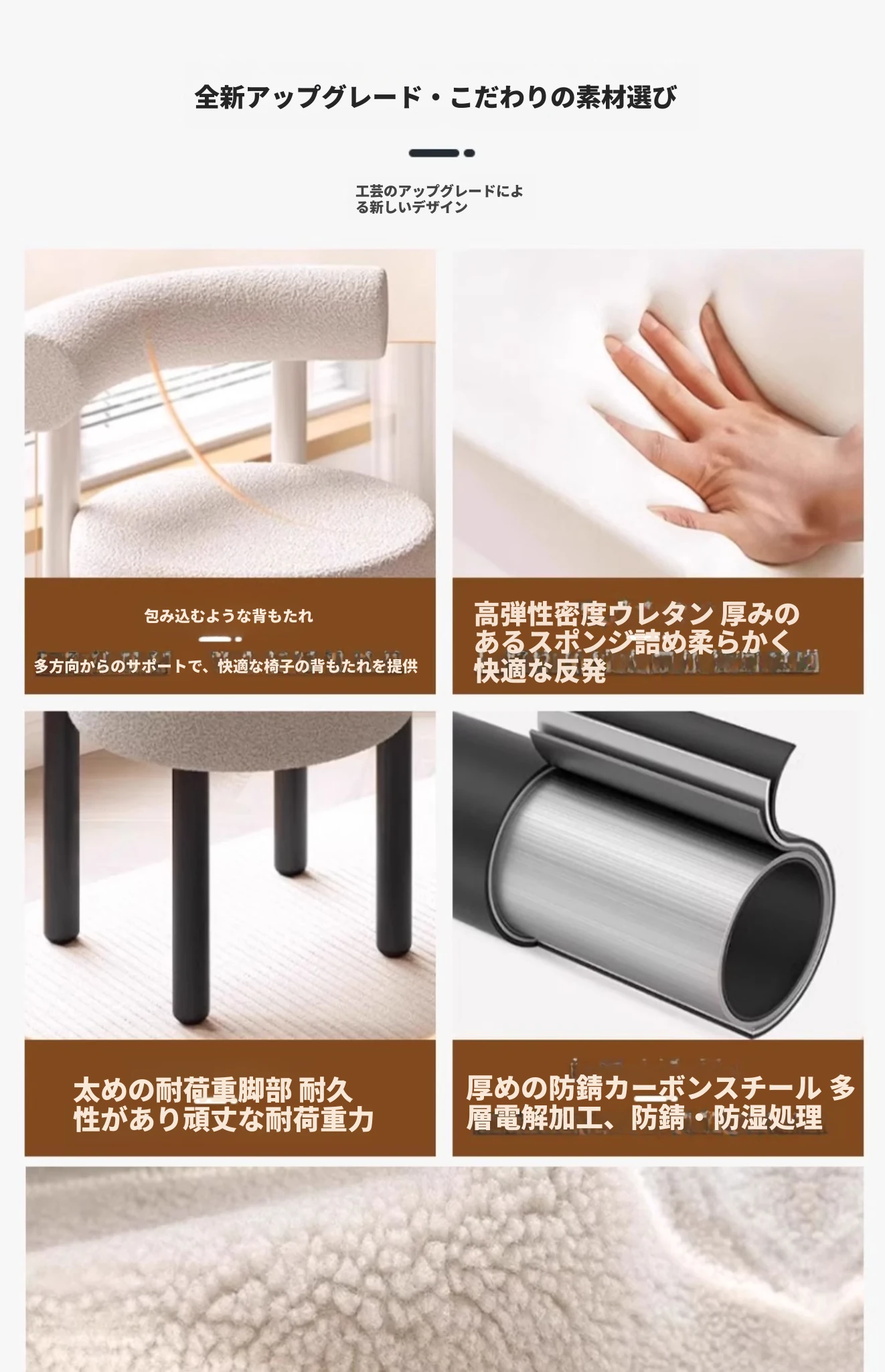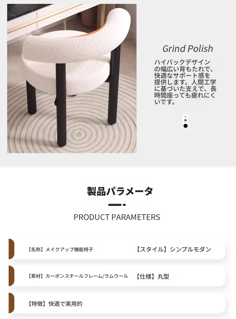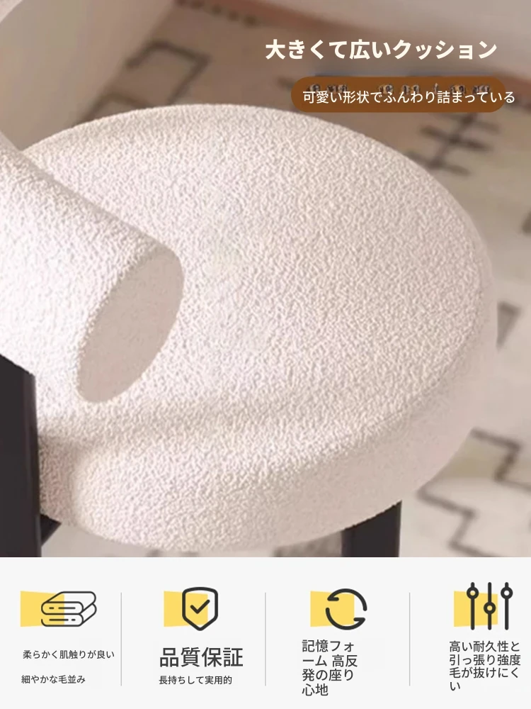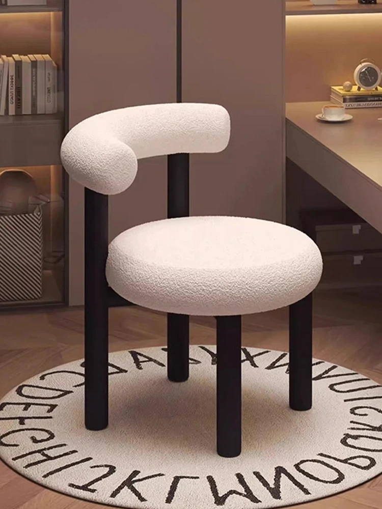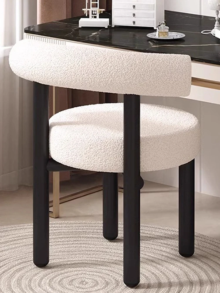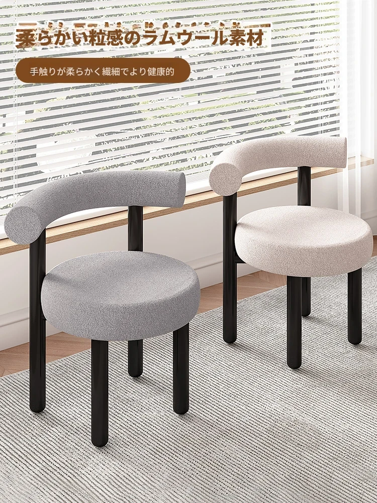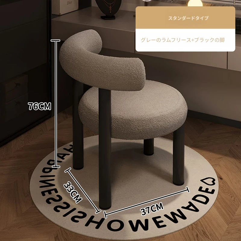 女性に最適な居心地抜群のフレンチスタイル化粧椅子!長時間座っても疲れない、人気のラムファー素材で作られた化粧台用の背もたれ付きスツール。あなたの寝室を華やかに演出します!