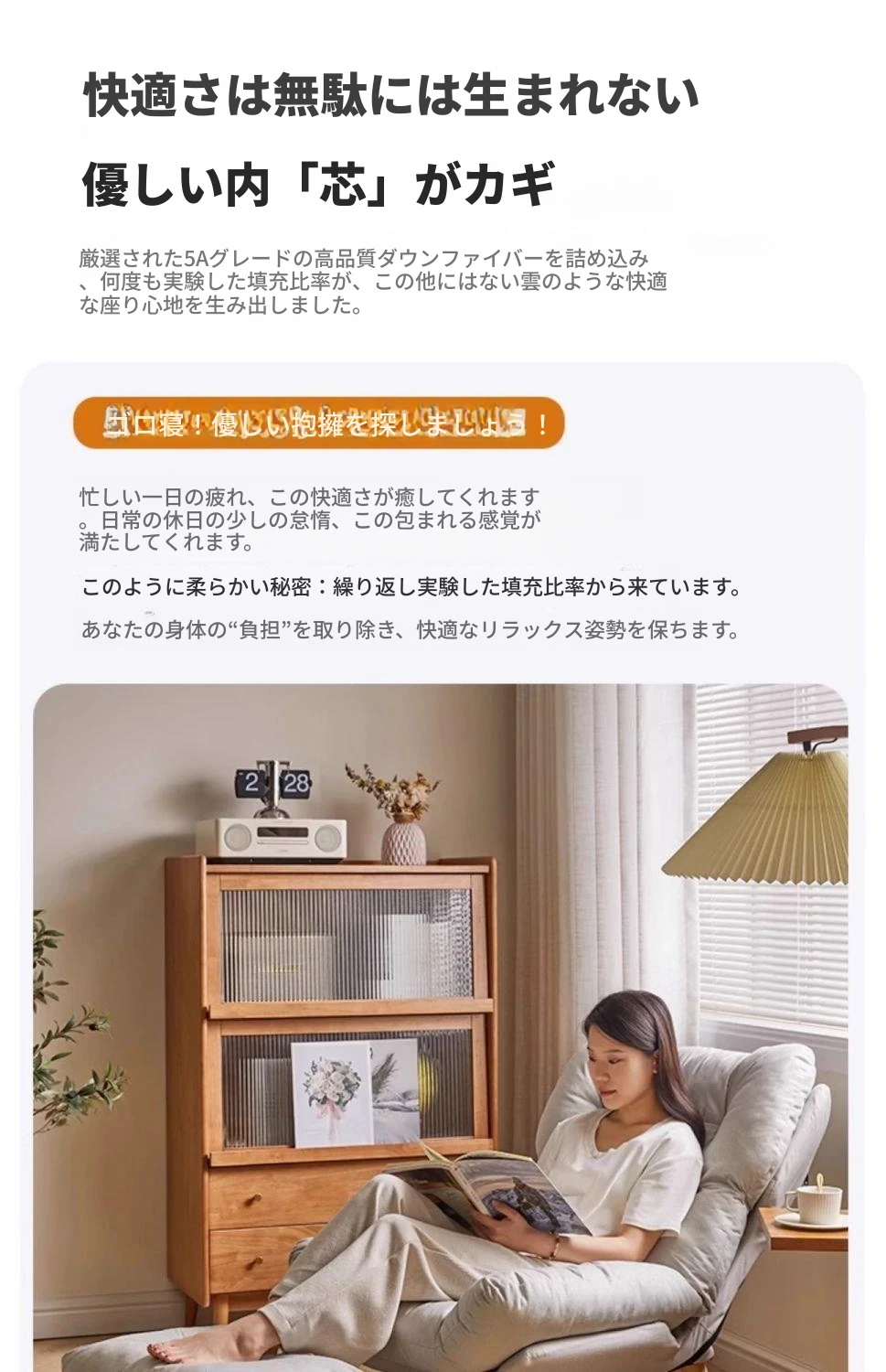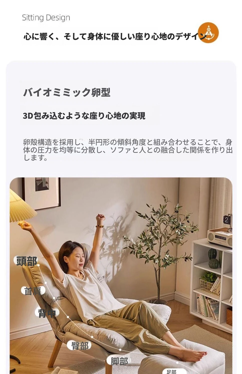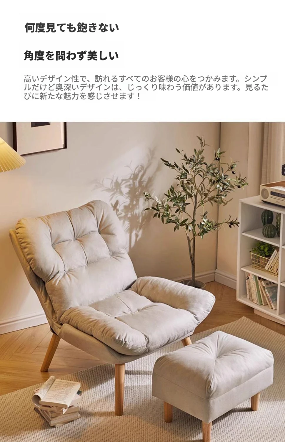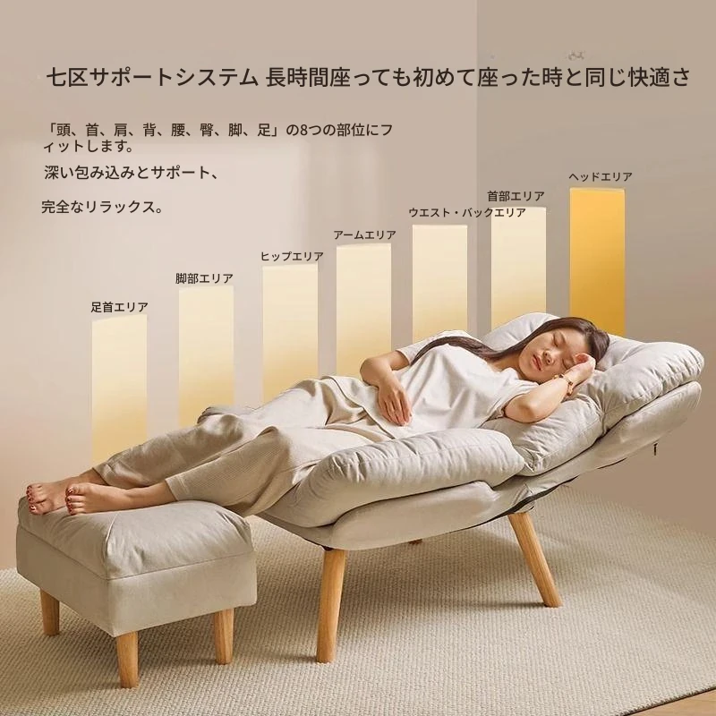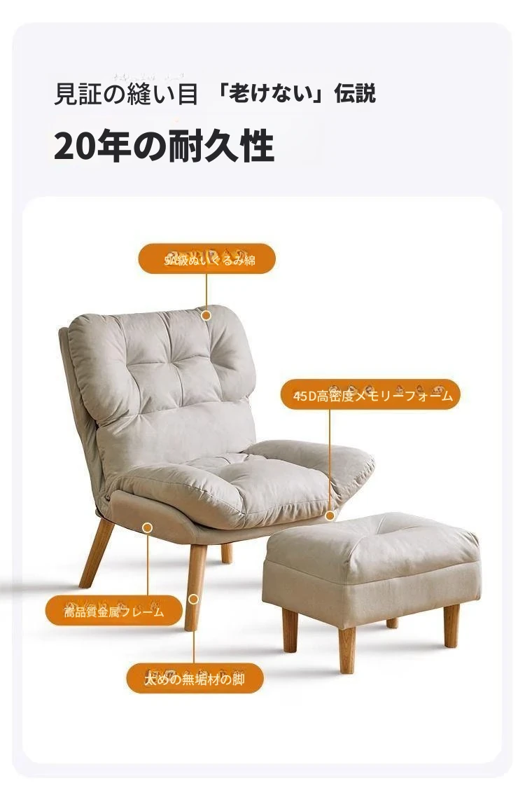 【大包围云朵坐感】アイボリーの木脚+フットレストテディファー