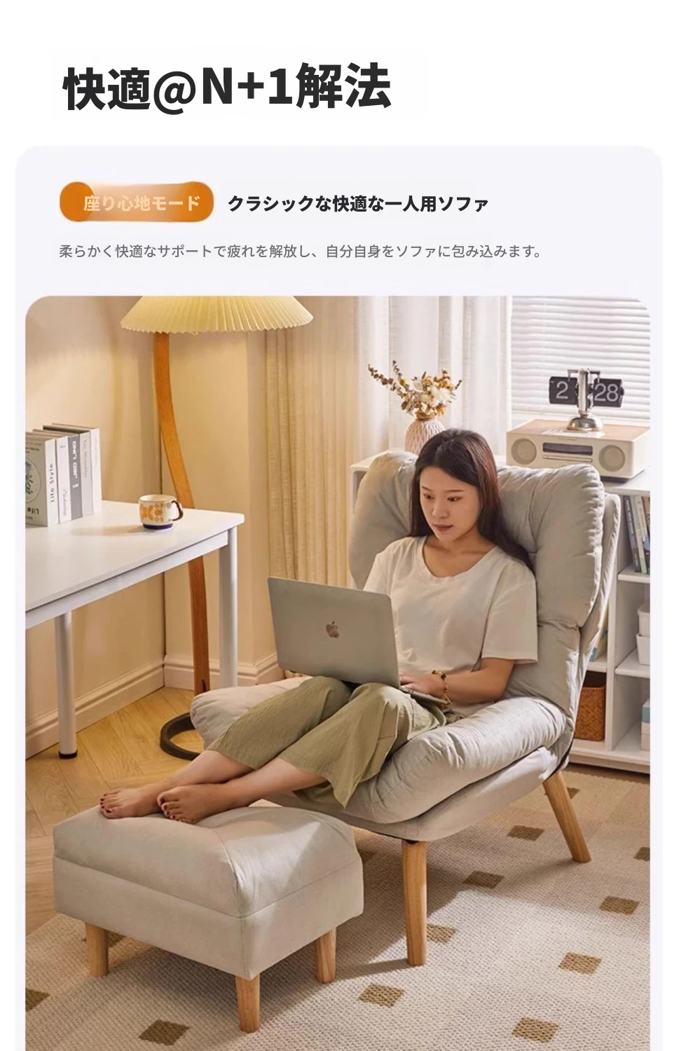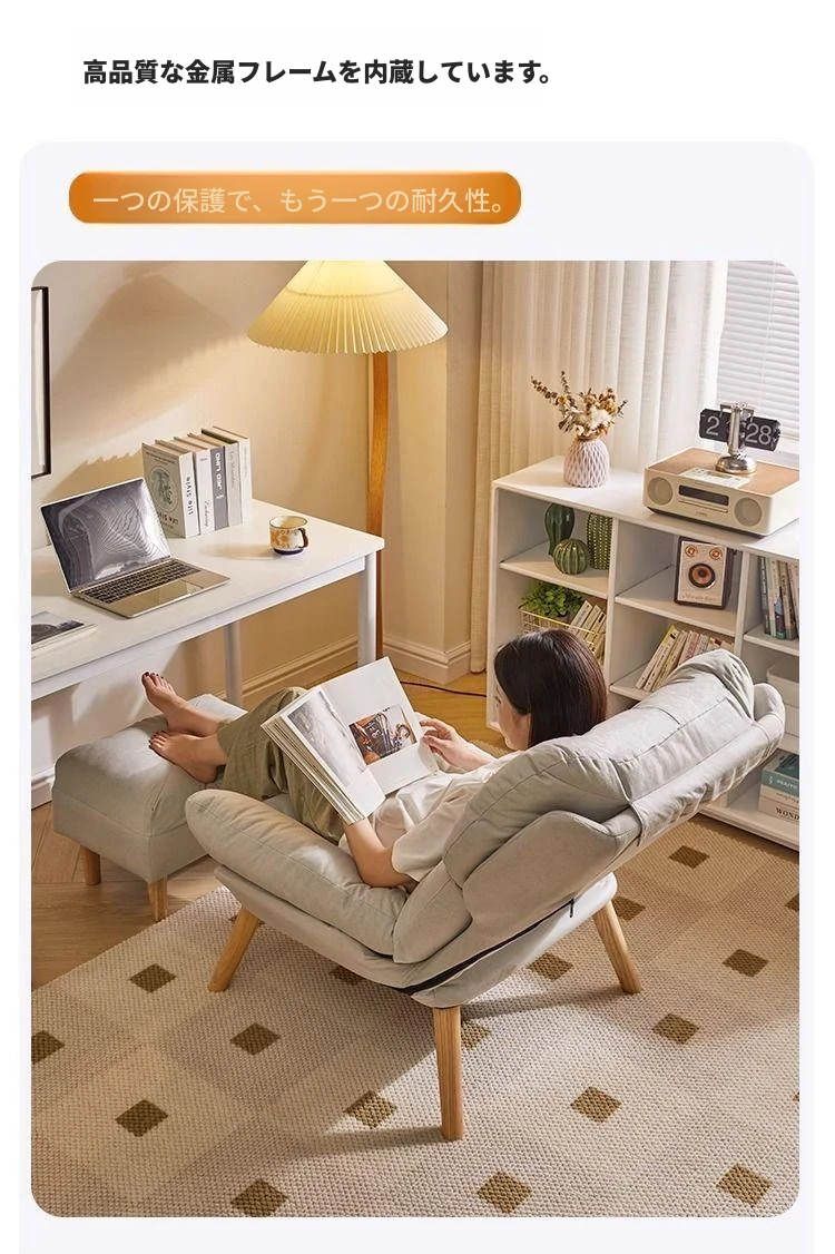 【大包围云朵坐感】アイボリーの鉄脚+フットレストテクノロジー布