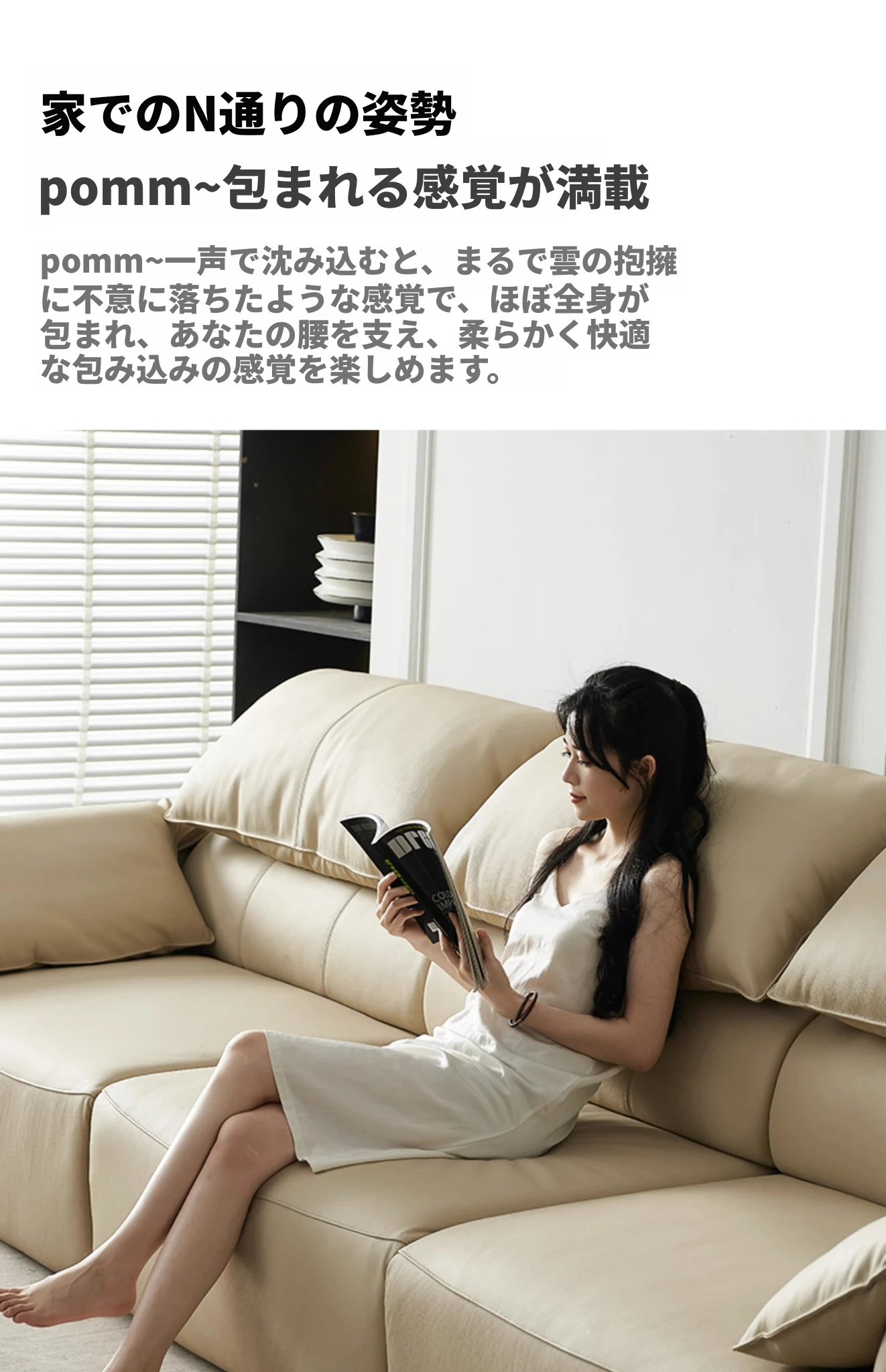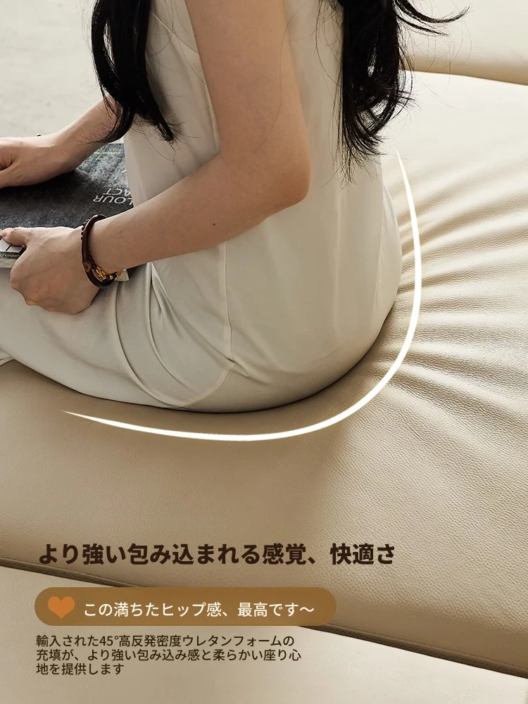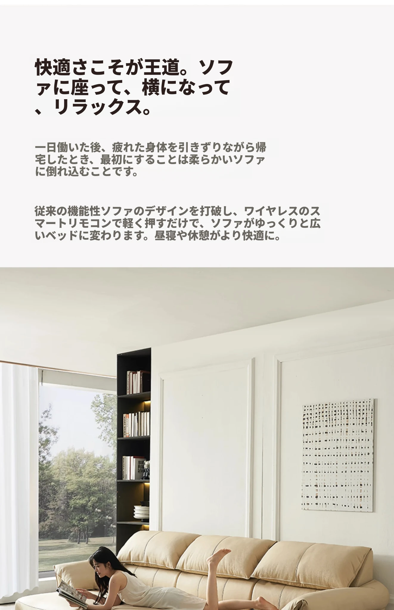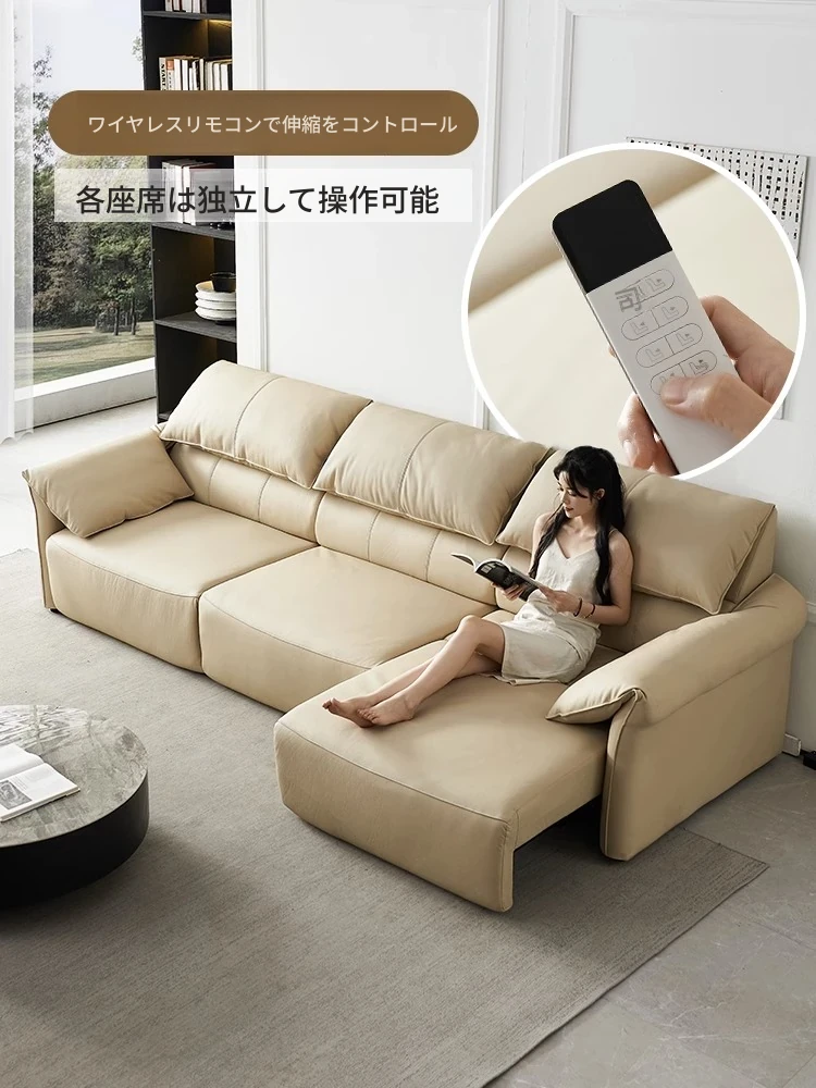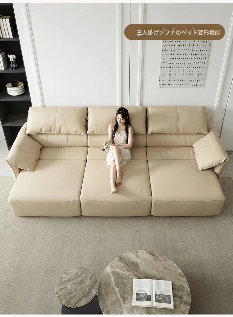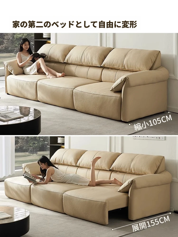 クリーム風味のVプラン大象耳リアルレザーソファ、全自動スマート伸縮ソファベッド、4メートルの長さでリビングルームに最適!快適さとスタイルを兼ね備えた極上の居心地をお楽しみください。