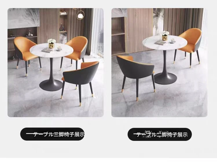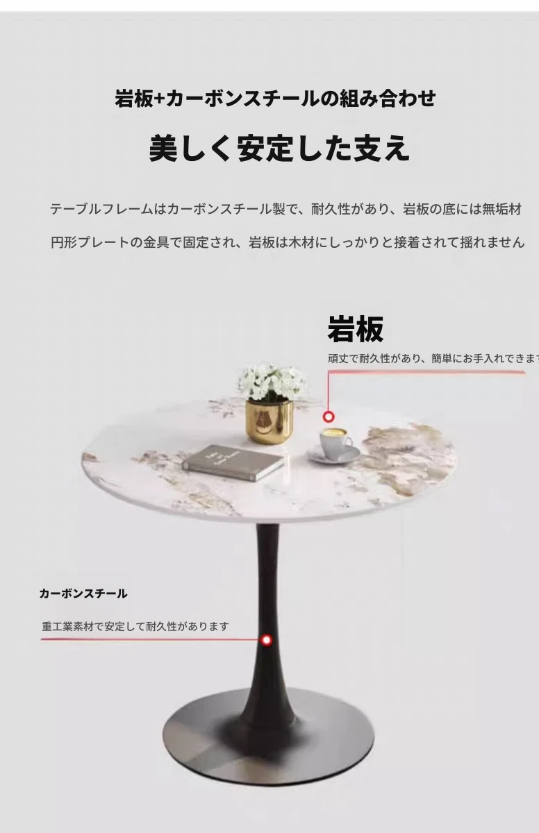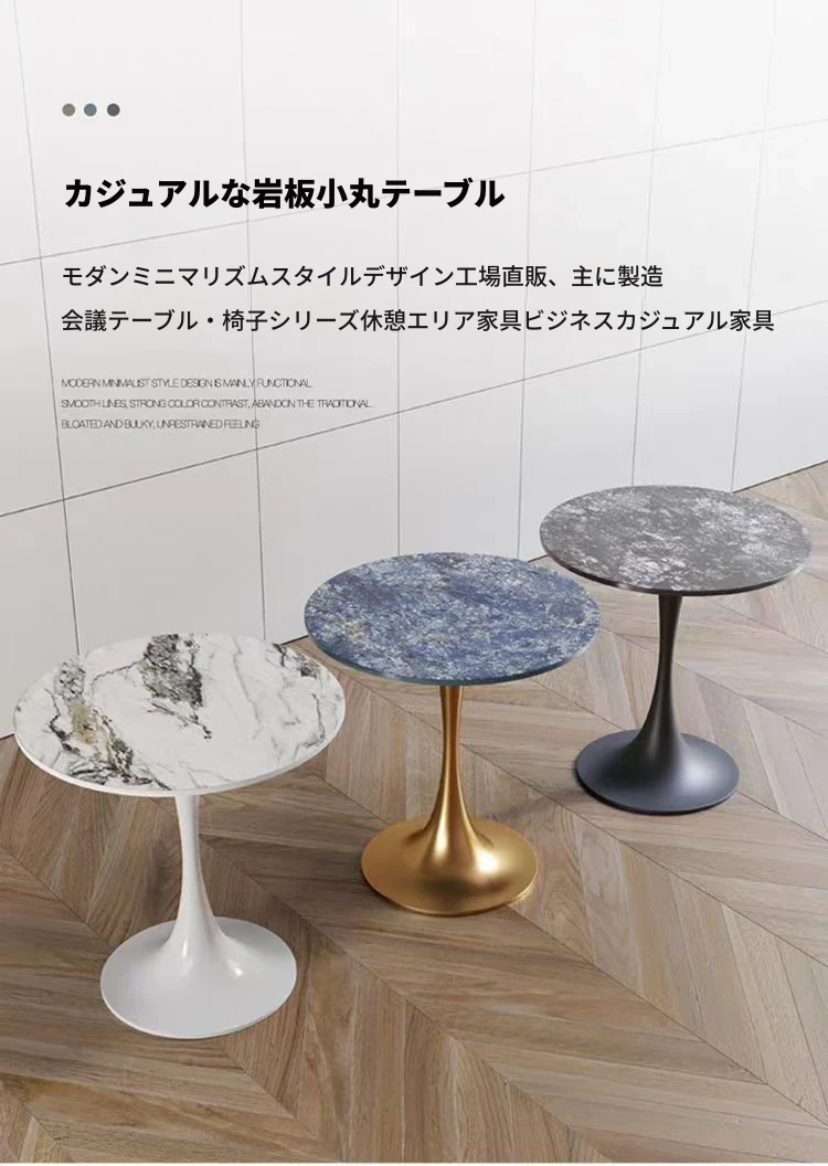 軽やかな贅沢感のある岩板製の談話テーブル&チェアセット|モダンでシンプルなデザイン|営業所や接客スペースに最適なリラックスできる円形テーブル|商談や会話を楽しむための理想的な空間を演出!