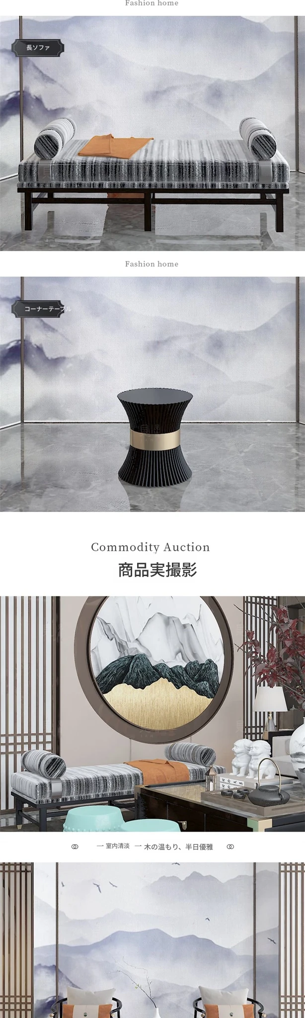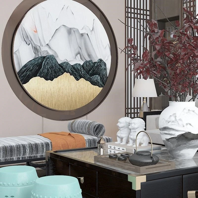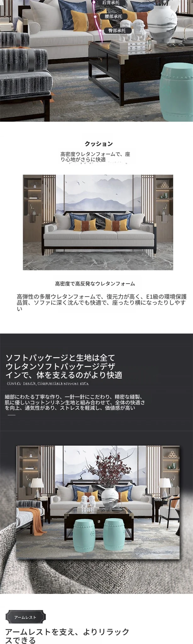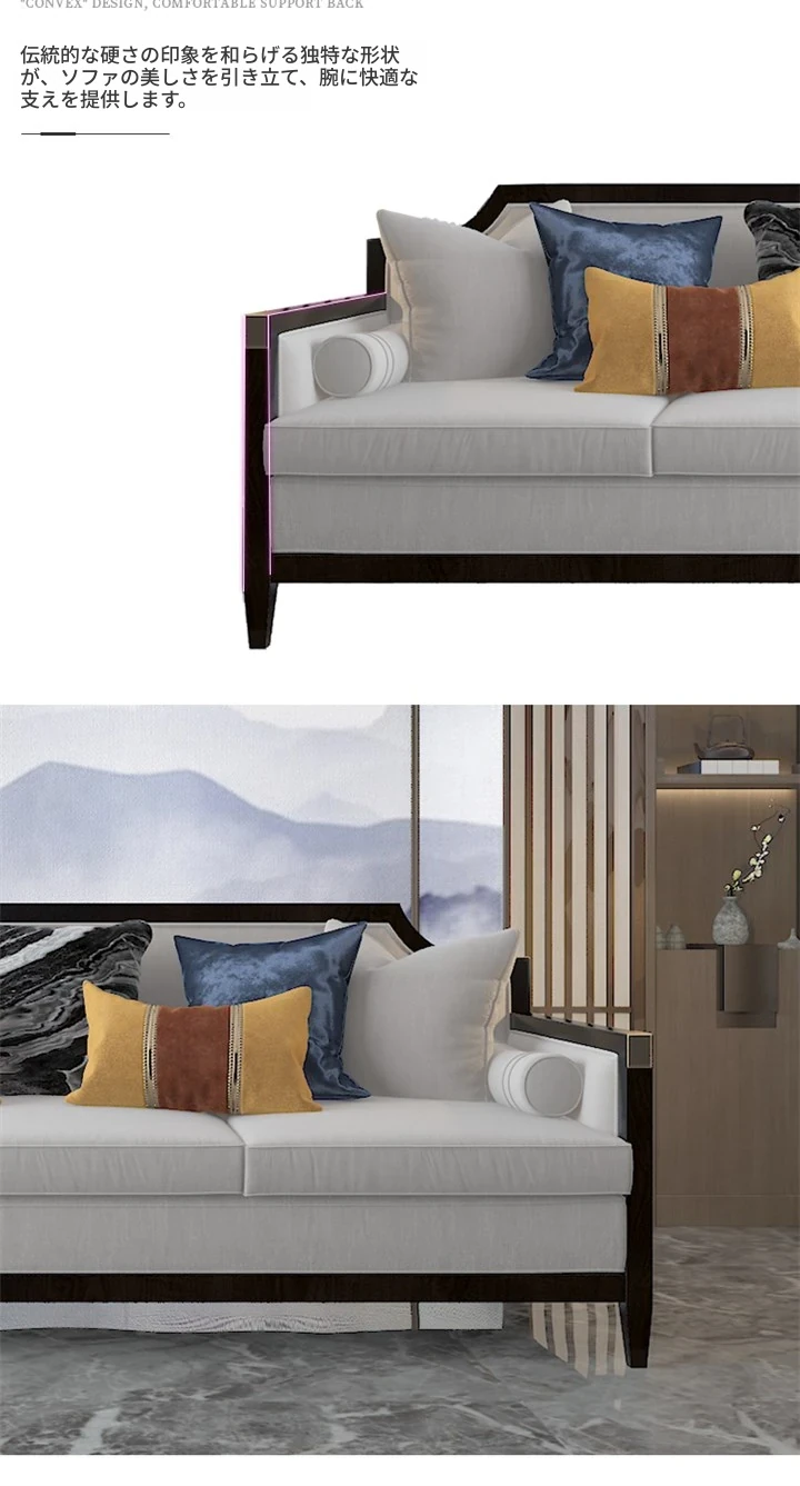 新中式デザインの本革&ファブリックソファセット - ヴィラのリビングルームに最適なラグジュアリー家具のスタイルサンプル!心地よい空間を演出します。