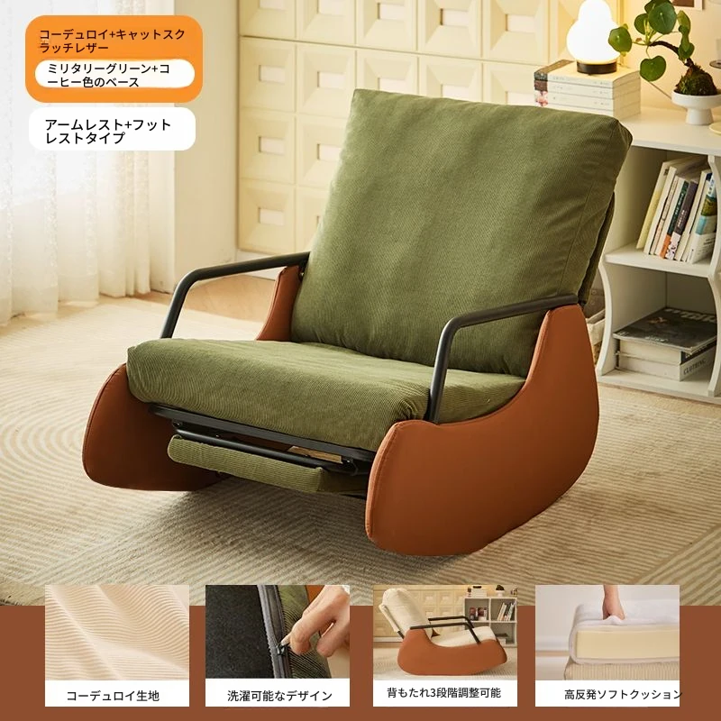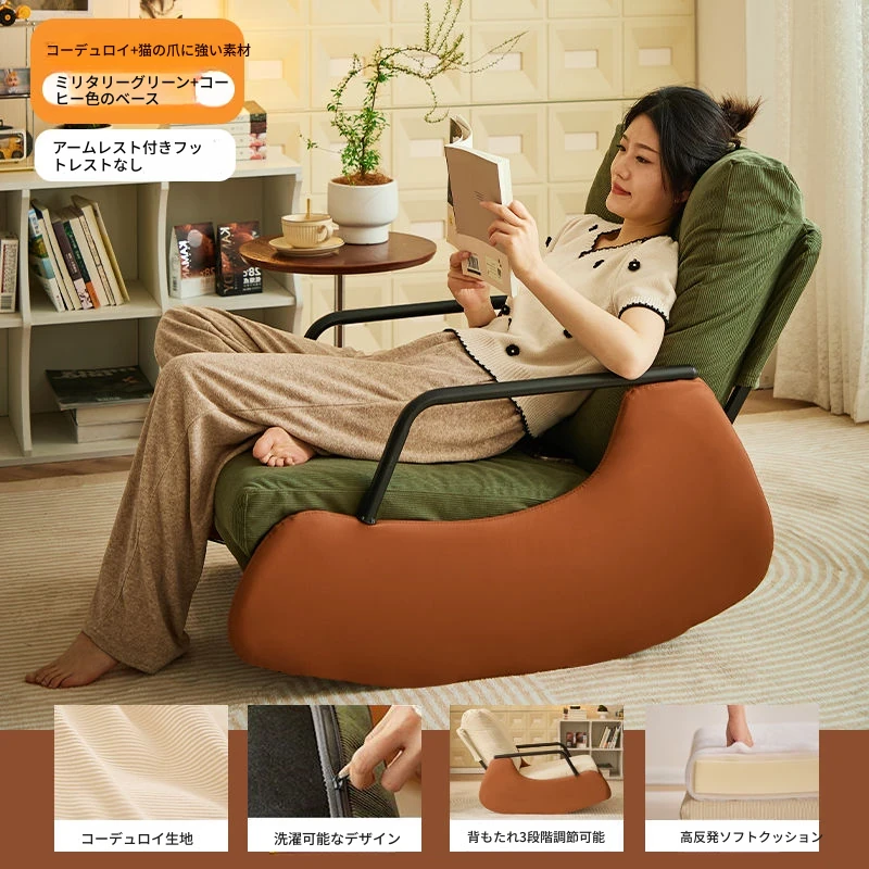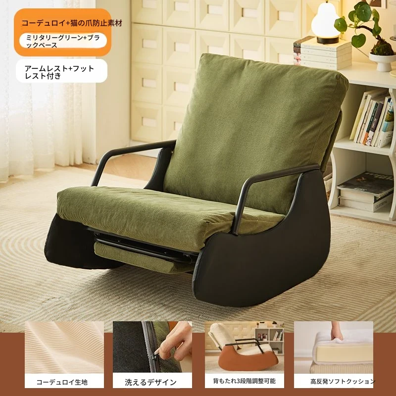 軍用グリーン【アーム付き+フットレスト】黒色キャットスクラッチ脚
