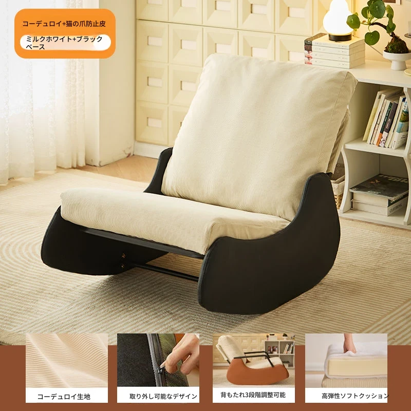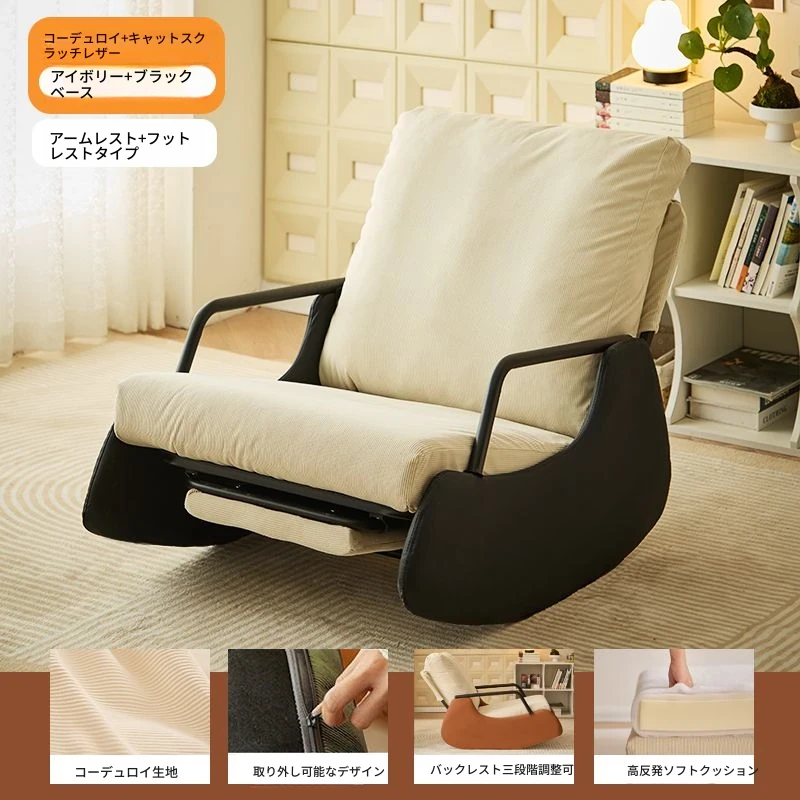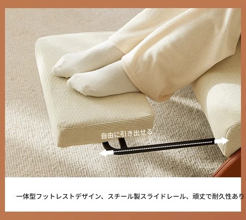クリーム色【アーム付き+フットレスト】黒色キャットスクラッチ脚