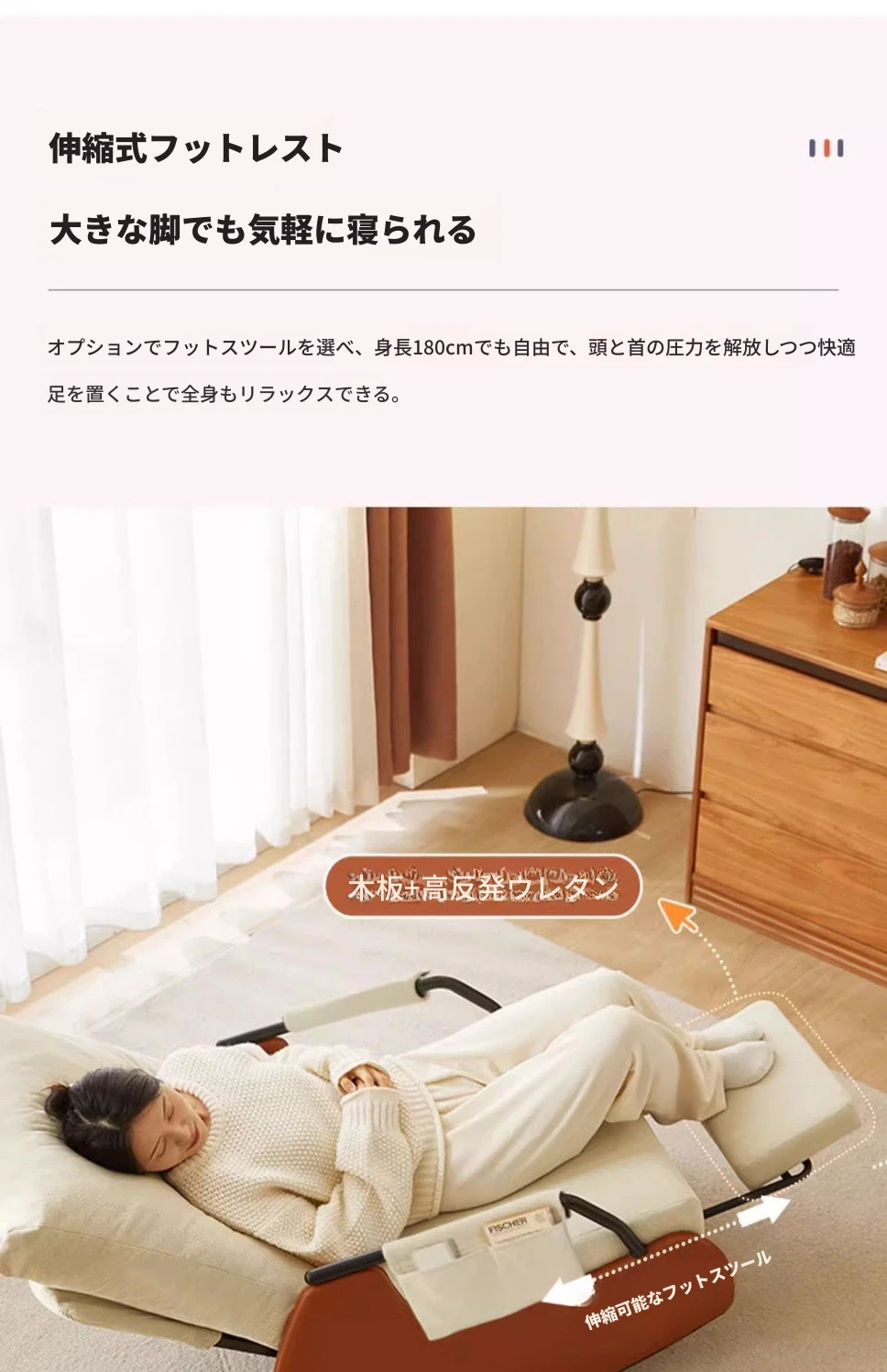 クリーム色【アーム付き+フットレスト】コーヒー色キャットスクラッチ脚