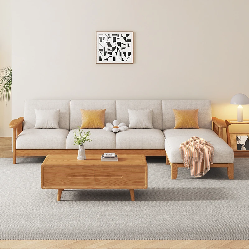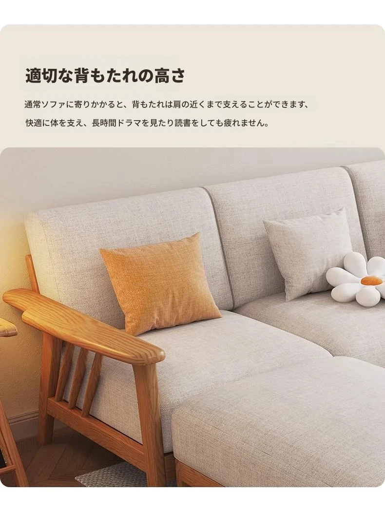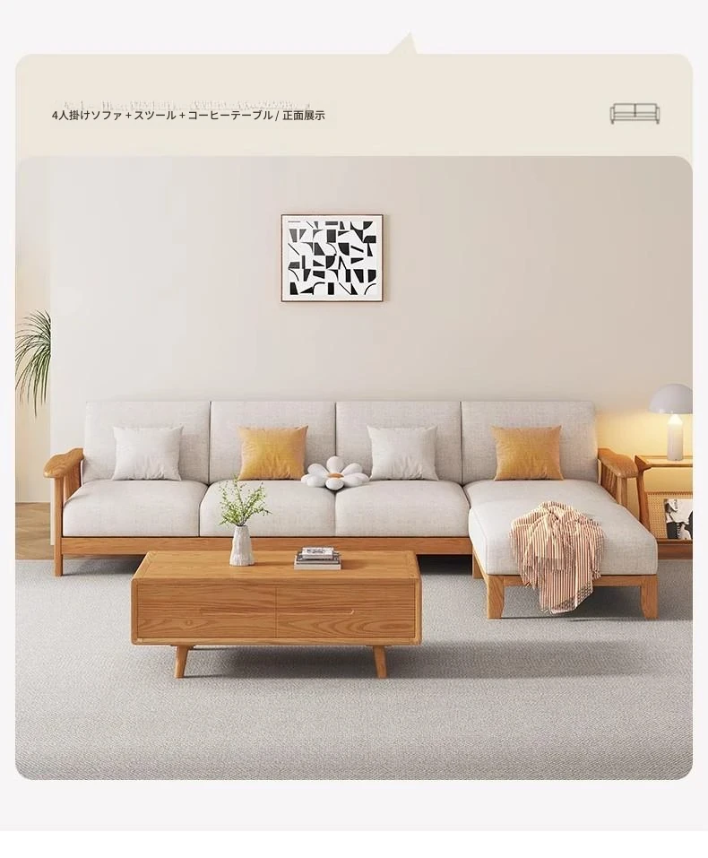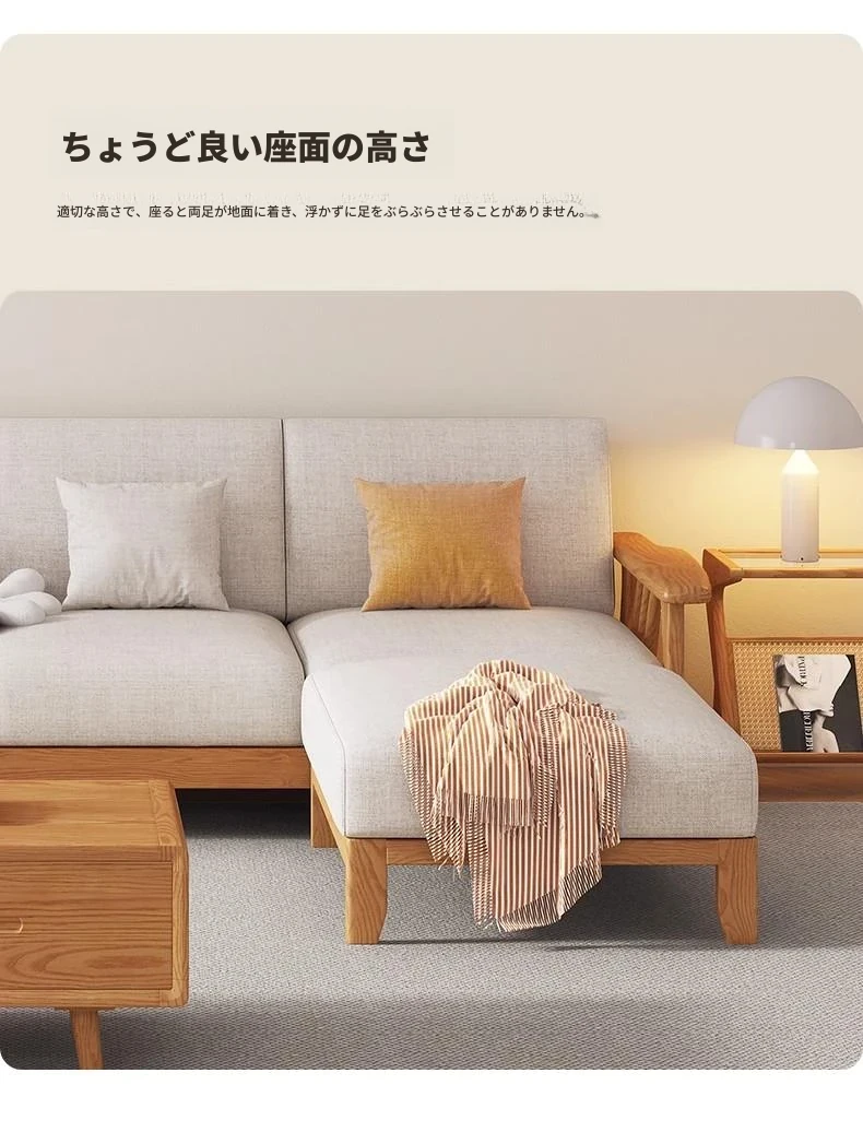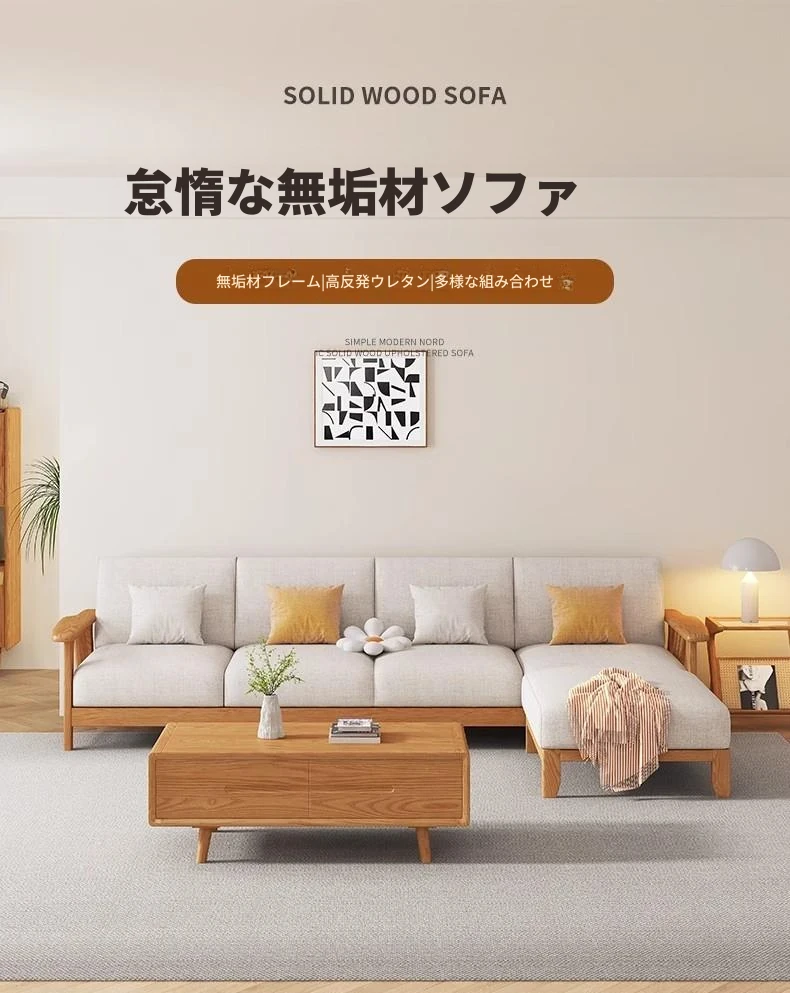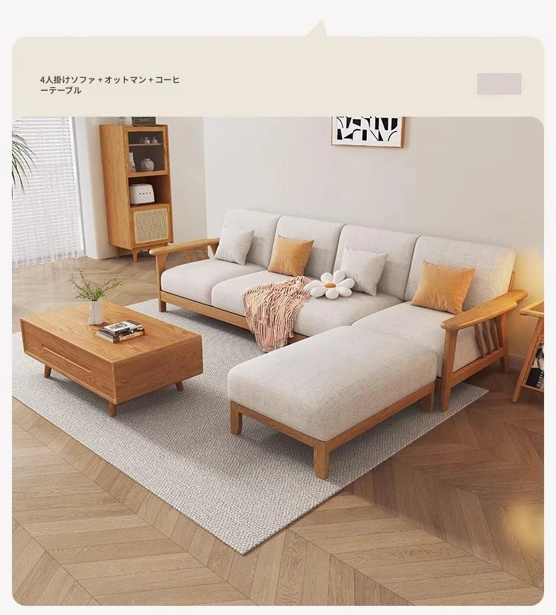 香港送料無料!北欧スタイルのホワイトアッシュ無垢材ソファセット - 侘寂風の日式リビング用コーナーカウチソファ。洗練されたデザインで、心地よい空間を演出します。