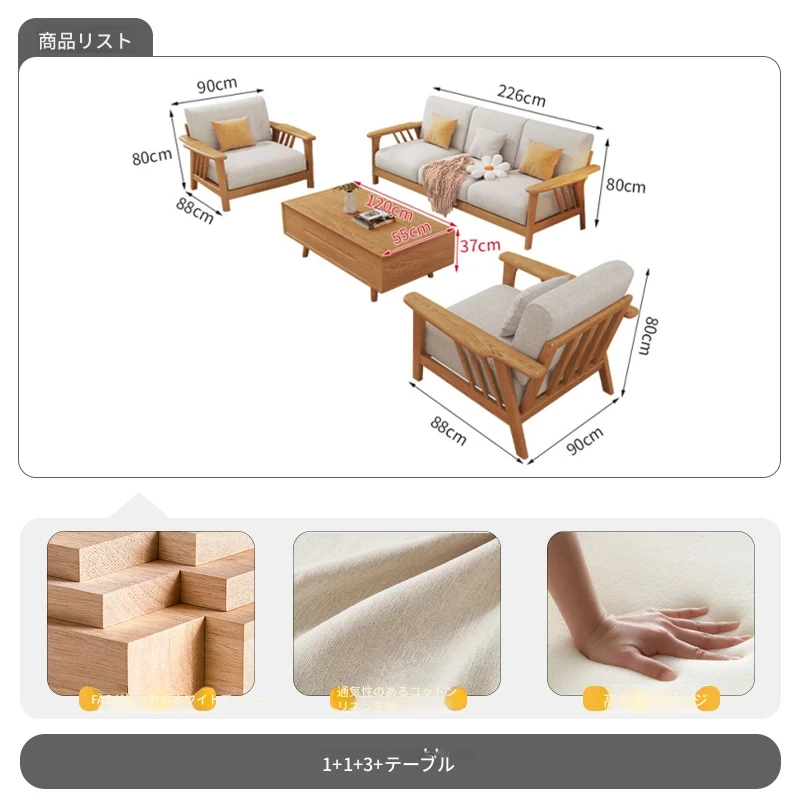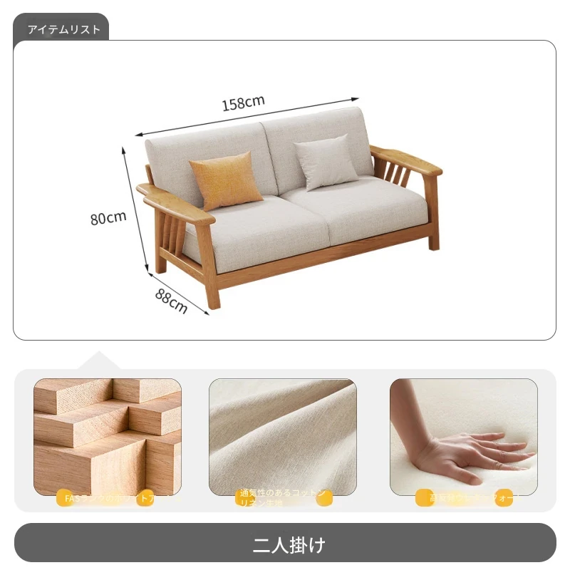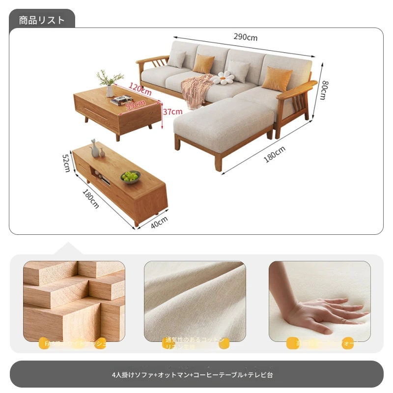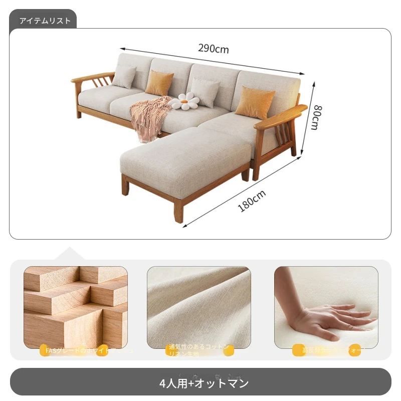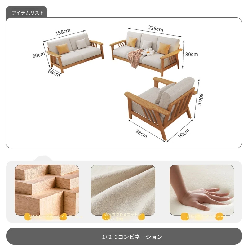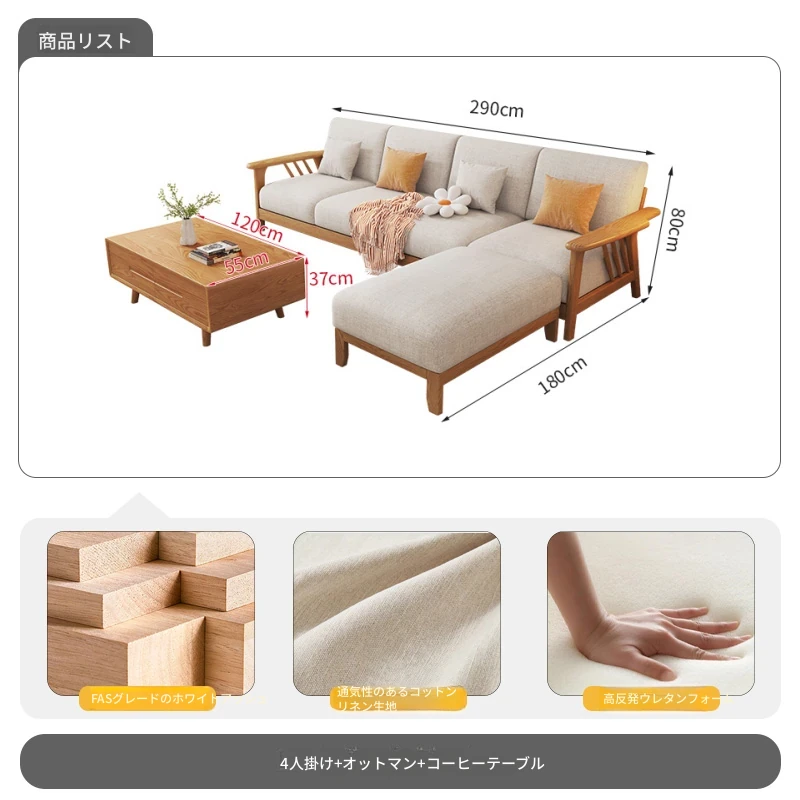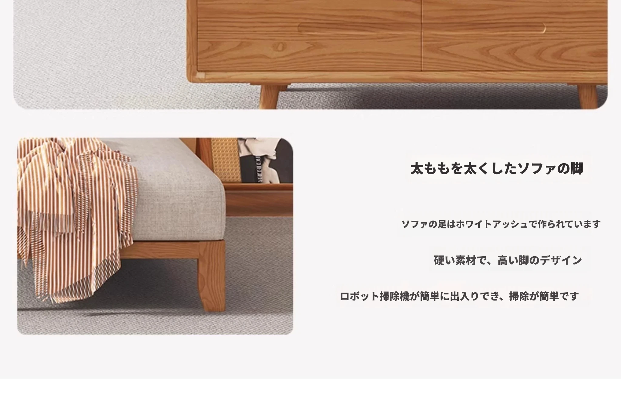 香港送料無料!北欧スタイルのホワイトアッシュ無垢材ソファセット - 侘寂風の日式リビング用コーナーカウチソファ。洗練されたデザインで、心地よい空間を演出します。