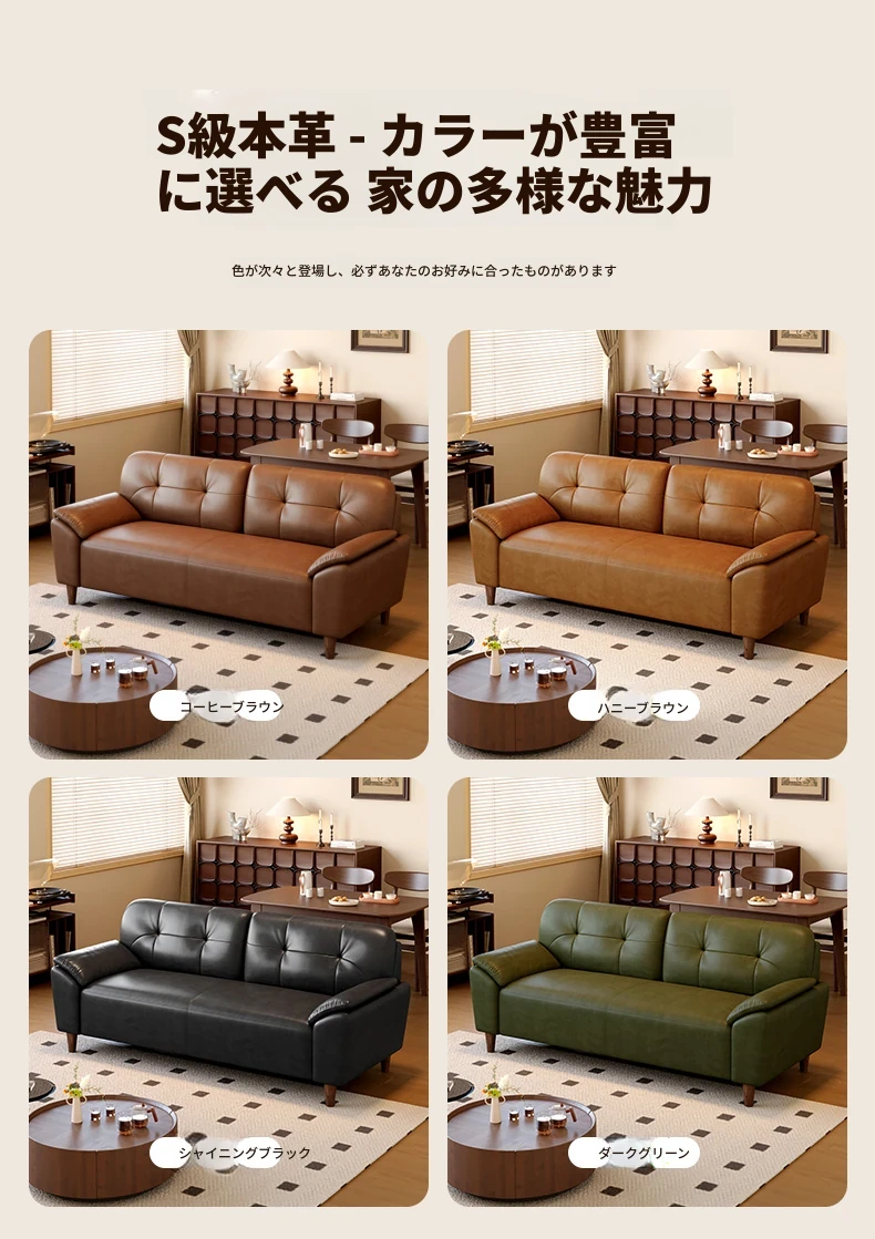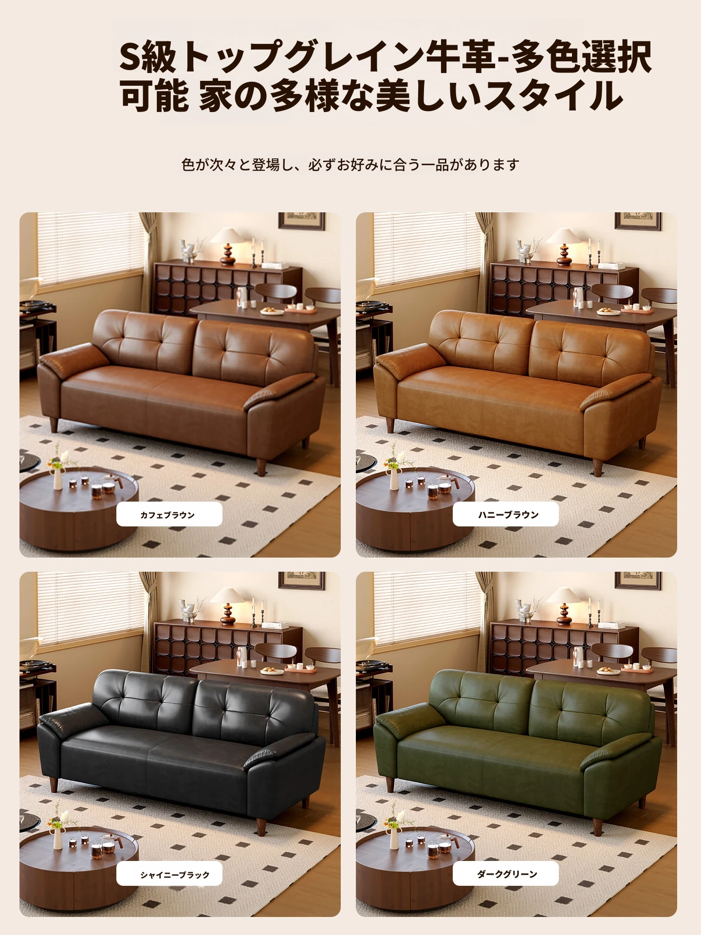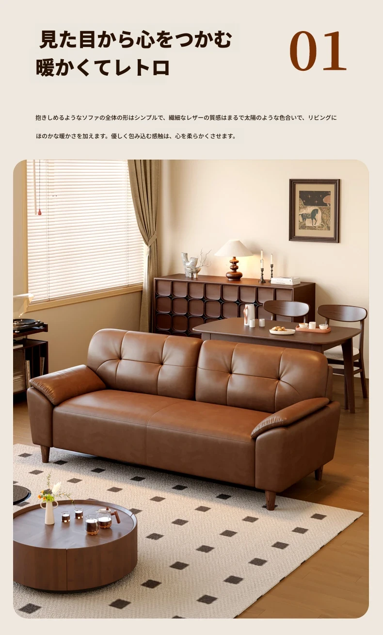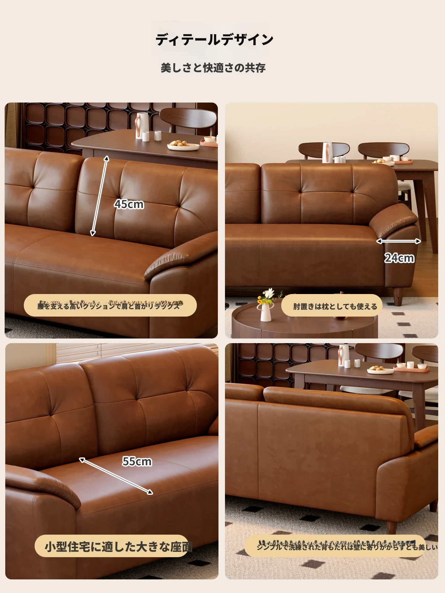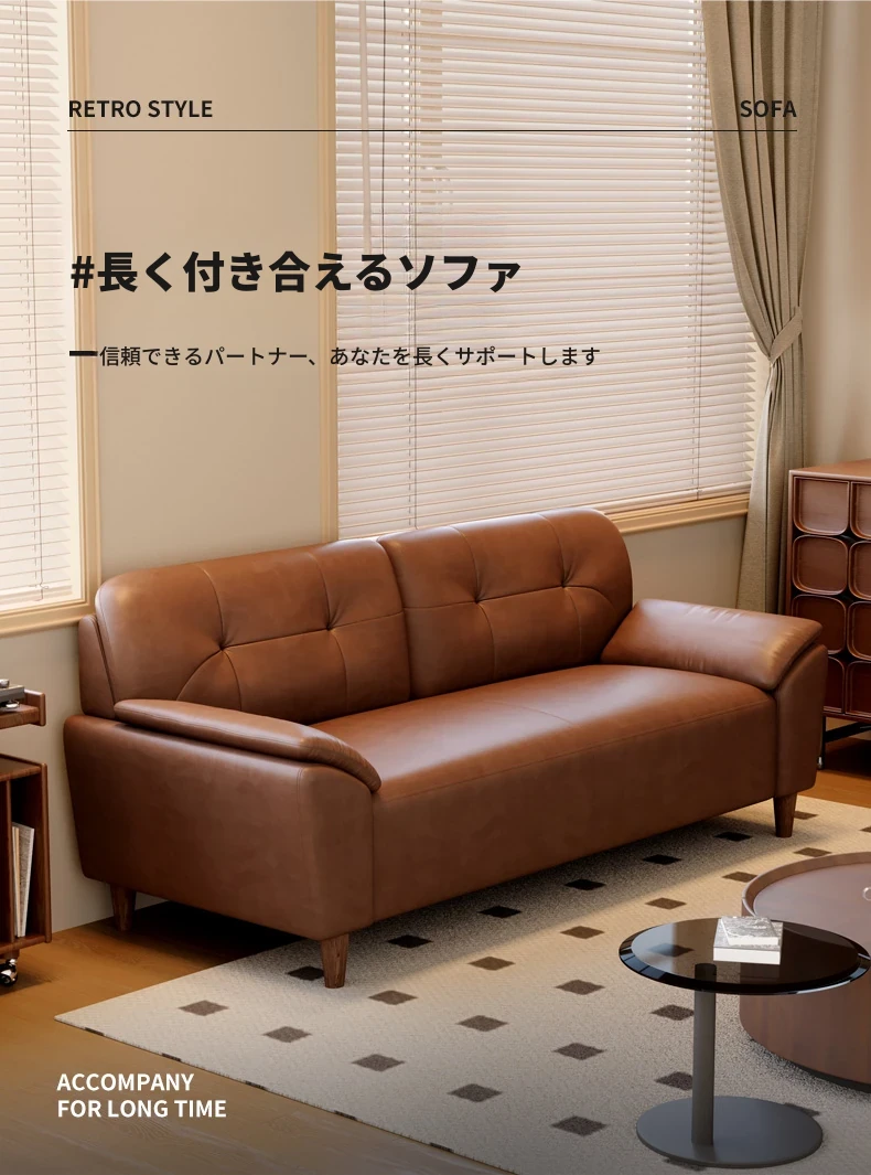 フランス風レトロオイルワックスレザーソファ 小型二人用 本革ソファ リビングにぴったりの三人掛け牛革ソファ スタイリッシュで高級感あふれるデザインで、コンパクトな空間にも最適!