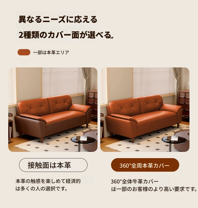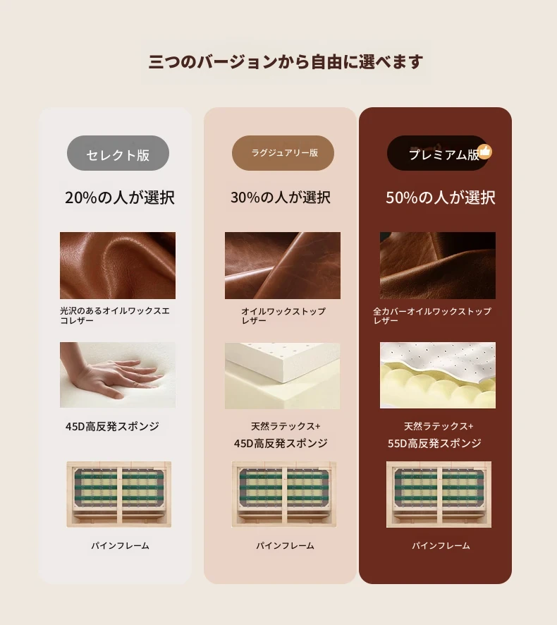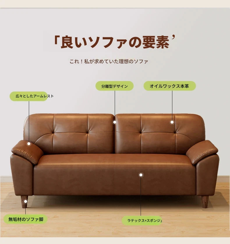 1.8メートル大スリーピース(オイルワックスエコレザー)高反発スポンジ+フレームアップグレード