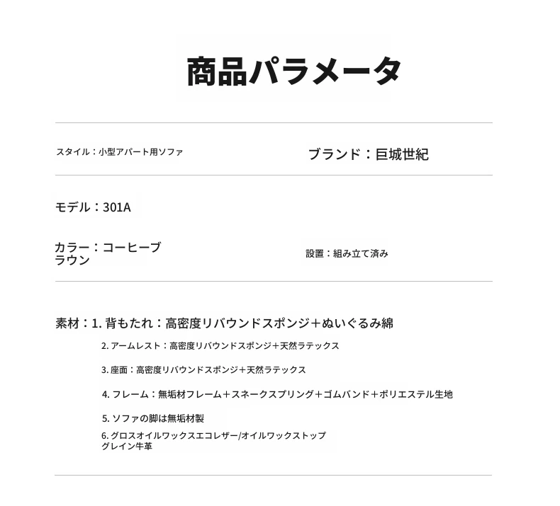 1.6メートル小スリーピース(オイルワックスエコレザー)高反発スポンジ+フレームアップグレード