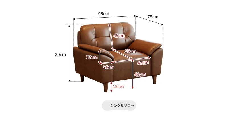 0.95メートルシングルソファ(オイルワックスエコレザー)高反発スポンジ+フレームアップグレード