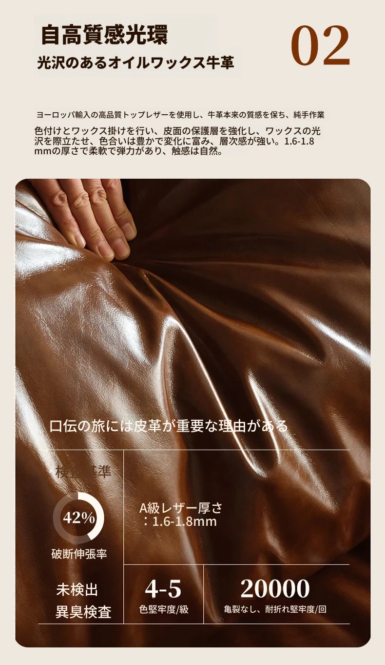 1.4メートル大ダブルソファ(オイルワックスエコレザー)高反発スポンジ+フレームアップグレード