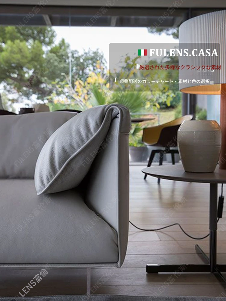 FULENSイタリアンポストモダン家庭用ダウンレザーソファ|デザイナー仕様の3人掛けソファで、洗練されたスタイルと快適さを実現!おしゃれなインテリアにぴったりな一品です。