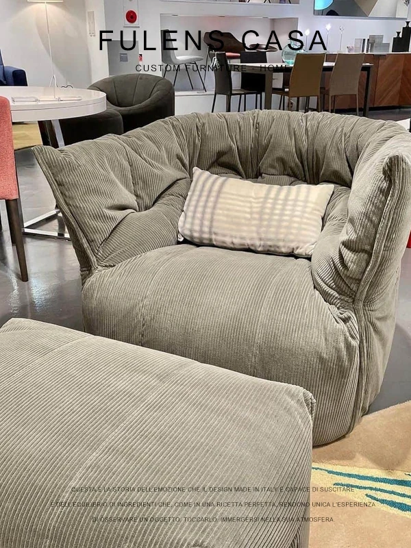 FULENSイタリアンミニマリスト・ブリガンティン・リラックスチェア - おしゃれで快適な布製シングルチェア、リビングや寝室に最適!デザイナー推奨の一品。