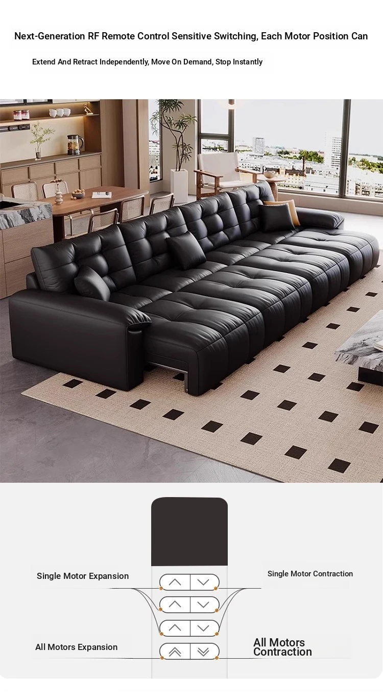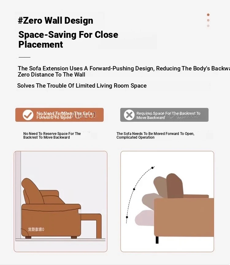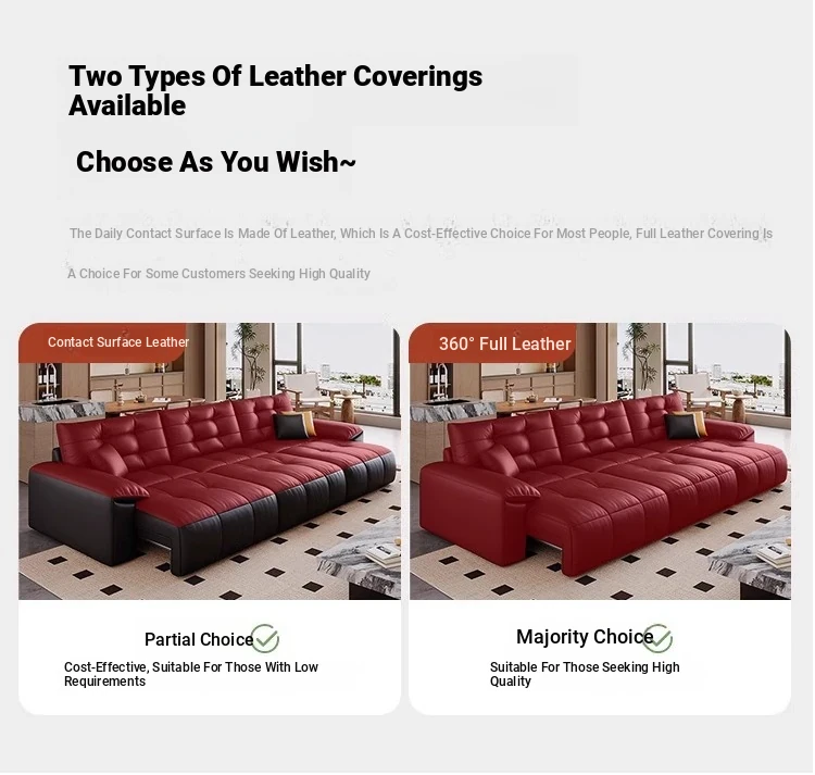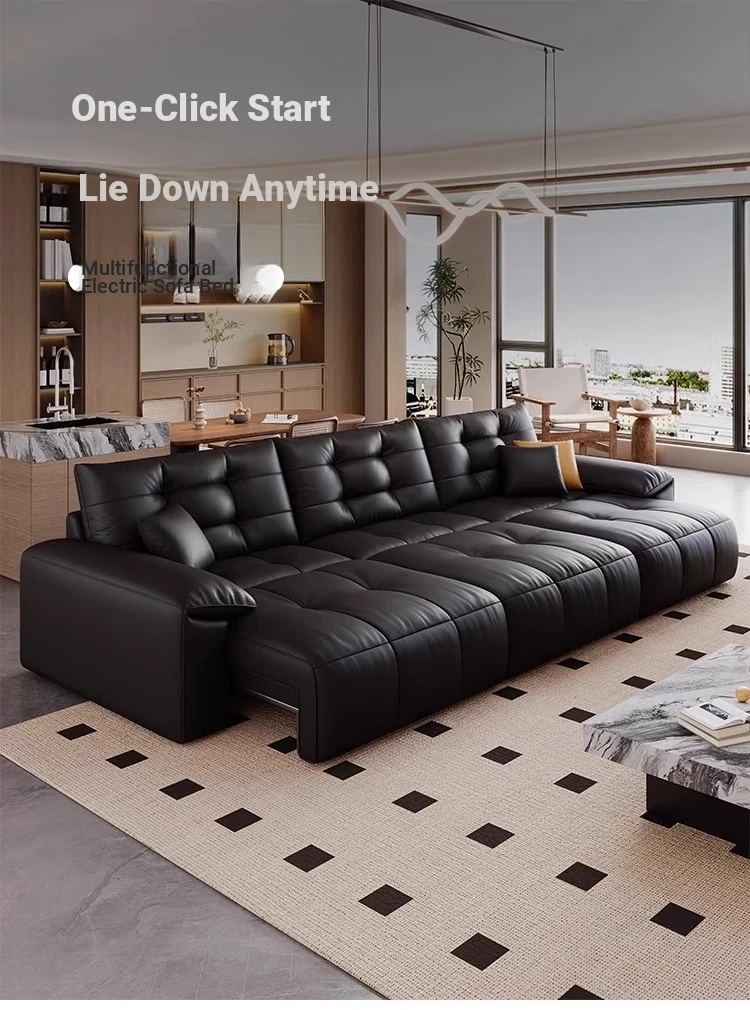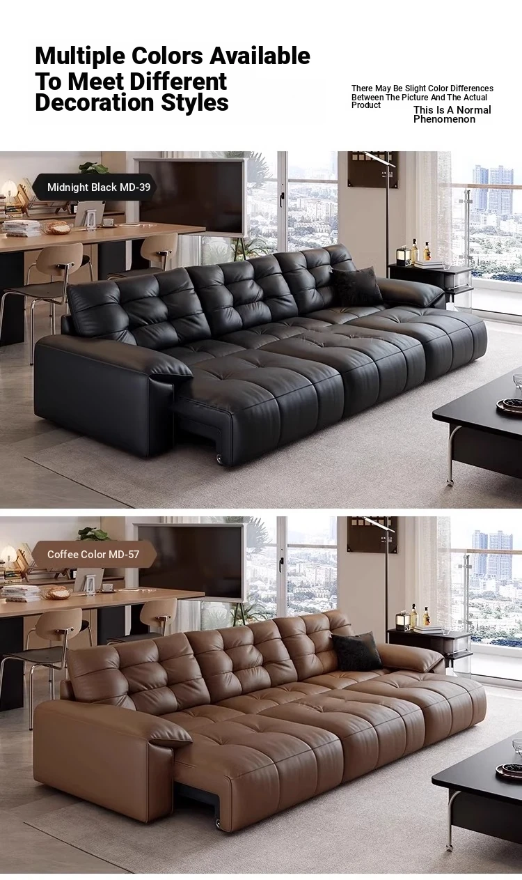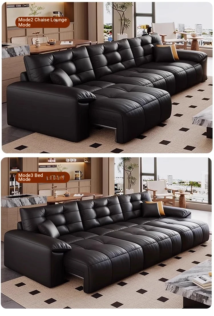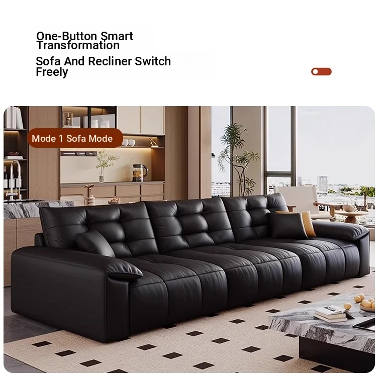 Genuine Leather Electric Sofa Bed - Versatile 3-Seater with Reclining Headrest, Zero Wall Design, Ideal for Living Rooms, Luxurious Top-Grain Leather, Perfect for Comfort and Style!