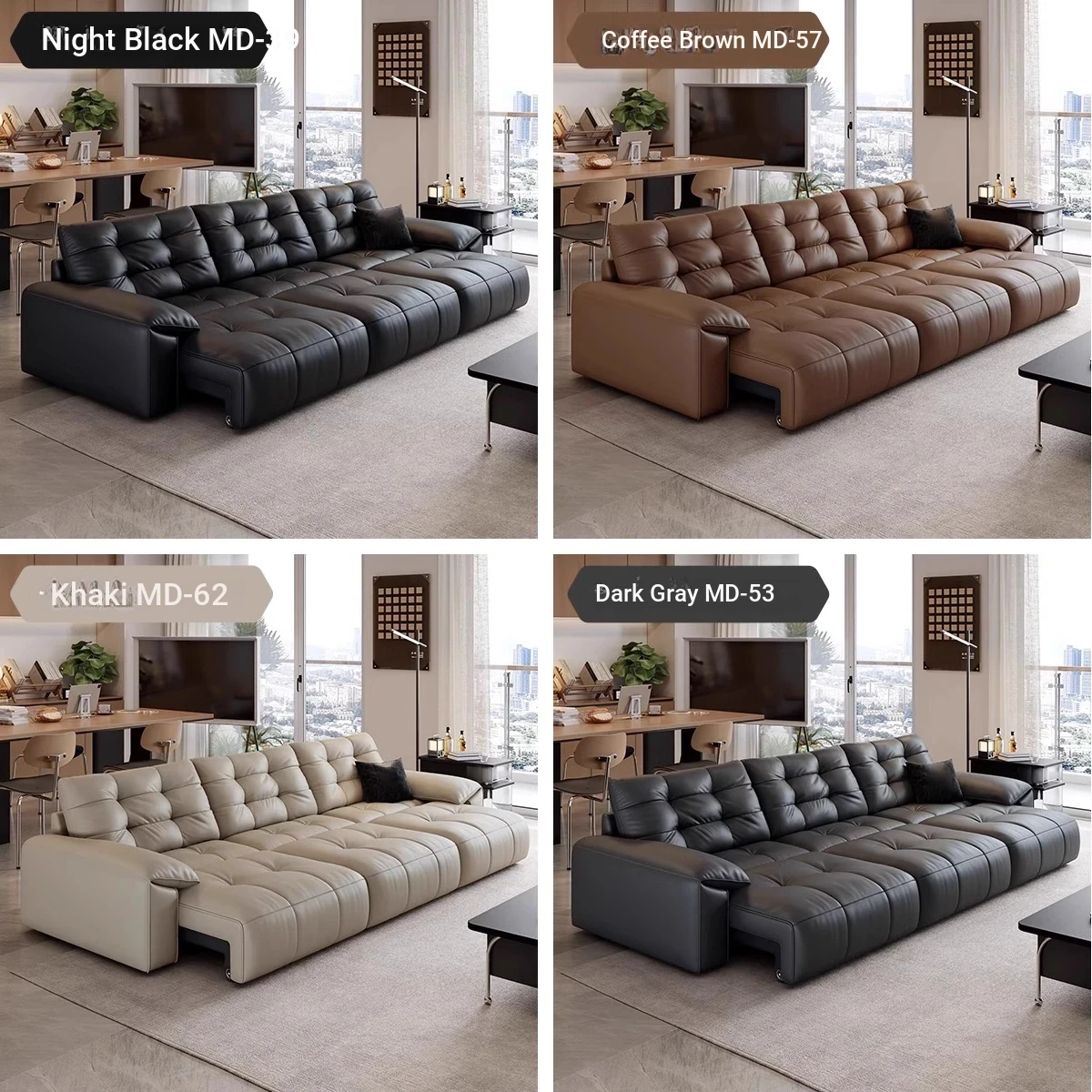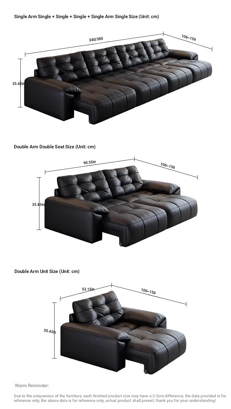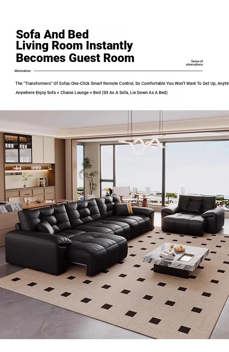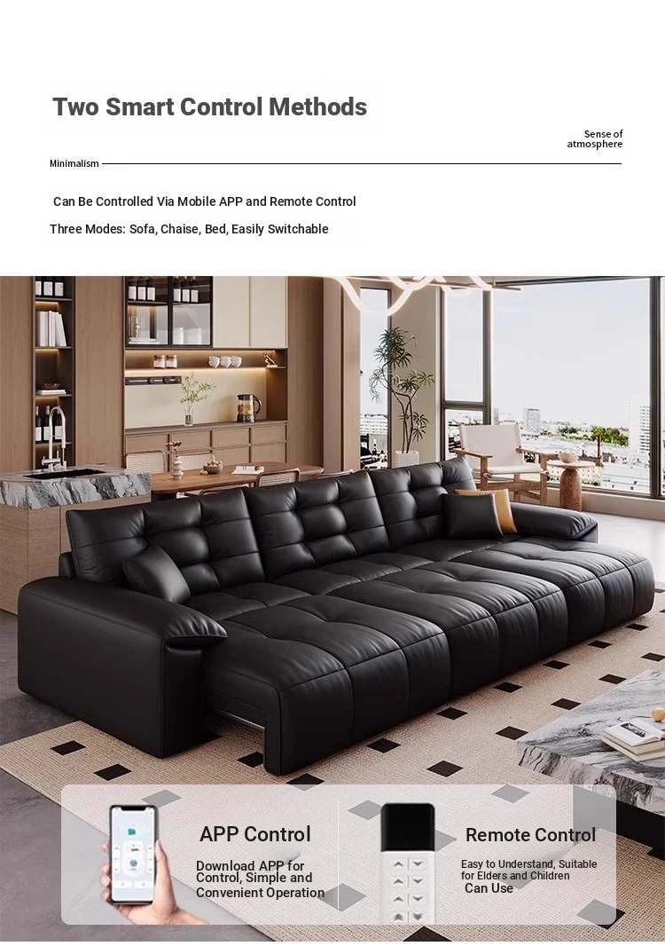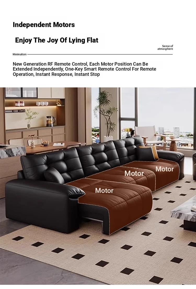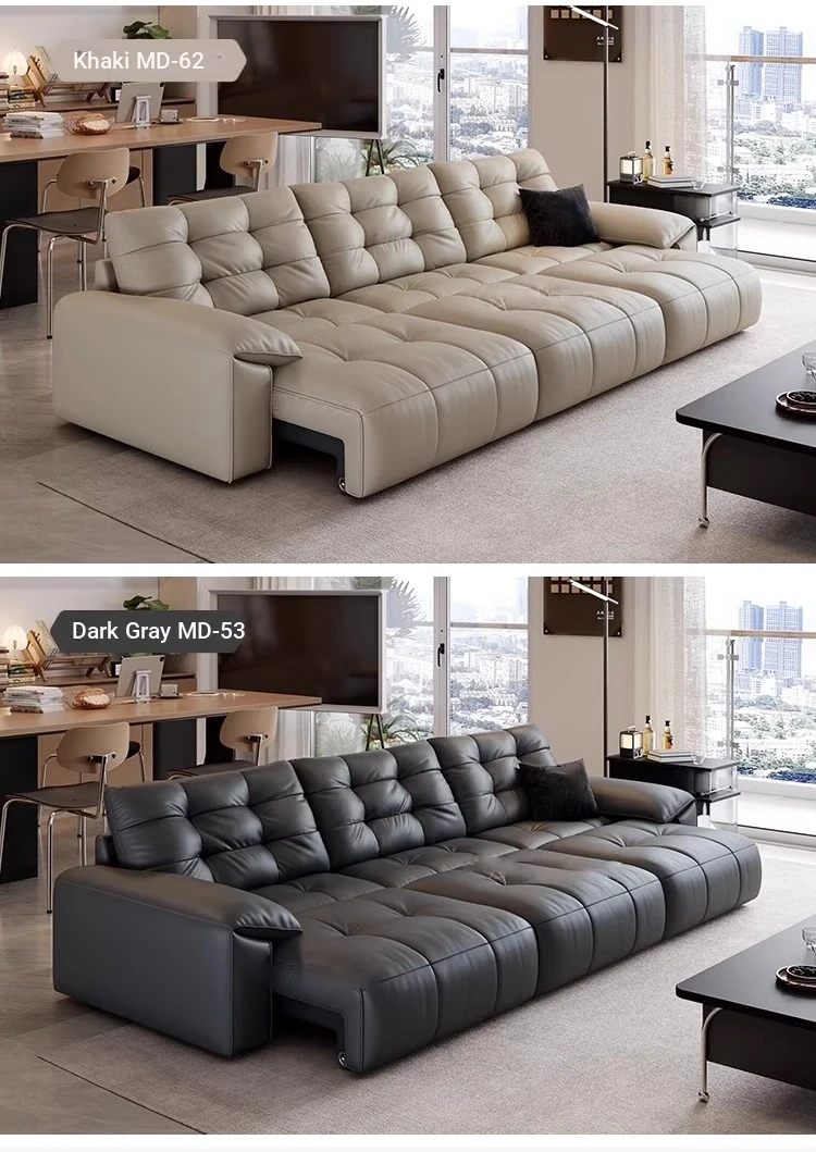Genuine Leather Electric Sofa Bed - Versatile 3-Seater with Reclining Headrest, Zero Wall Design, Ideal for Living Rooms, Luxurious Top-Grain Leather, Perfect for Comfort and Style!