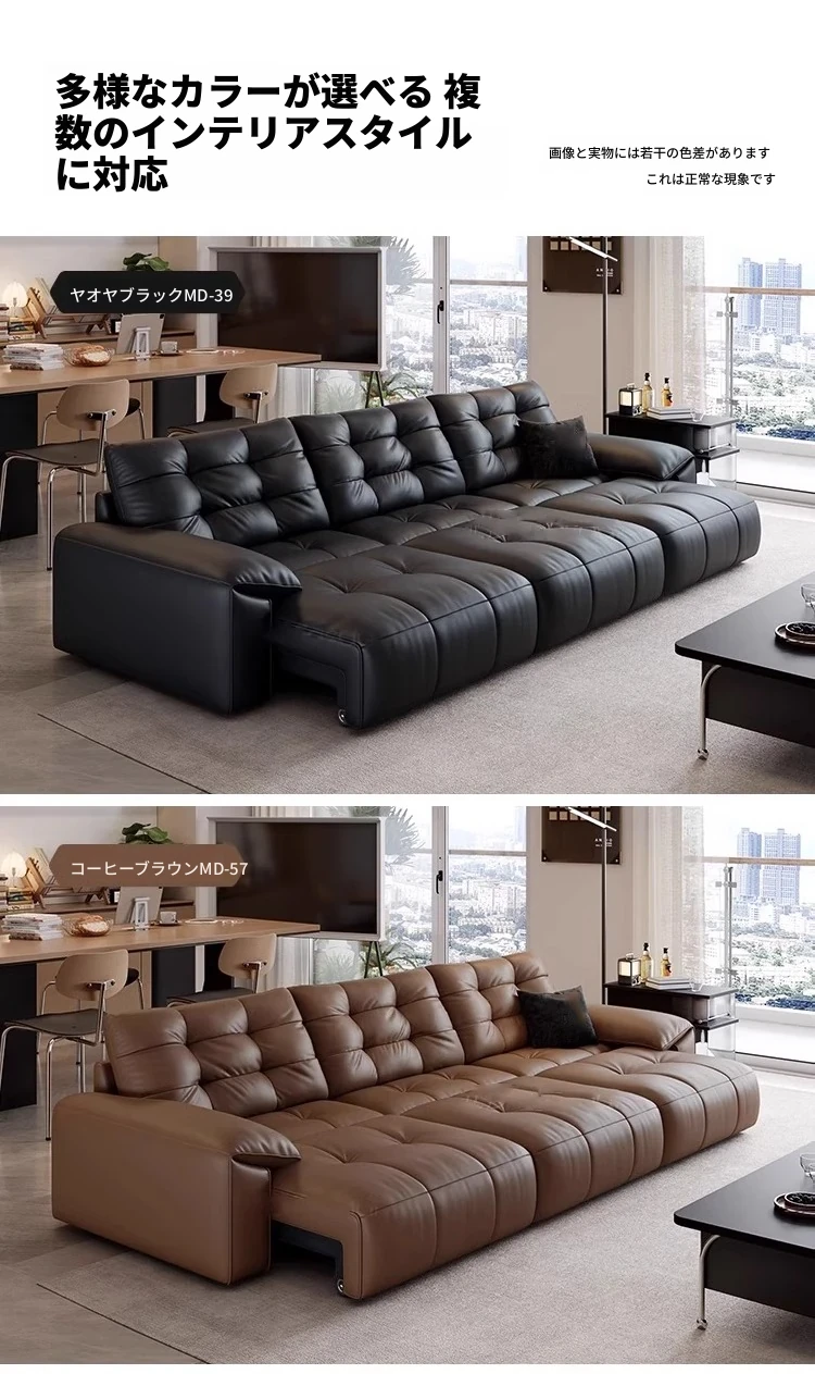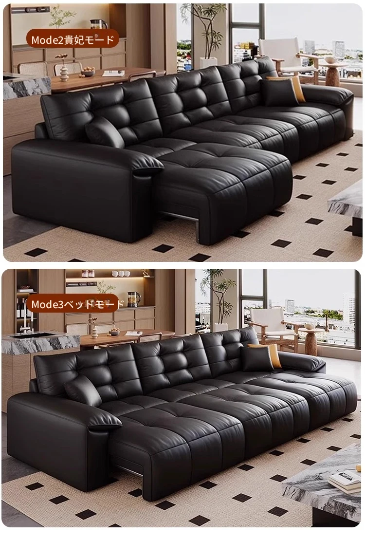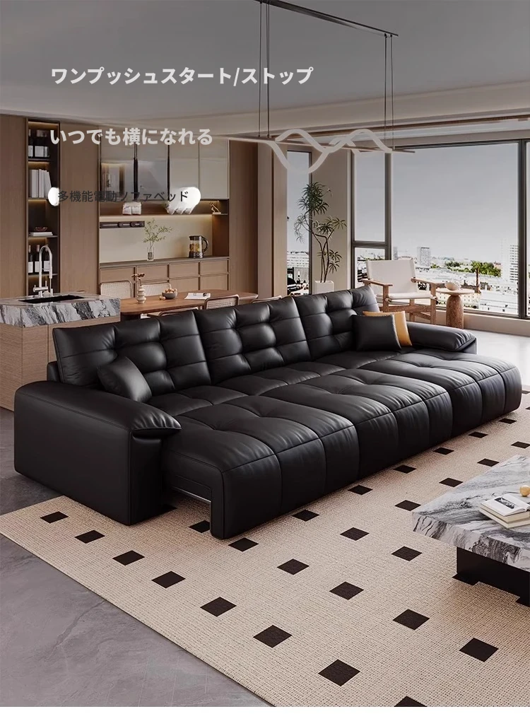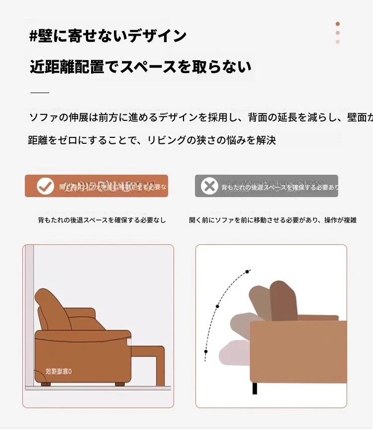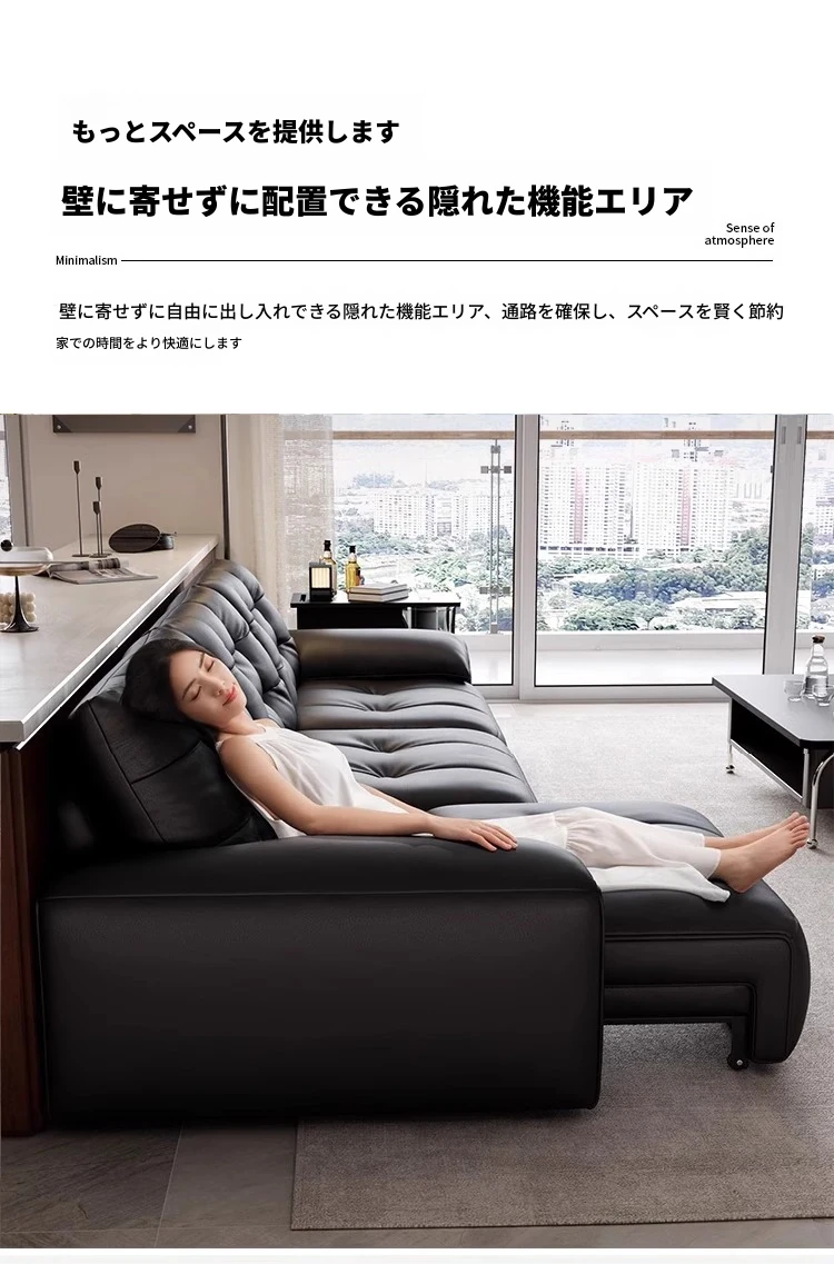 本革電動ソファベッド|リビング兼用|スライド式ダブル3人掛け|高級牛革使用|壁にぴったり配置可能|快適なリラックス空間を実現!