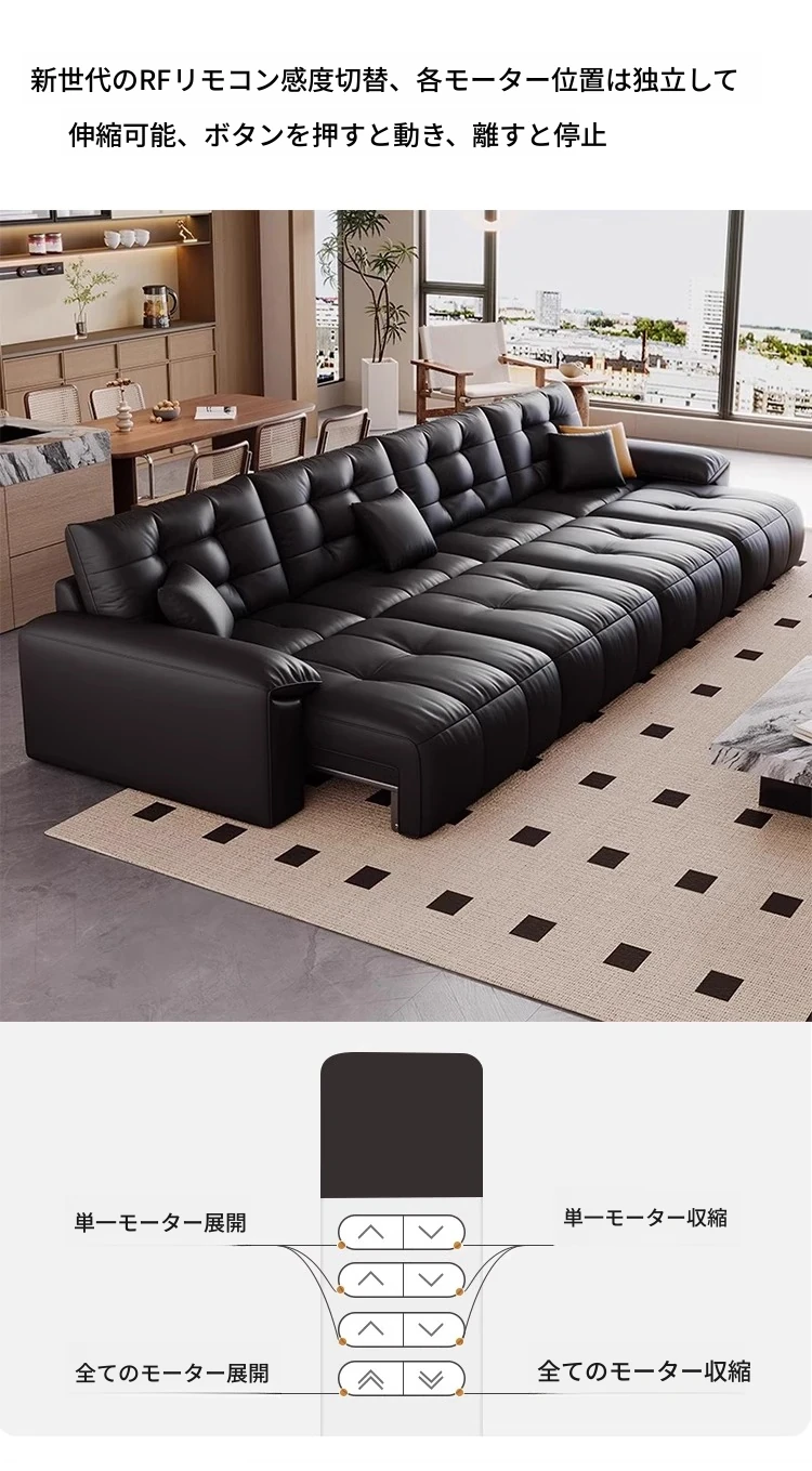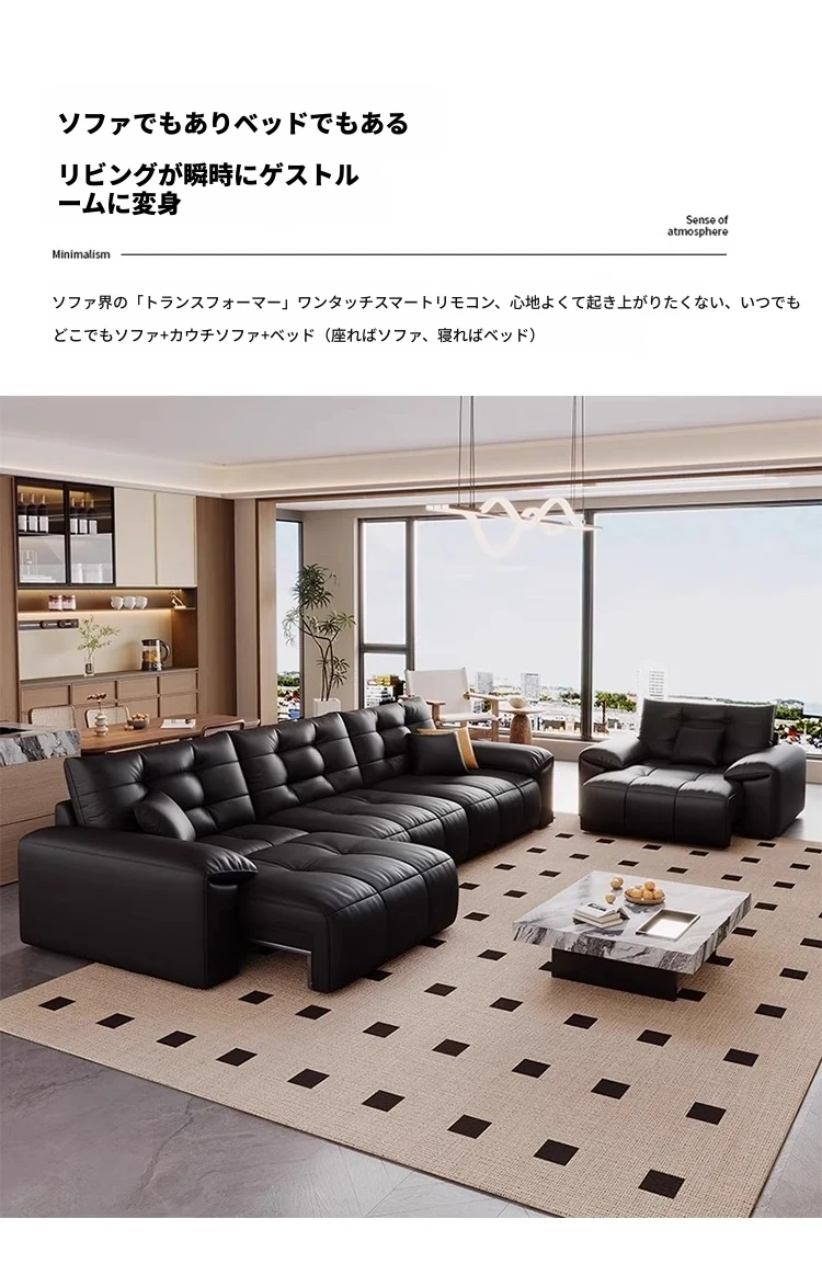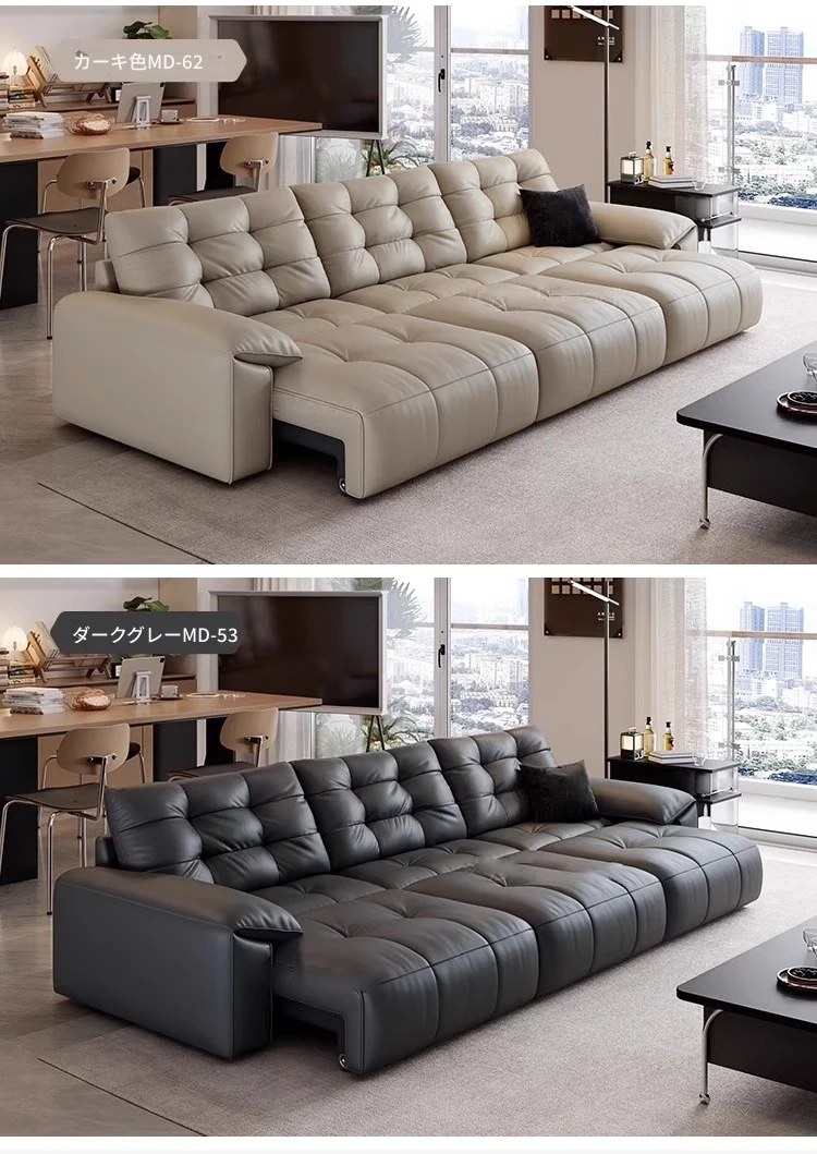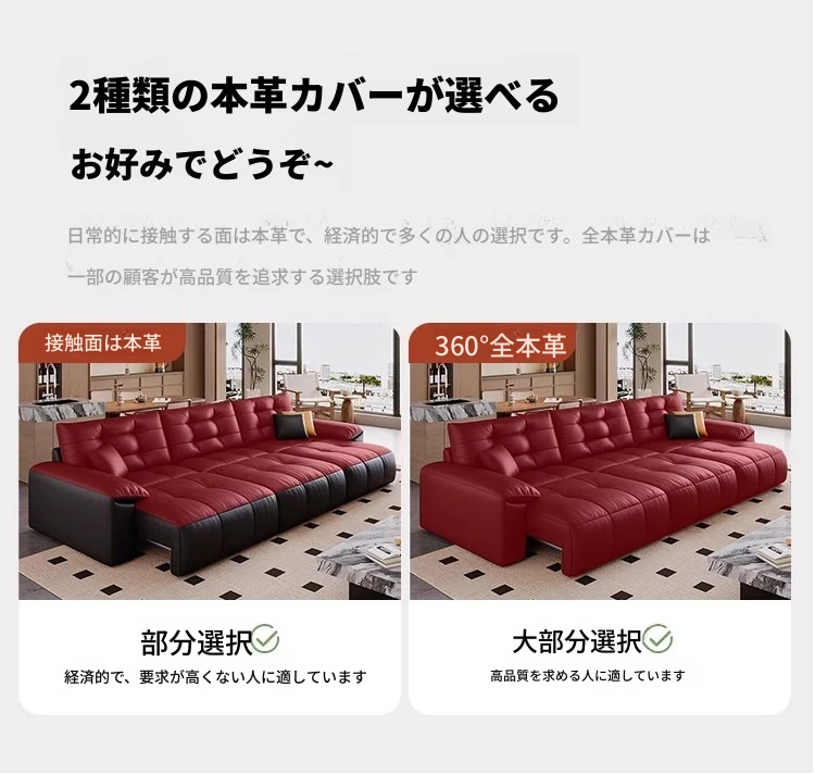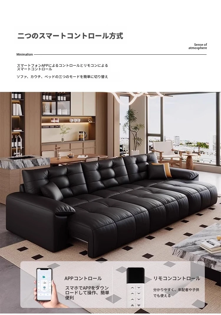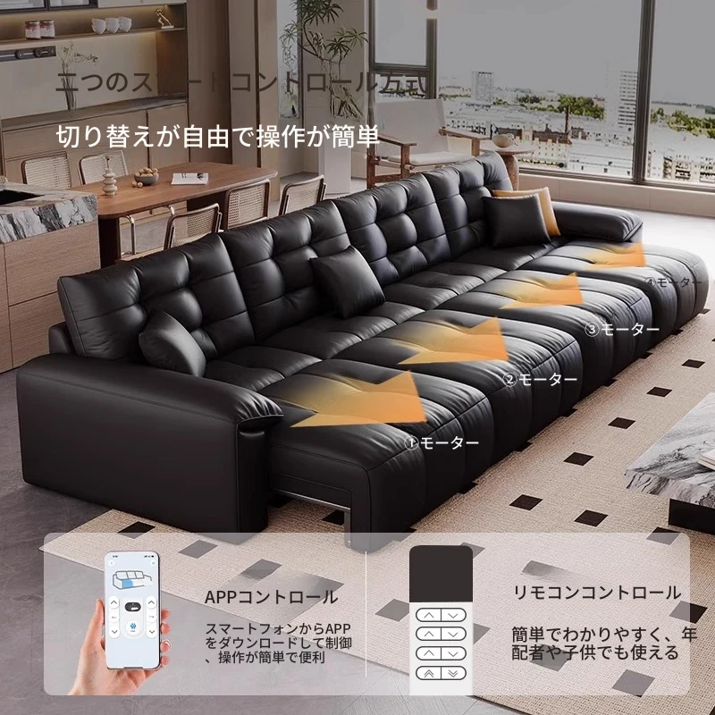 本革電動ソファベッド|リビング兼用|スライド式ダブル3人掛け|高級牛革使用|壁にぴったり配置可能|快適なリラックス空間を実現!