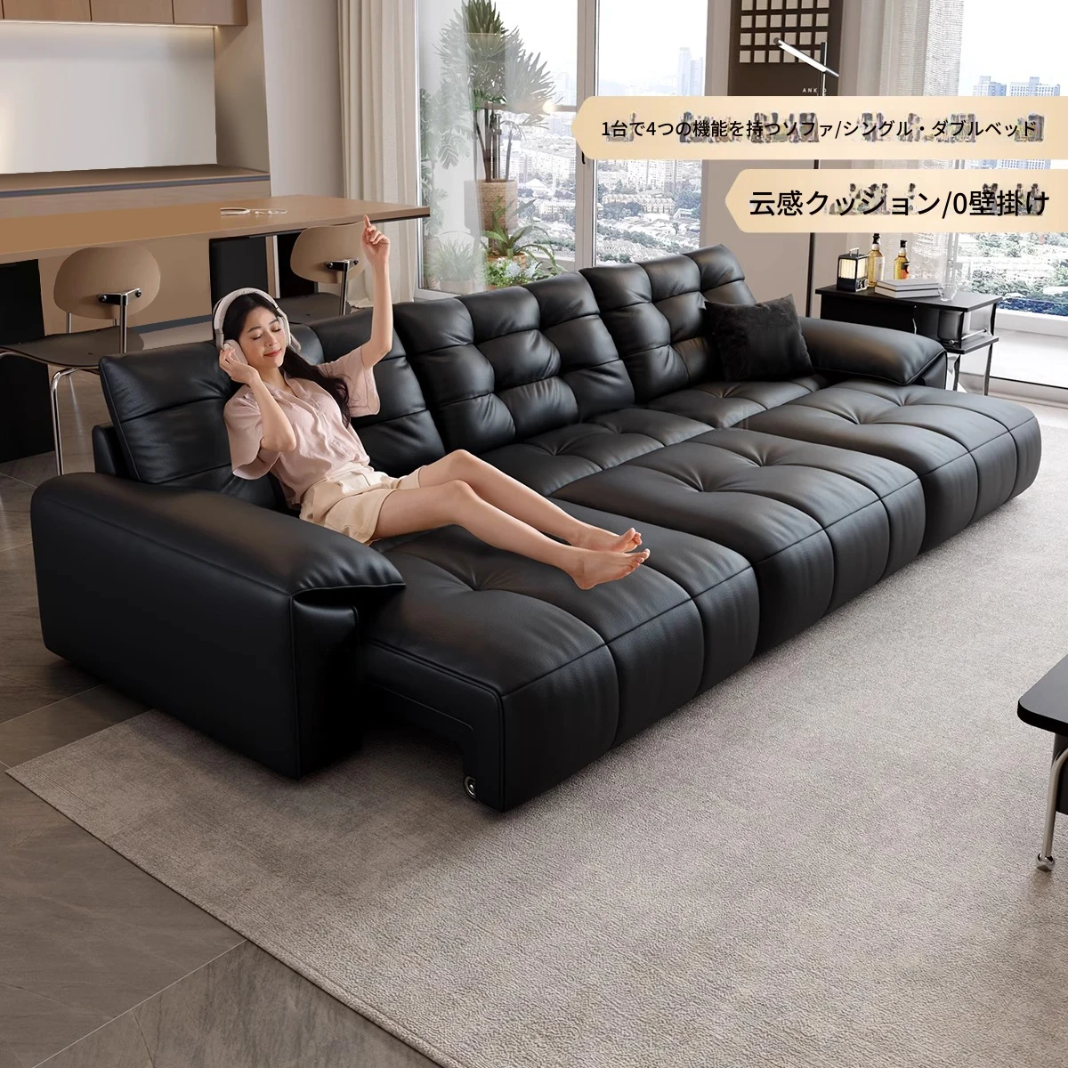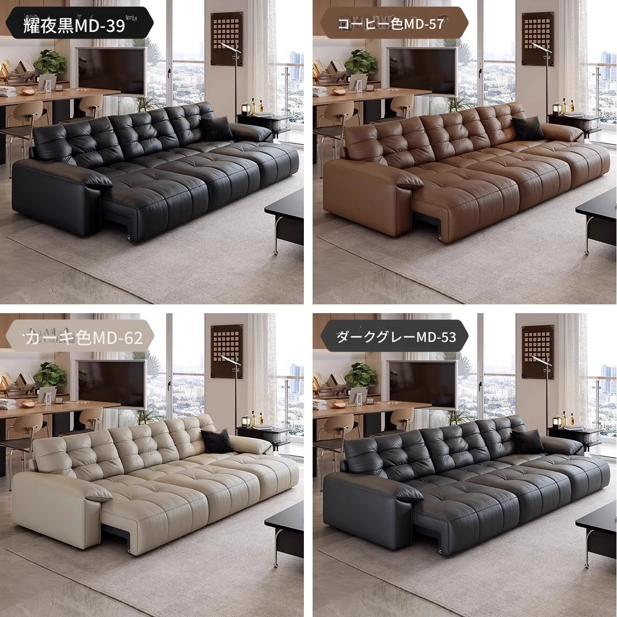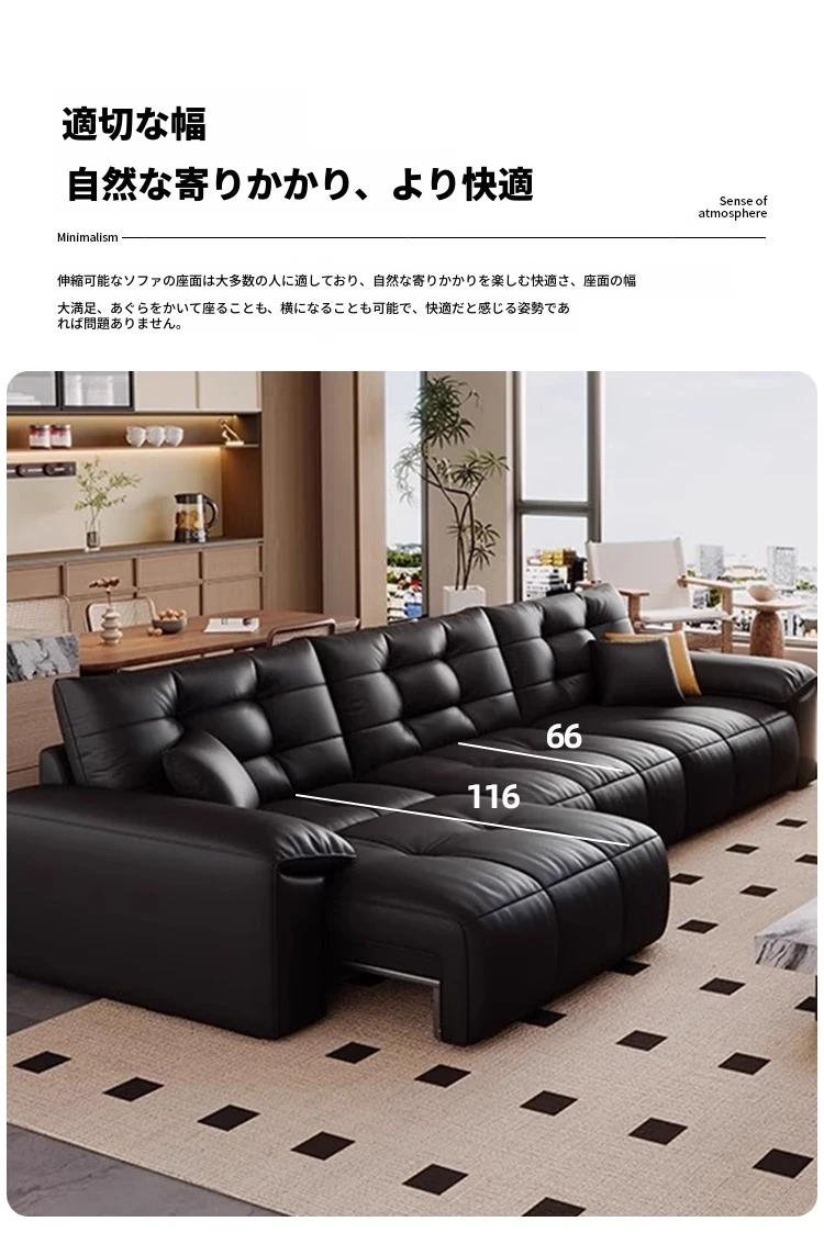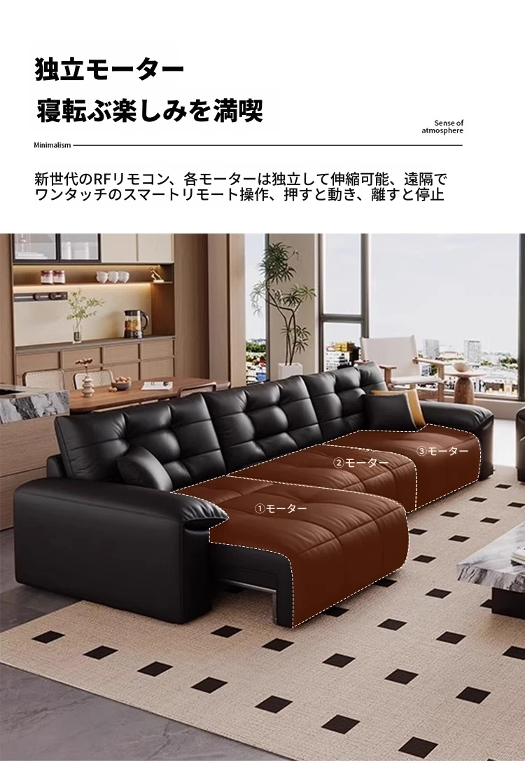 本革電動ソファベッド|リビング兼用|スライド式ダブル3人掛け|高級牛革使用|壁にぴったり配置可能|快適なリラックス空間を実現!