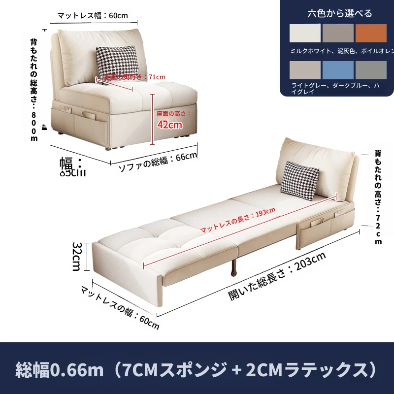 総幅0.66メートル(7CMスポンジ+2CMラテックス)収納なし