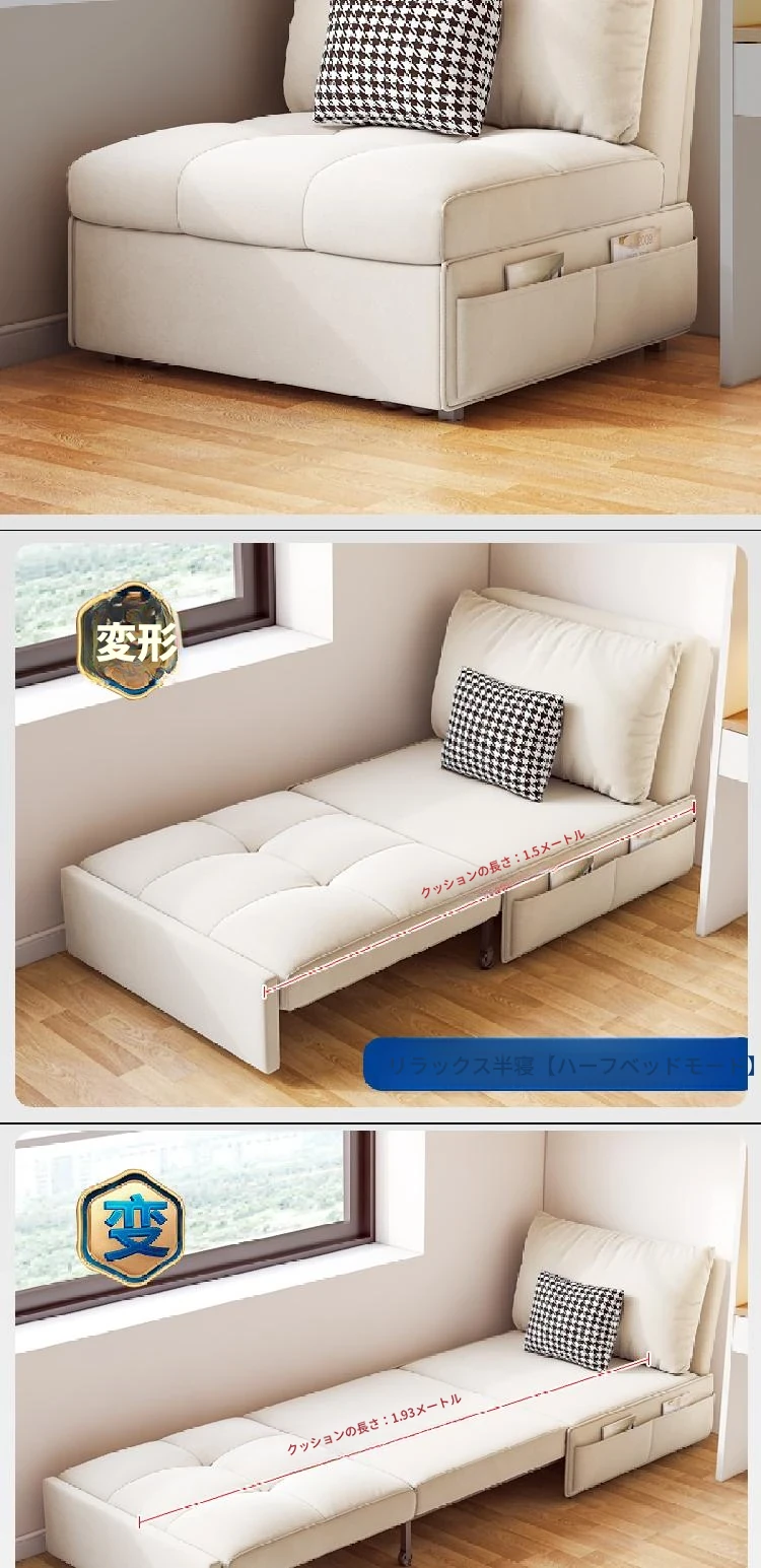 【香港送料無料】2024年新作!流行のソファベッド - アームレスデザインで小型スペースにも最適!折りたたみ&伸縮可能な1人用・2人用両用タイプ。快適な休息空間を手に入れよう!