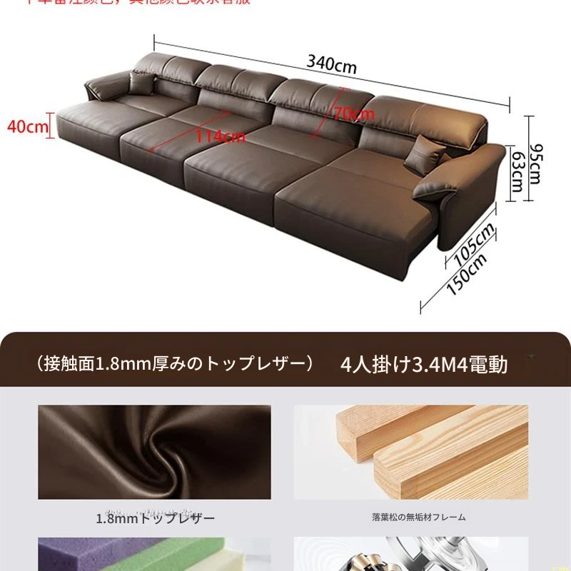 4人用 3.4M 四电動【フラッグシップ版 - 接触面1.8mm厚のトップグレイン牛革】#&