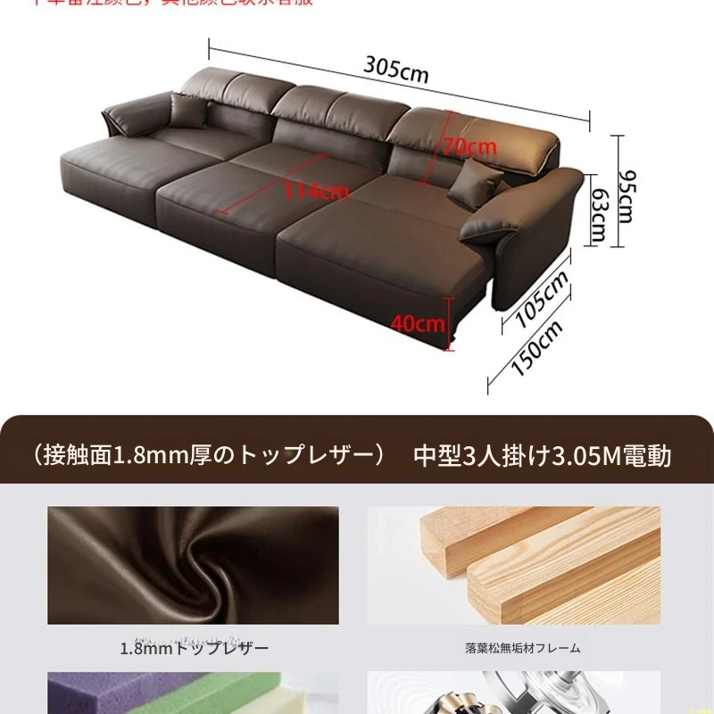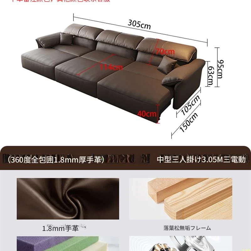 中三人位3.05M三電動【尊享版-360°全包裹1.8mm加厚頭層牛皮】#-