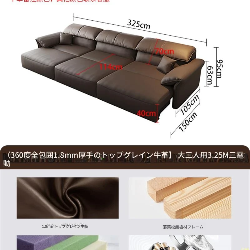 大三人位3.25M三電動【尊享版-360°全包裹1.8mm加厚頭層牛皮】|$