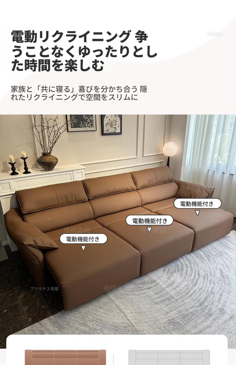 3人掛け 2.65M 三電動【エクスクルーシブ版 - 360°フルカバー 1.8mm厚トップグレイン牛革】*&