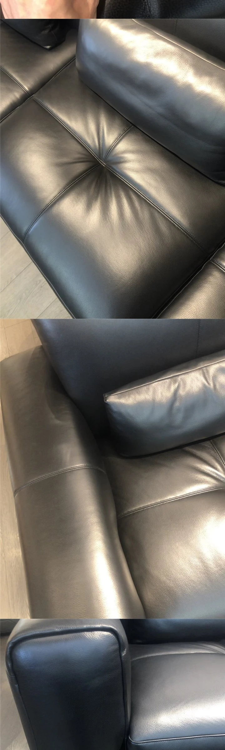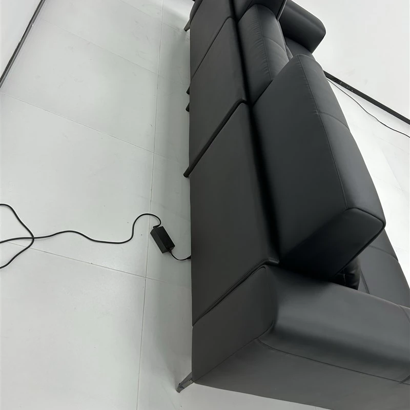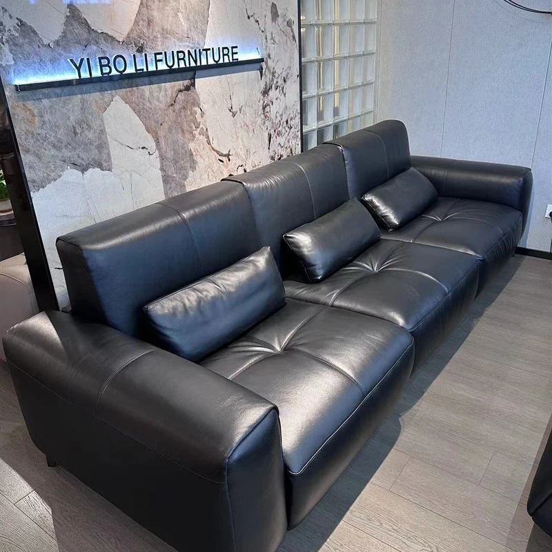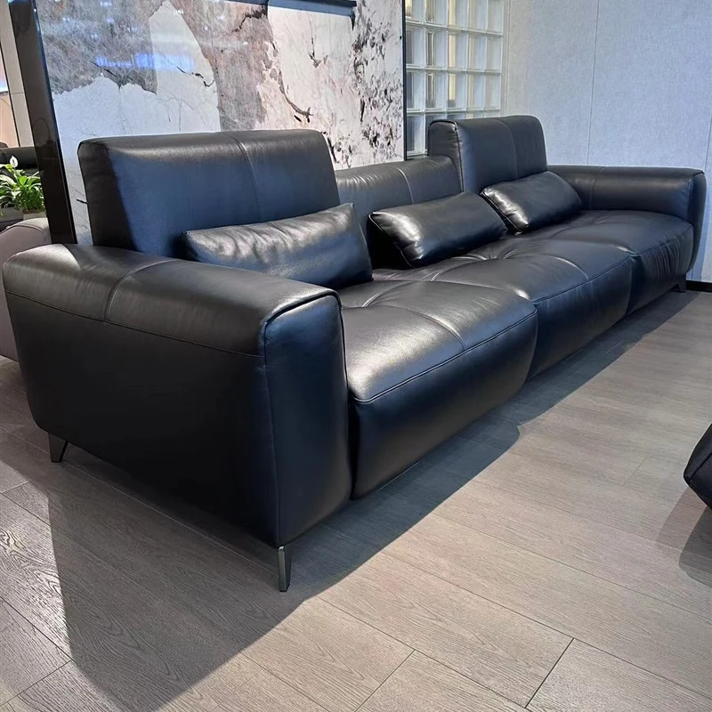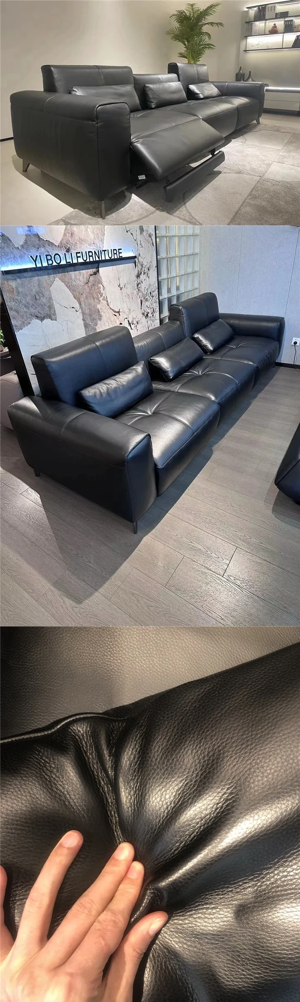 イタリアンミニマルデザイン モダンブラック電動ソファ 高級本革仕立て 多機能リビング用ソファ スタイリッシュな直線デザインで、快適なひとときを演出します。