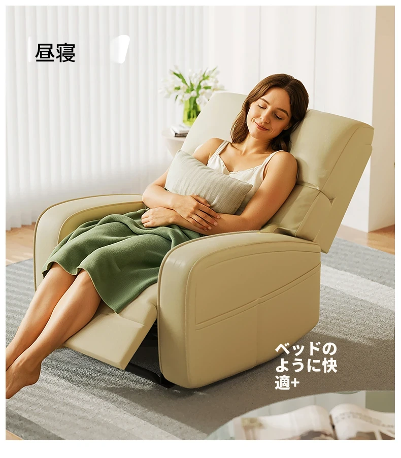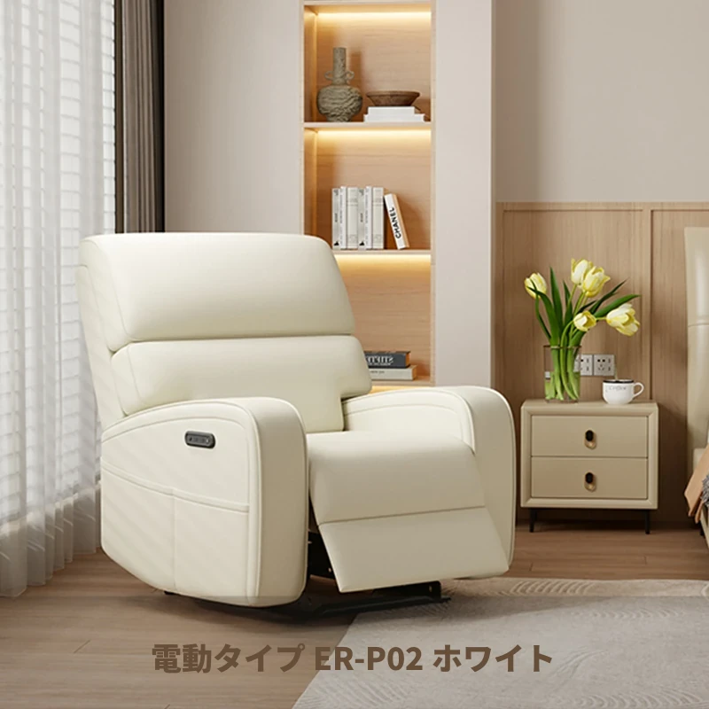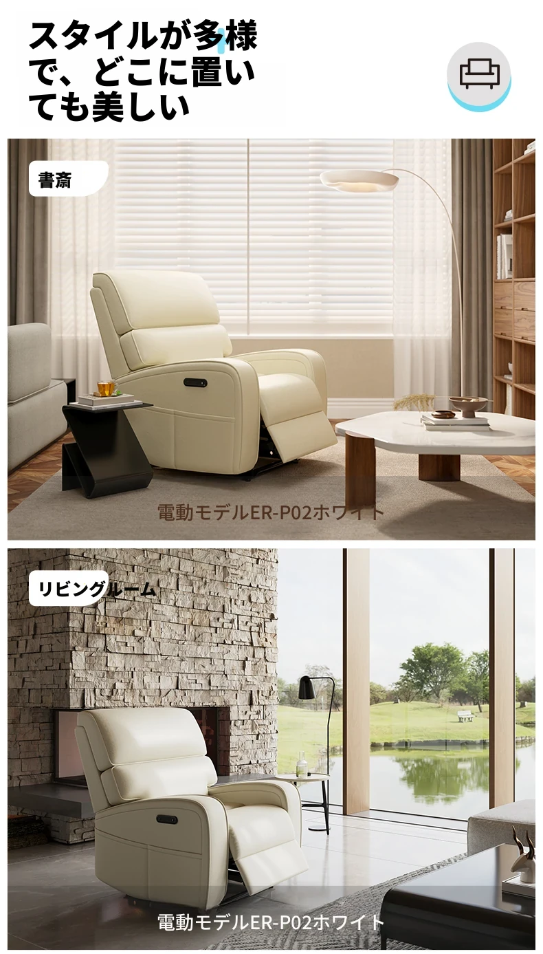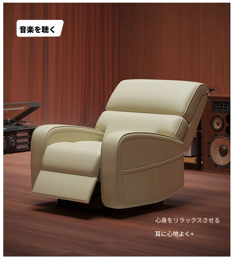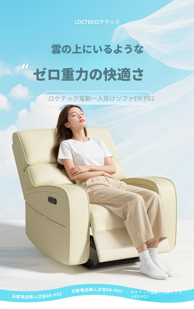 楽歌ER-P02/MR-F01多機能電動ソファ!環境に優しいPUレザー製で、リラックスできる快適な一人用ソファ。あなたの癒しの時間を提供します。おしゃれでスタイリッシュなデザイン、居心地抜群のリクライニングチェア!