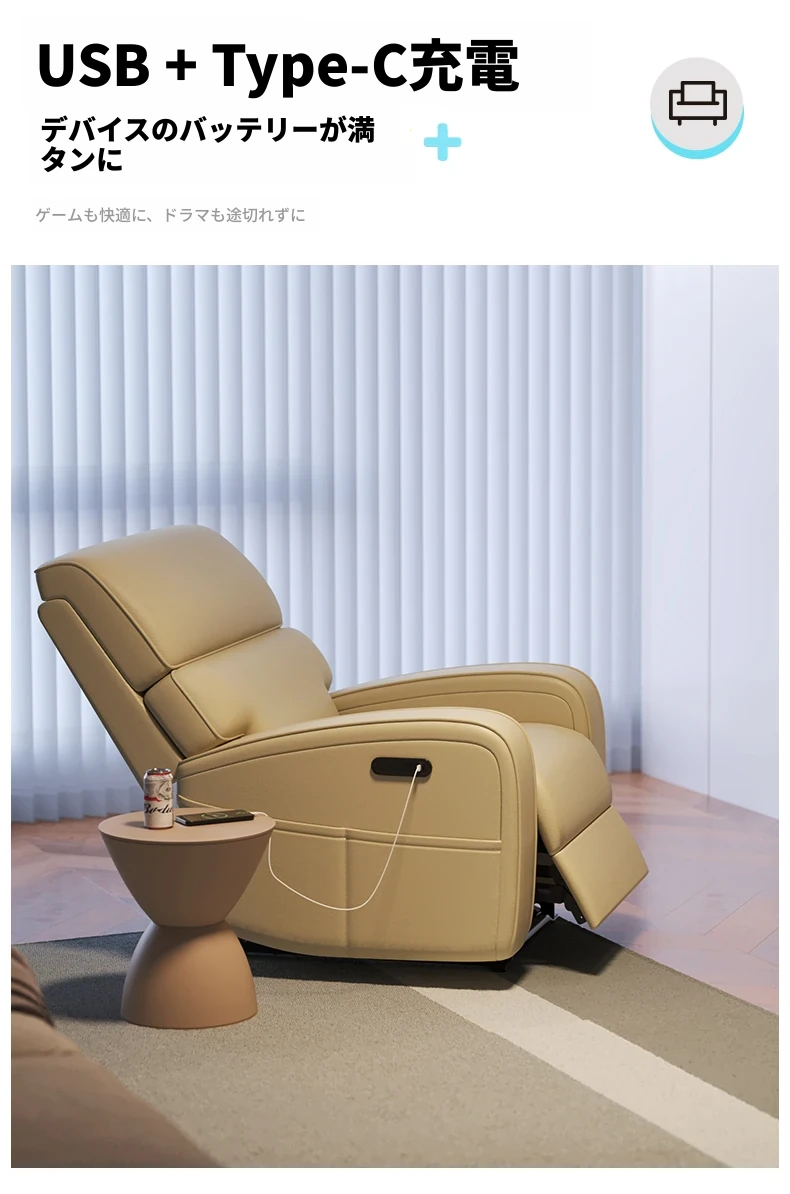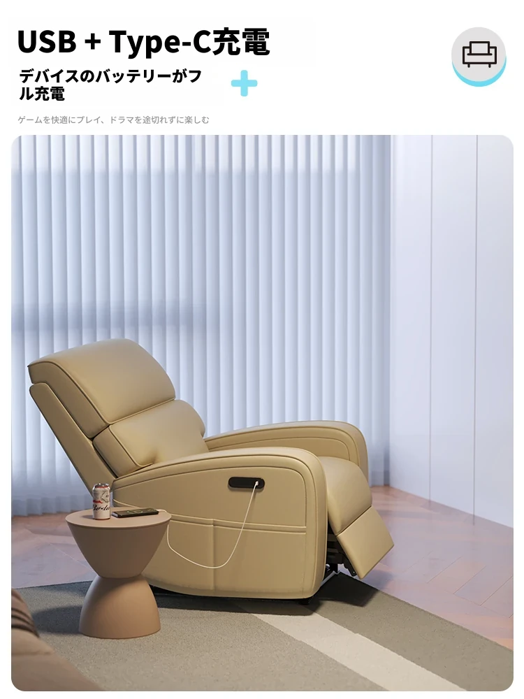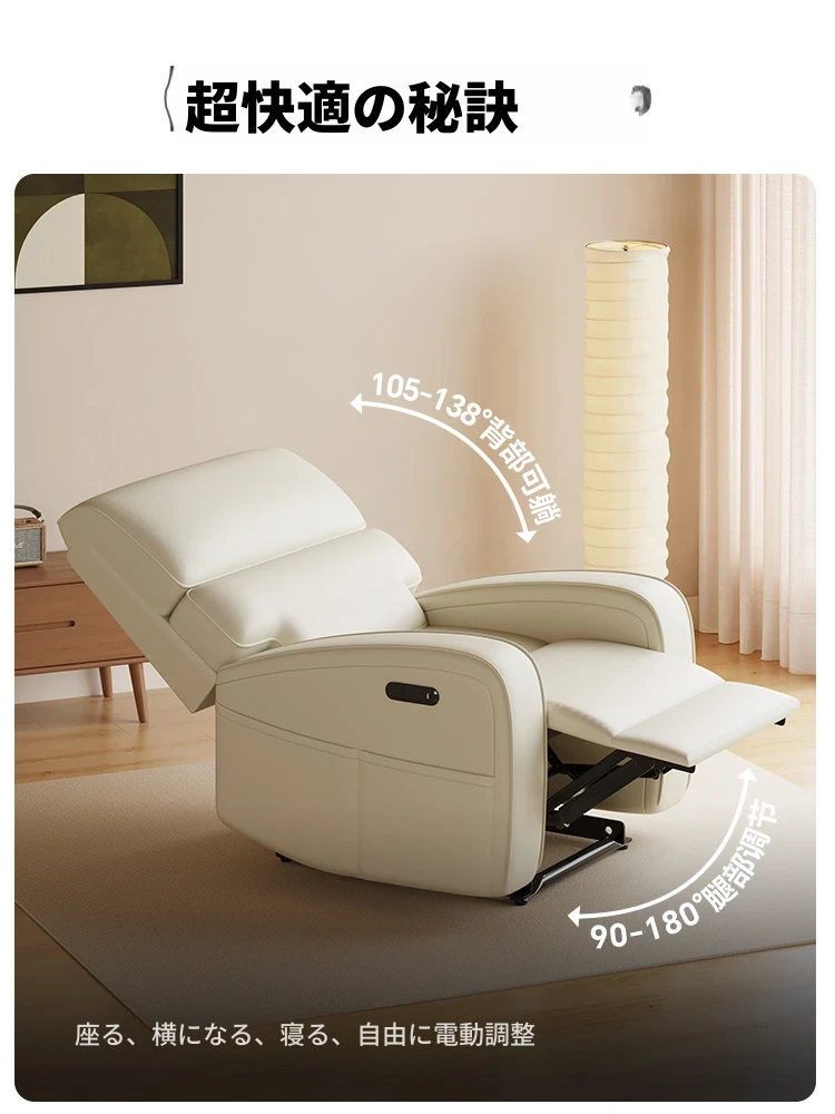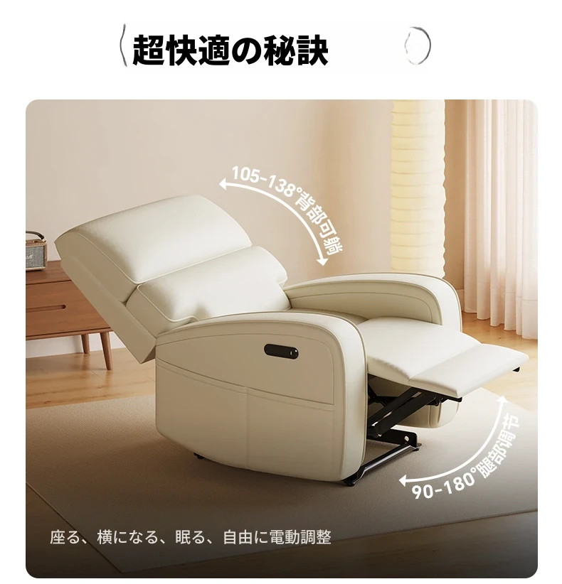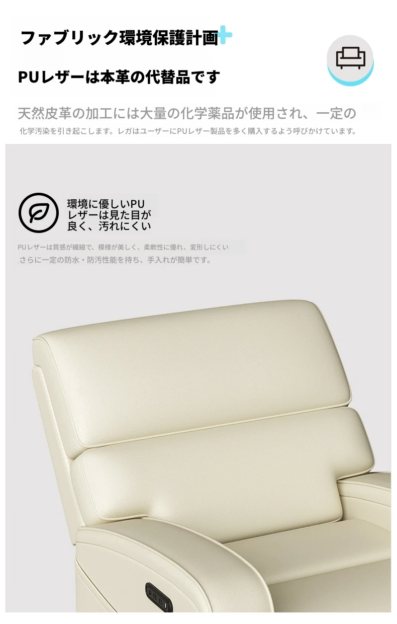 楽歌ER-P02/MR-F01多機能電動ソファ!環境に優しいPUレザー製で、リラックスできる快適な一人用ソファ。あなたの癒しの時間を提供します。おしゃれでスタイリッシュなデザイン、居心地抜群のリクライニングチェア!