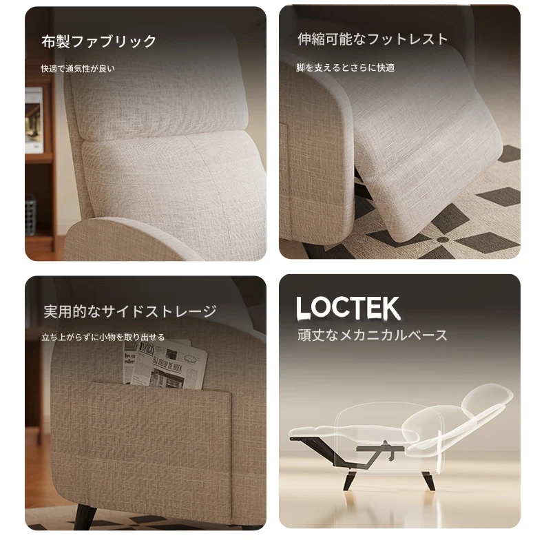 機能的なリラックスソファ|シンプルデザインの電動ロッキングチェア|自宅での昼寝に最適なカウチ|快適なリビングルーム用|優雅なスタイルのフィーフェイチェア