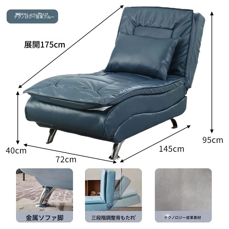 テクノロジーブルー レザー 背もたれ 三段階調整