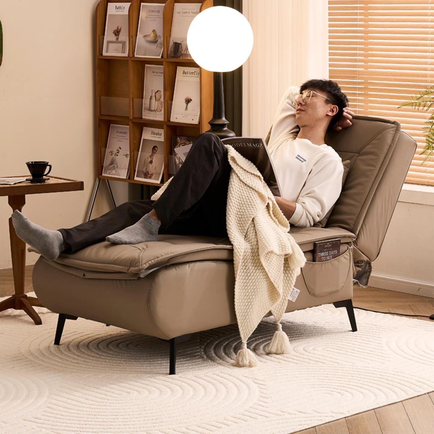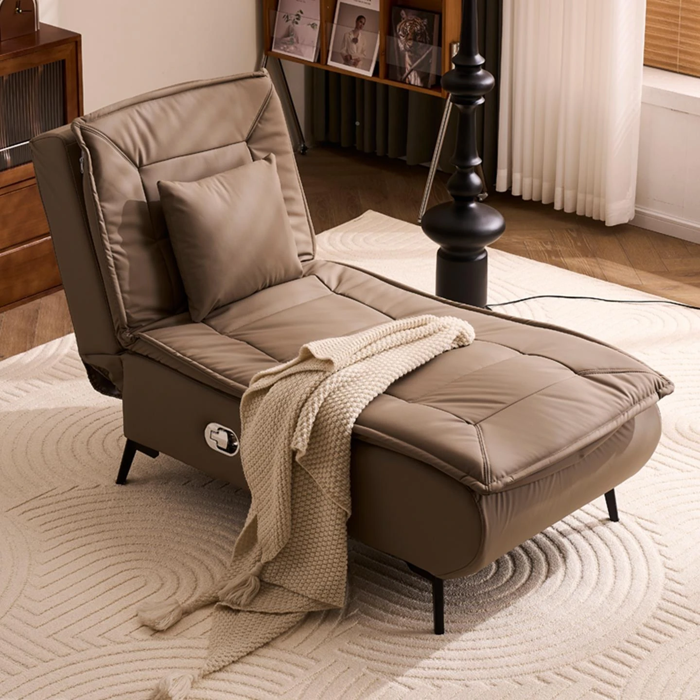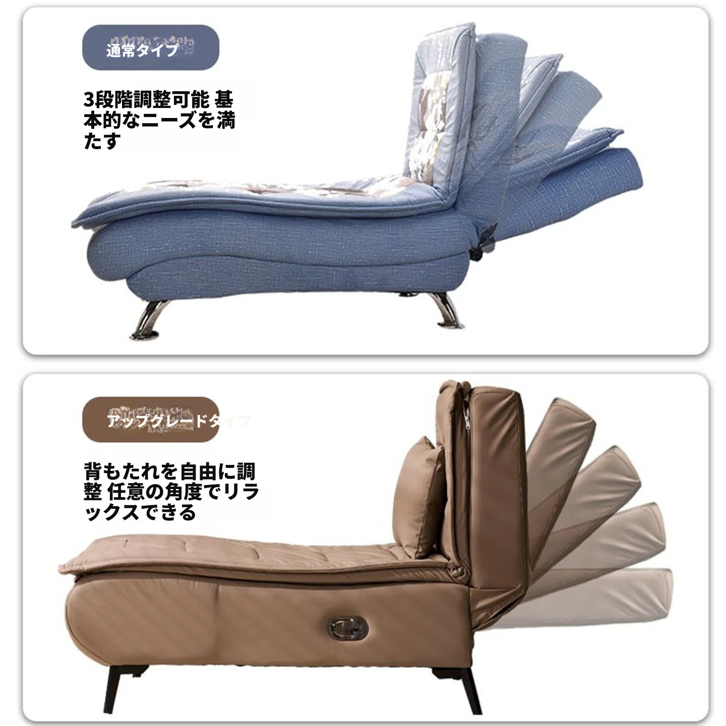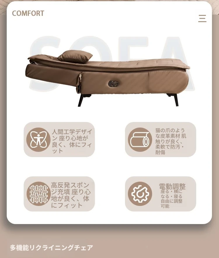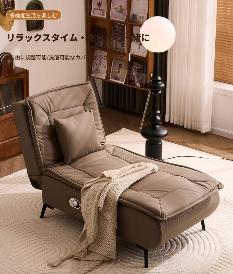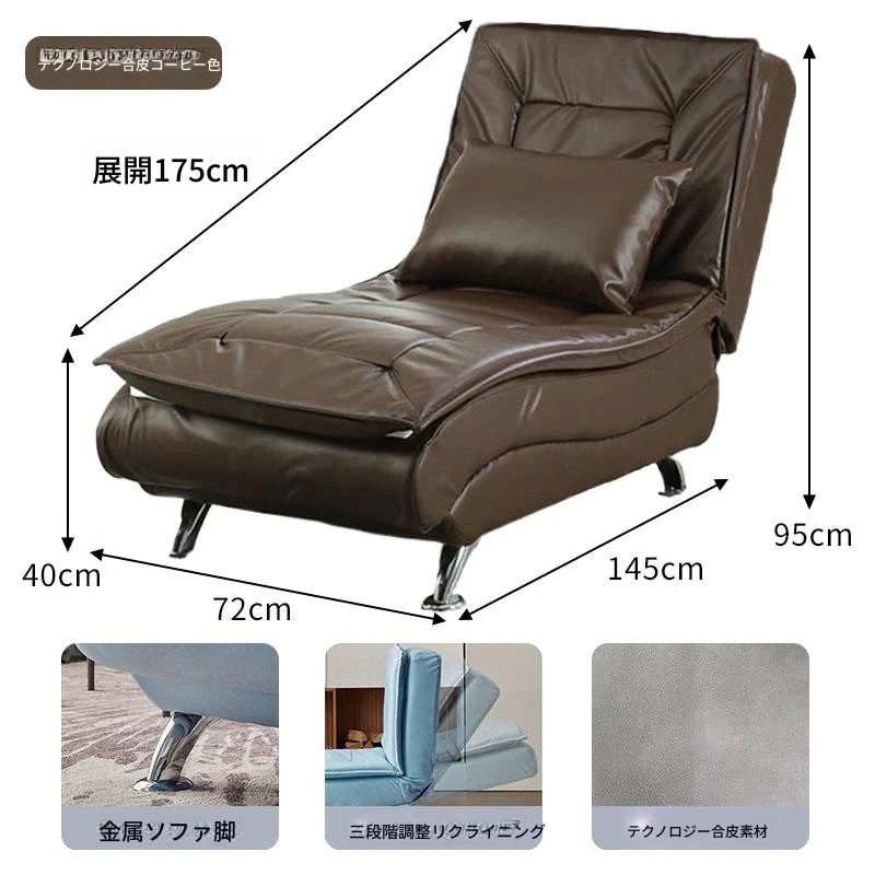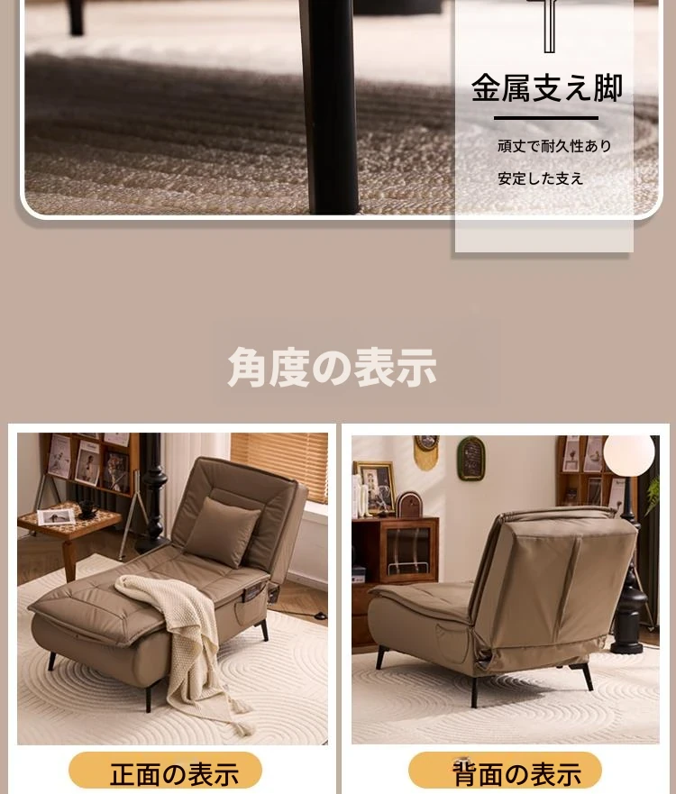 アップグレードされたテクノロジー布 コーヒー色 背もたれは任意の角度に調整可能