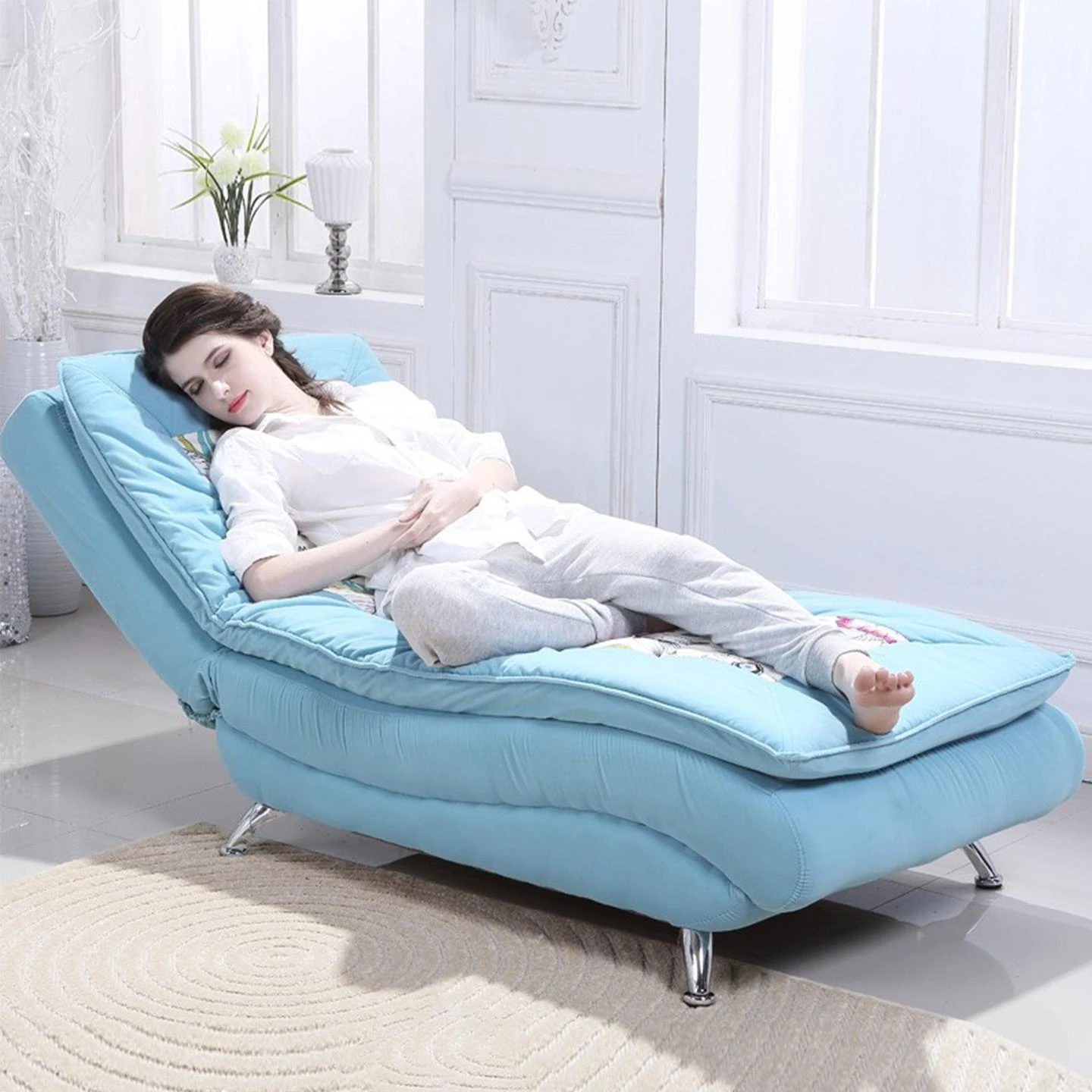 優雅な貴妃ソファ - おしゃれな布製、コンパクトで小型スペースにも最適!リビングやバルコニーにぴったりの一人用ソファベッド、リラックスしたい時に最適な選択です。