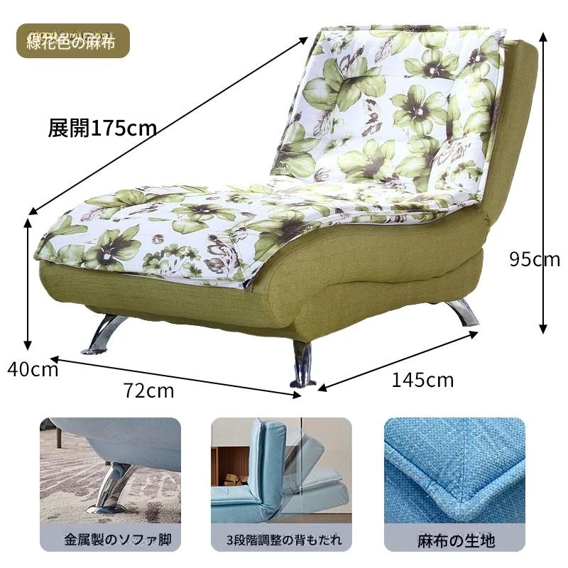 グリーンフラワーカラーの麻布 背もたれ三段階調整