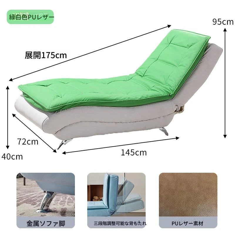緑白PUレザー 背もたれ三段階調整