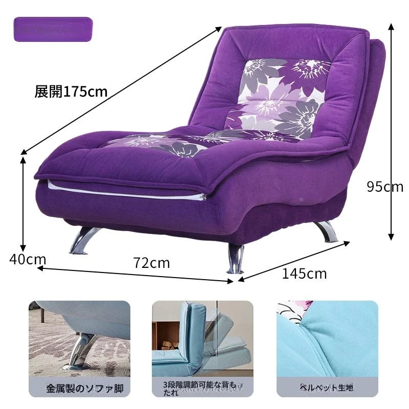 紫葵花色のフリース生地、背もたれ三段階調整