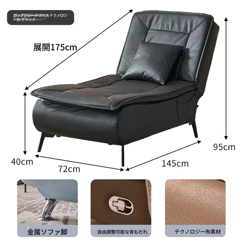 アップグレードされたテクノロジー布 ブラック 背もたれ 任意の角度調整可能