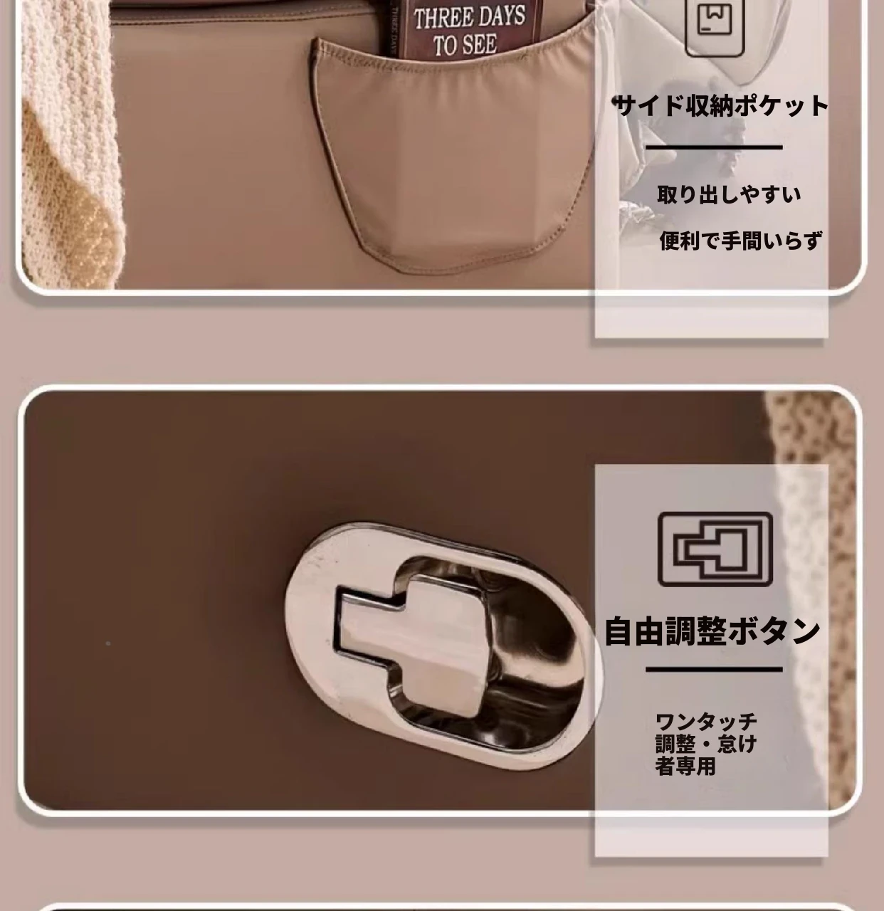 アップグレードされたテクノロジー布、土色、背もたれは任意の角度に調整可能です。