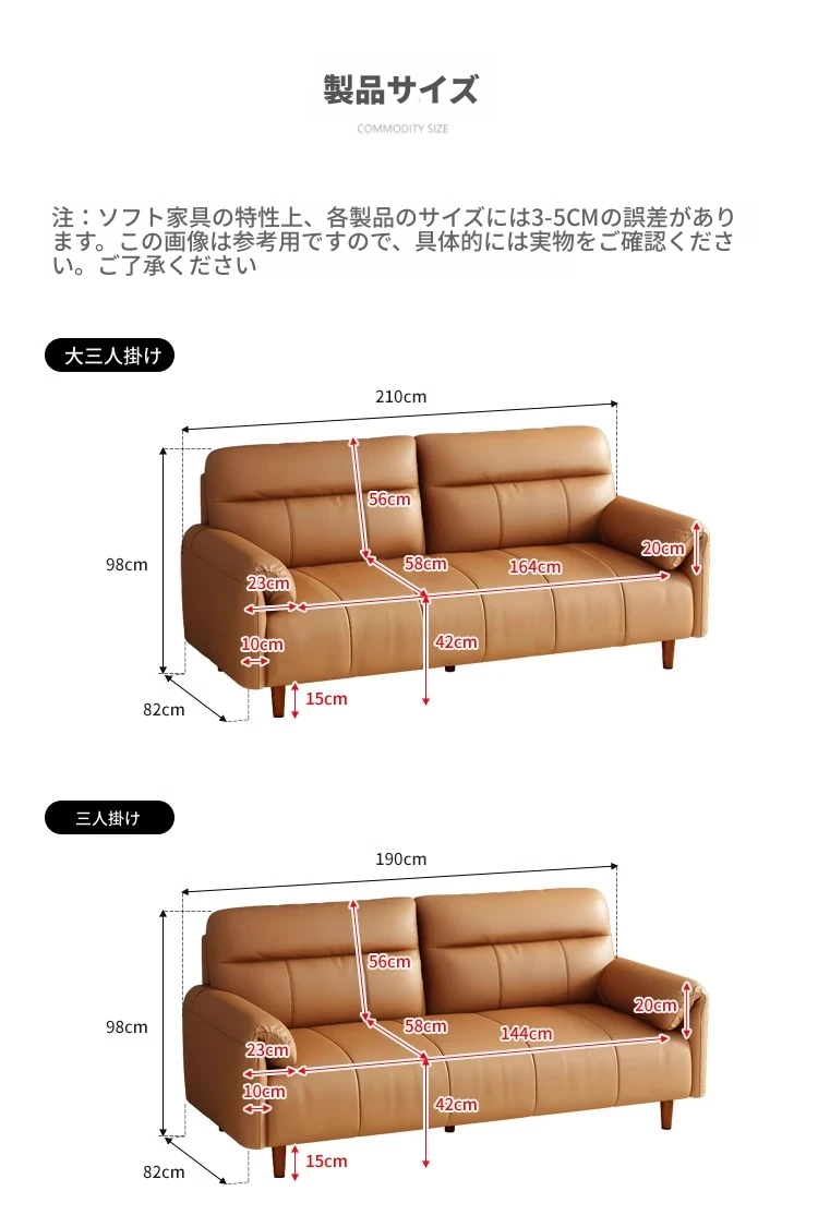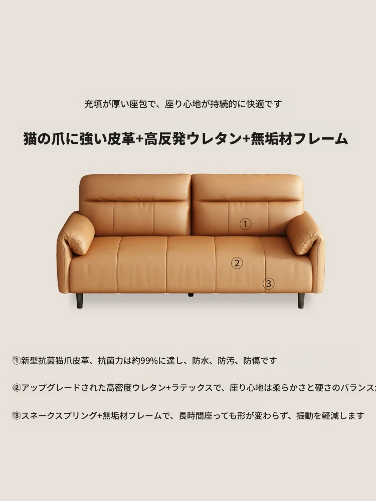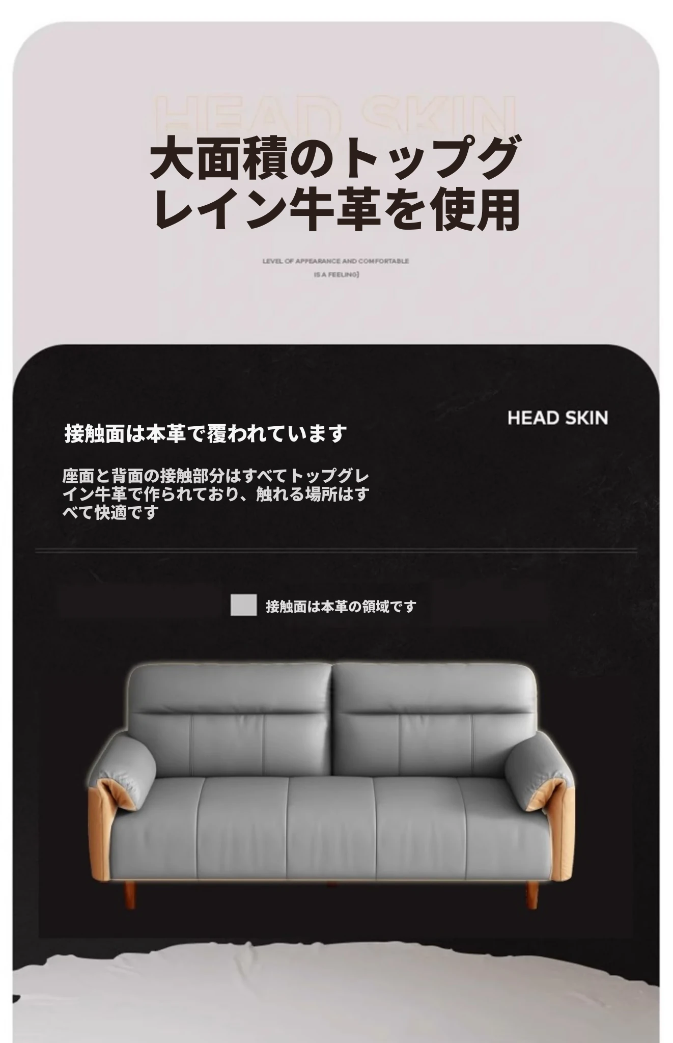 【厚手一層黄牛革+ラテックススポンジ+フレーム生涯保証】1.9メートル三人用 ラグジュアリー版