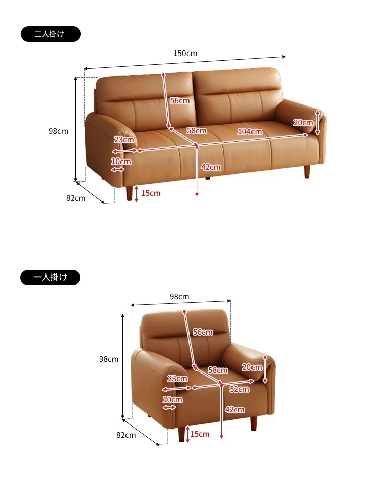 高級感溢れる本革製ピアノキーソファ - 猫の爪にも強い!コンパクトでスタイリッシュな2人掛け、リビングやアパートに最適なモダンデザイン。おしゃれな空間を演出します!