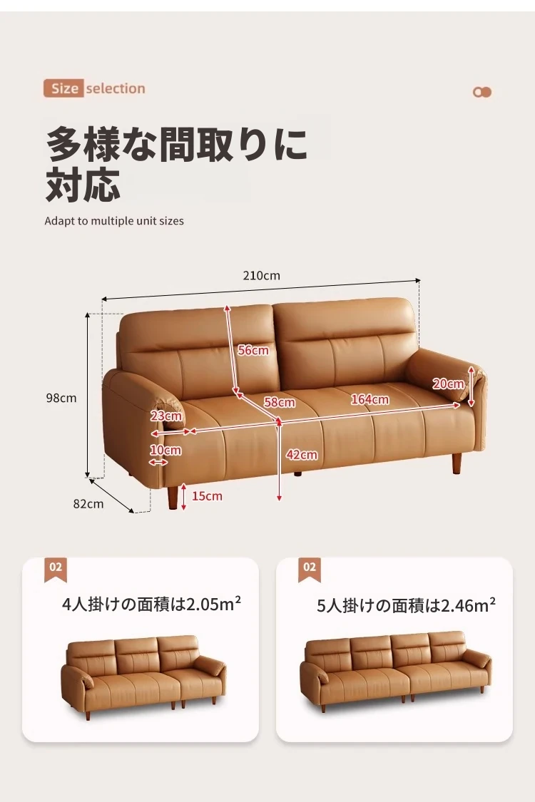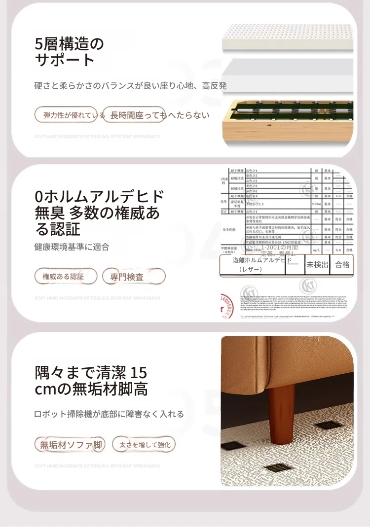 【エコ本革+ラテックススポンジ】2.1メートル大三人用 プレミアム版