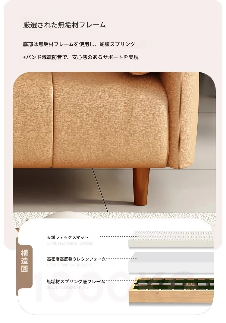 【厚手一層黄牛革+ラテックススポンジ+フレーム生涯保証】2.1メートル大三人用 ラグジュアリー版